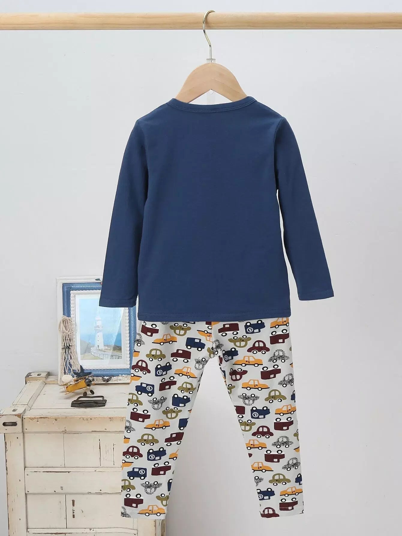 طقم استراحة استرخاء بنين مطبوع عليه حروف ورسومات سيارات