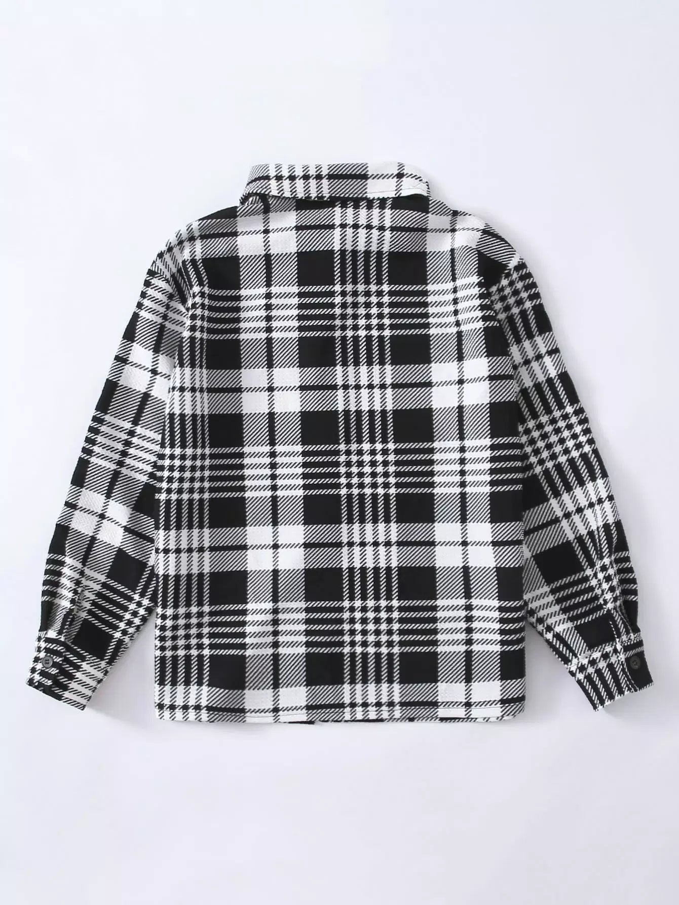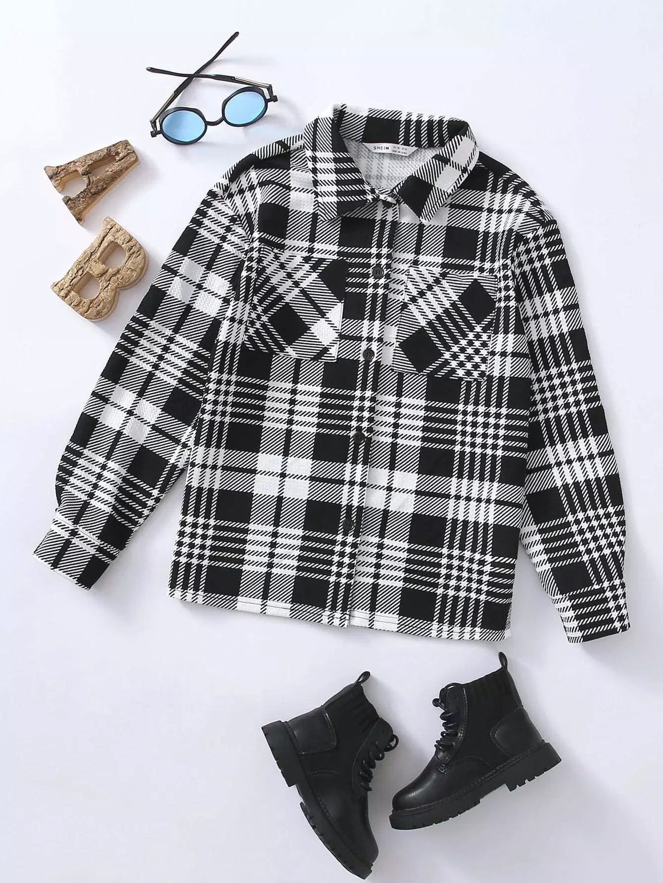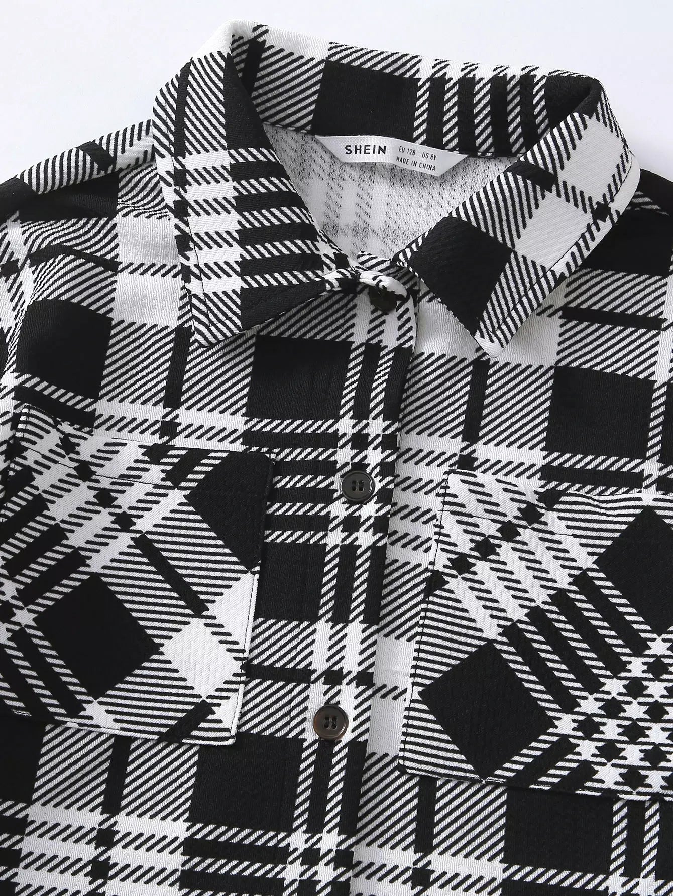 قميص منقوش بجيوب أمامية وياقة للأولاد