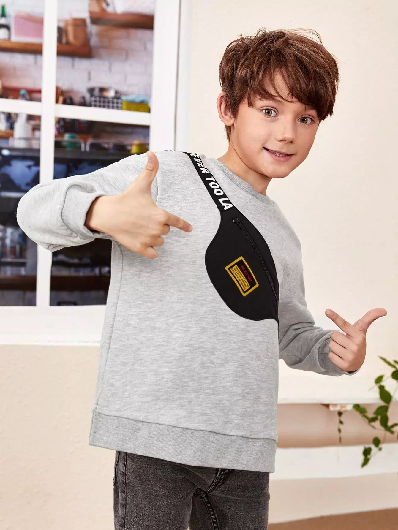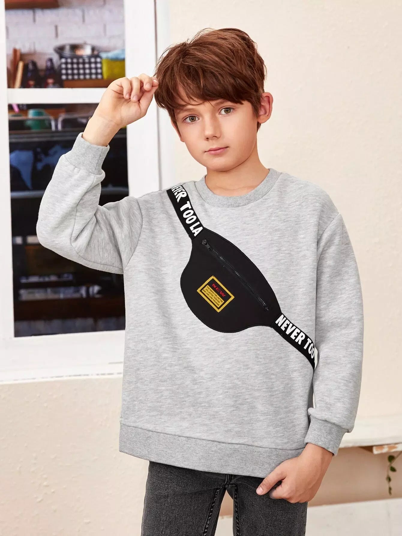 بلوفر بسحاب مطبوع عليه حقيبة للأولاد