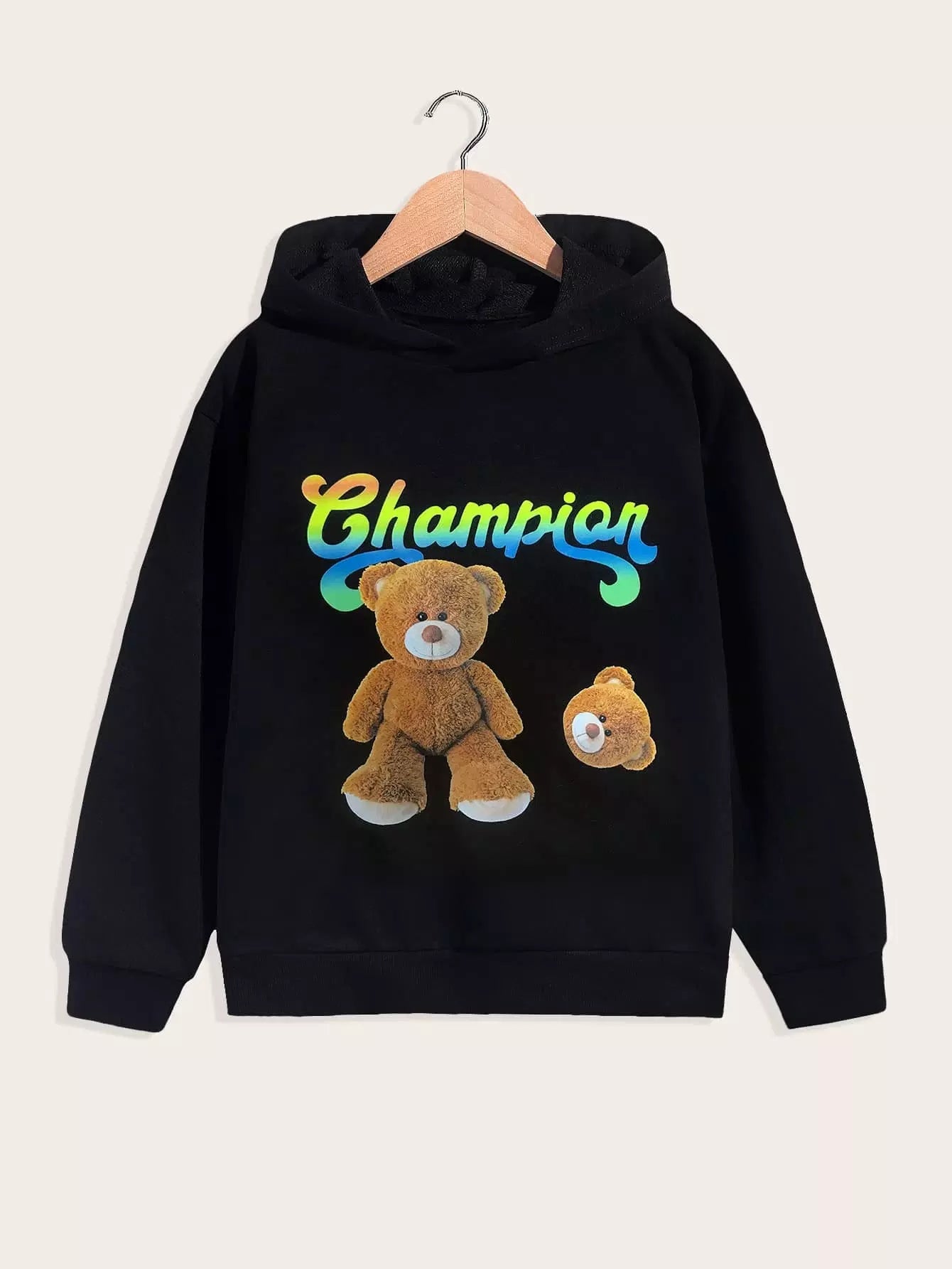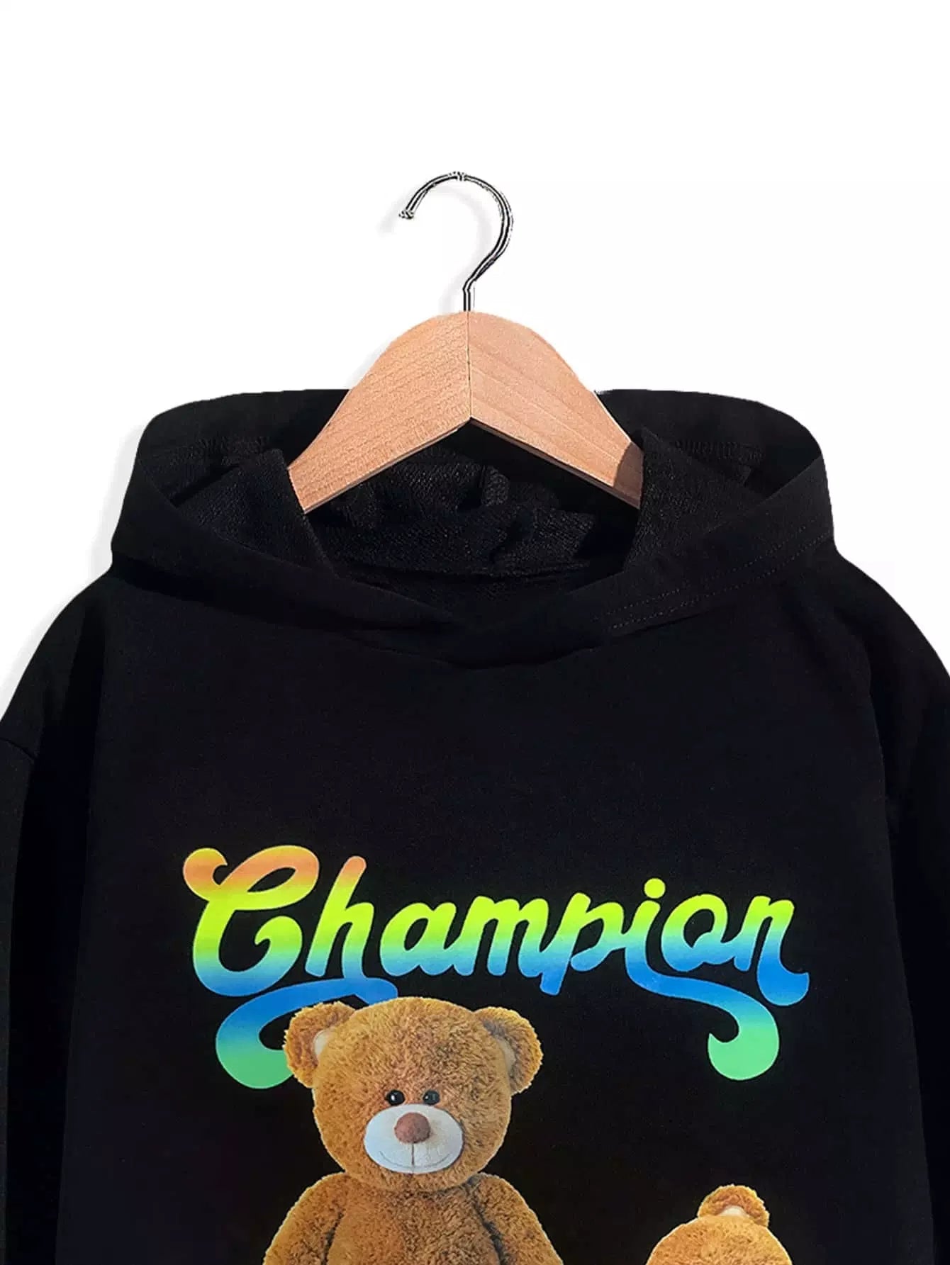 هودي بتصميم دب وحروف جرافيك للأولاد