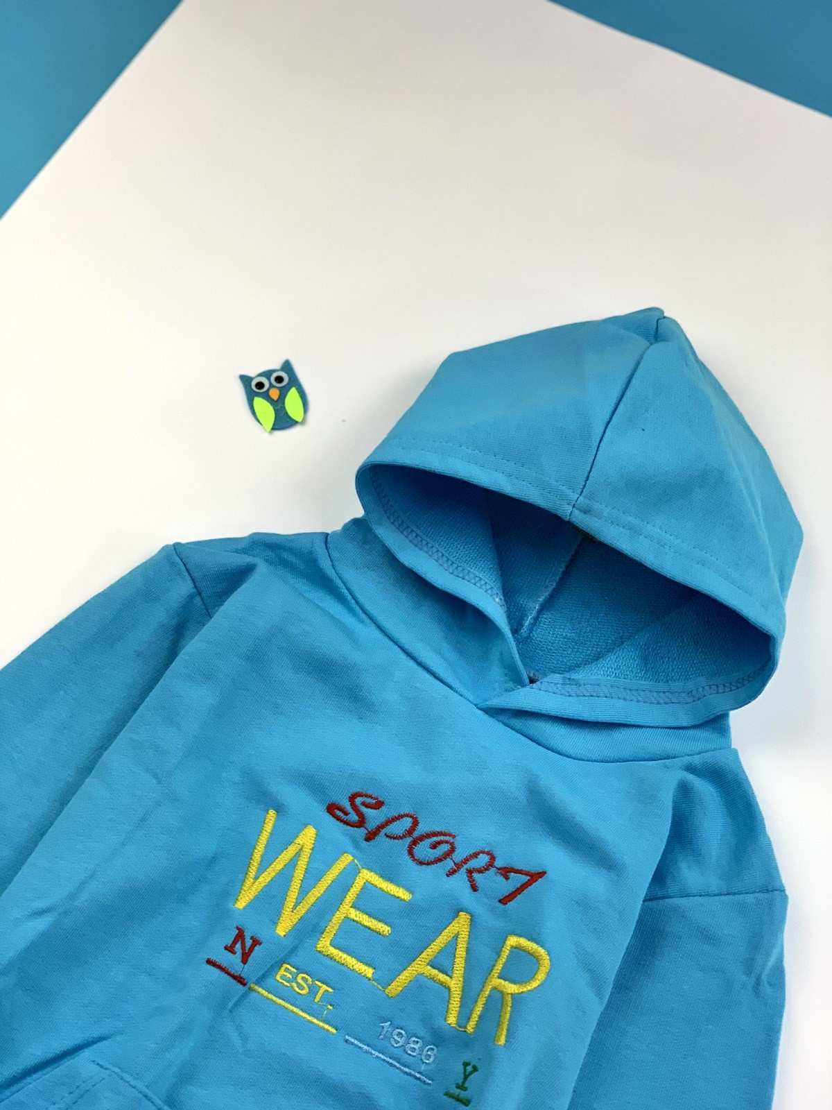ملابس رياضية بغطاء للرأس باللون الأزرق للأولاد