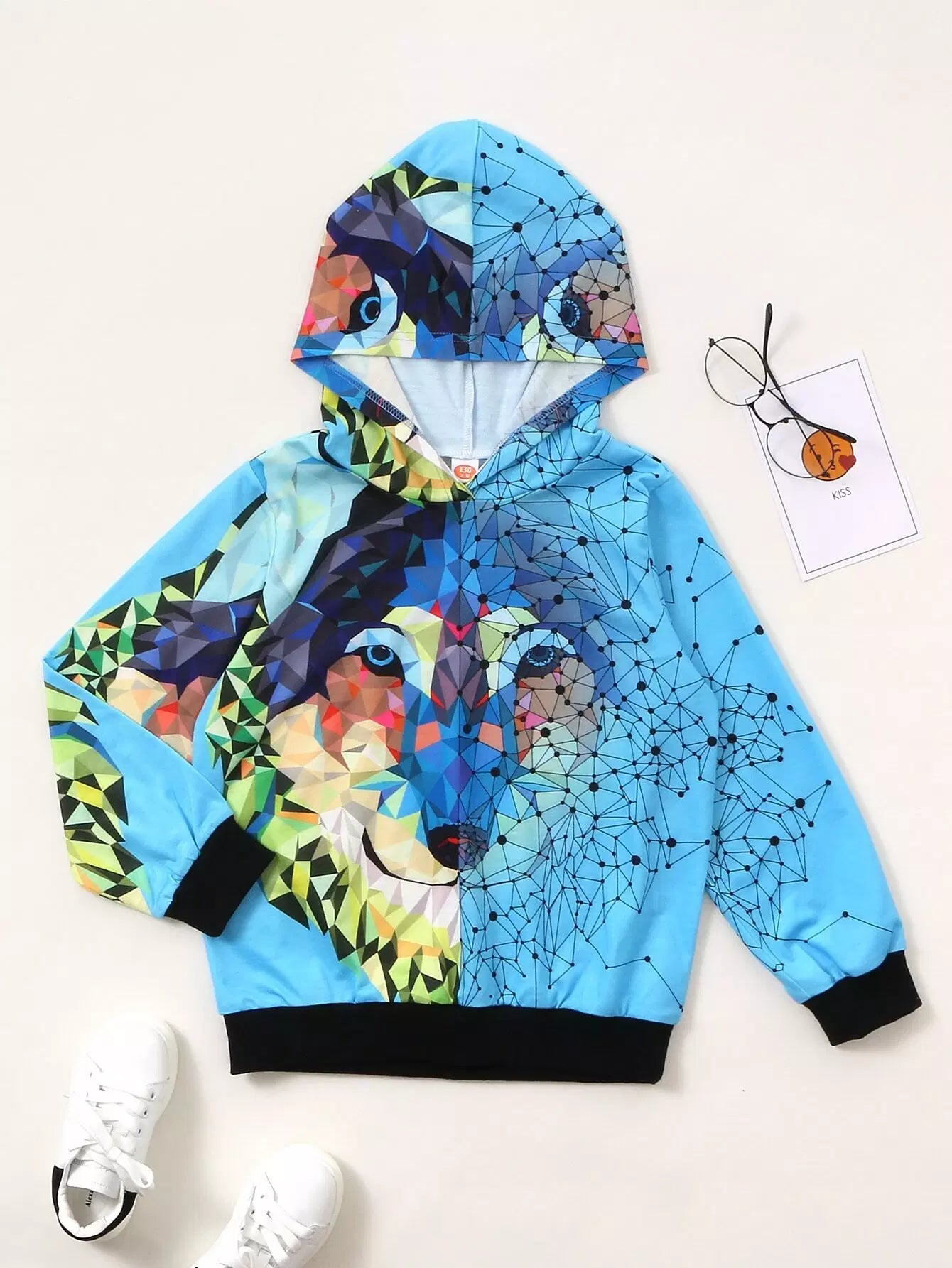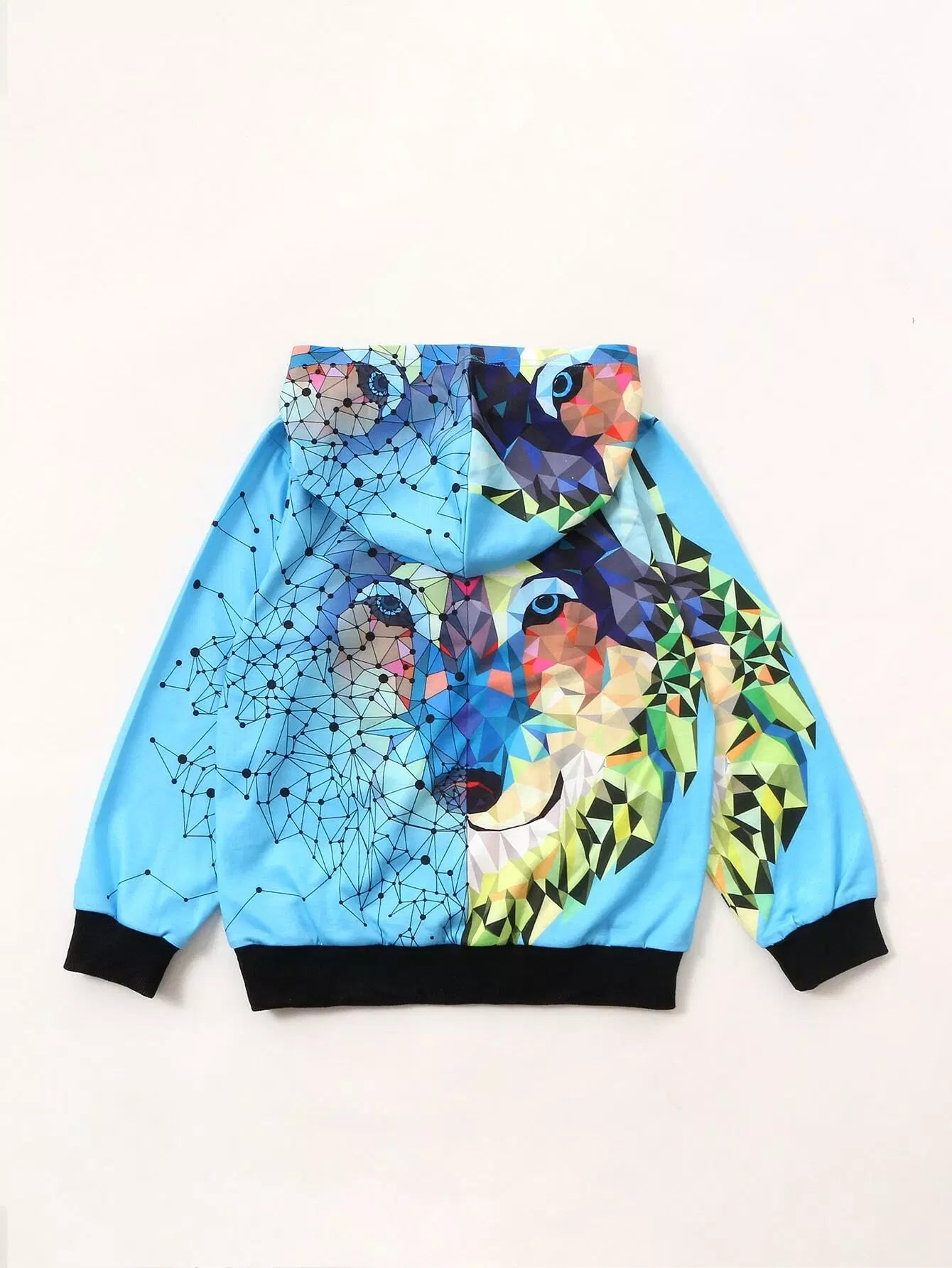 الأطفال - سترة بغطاء للرأس بطباعة جيو وولف للأولاد