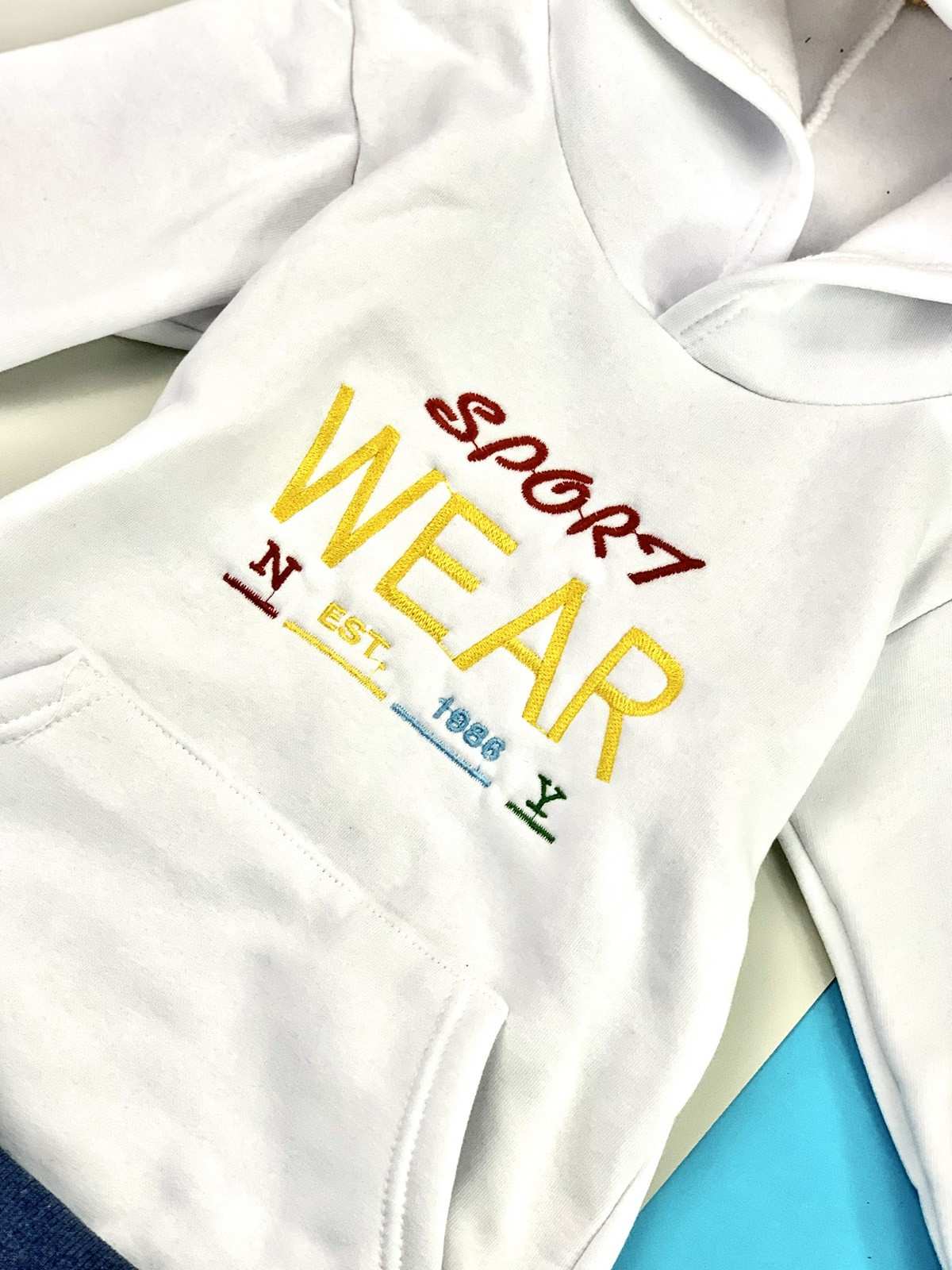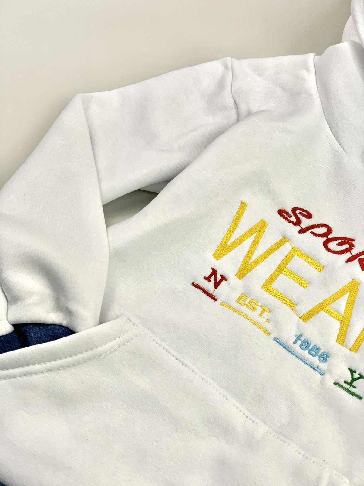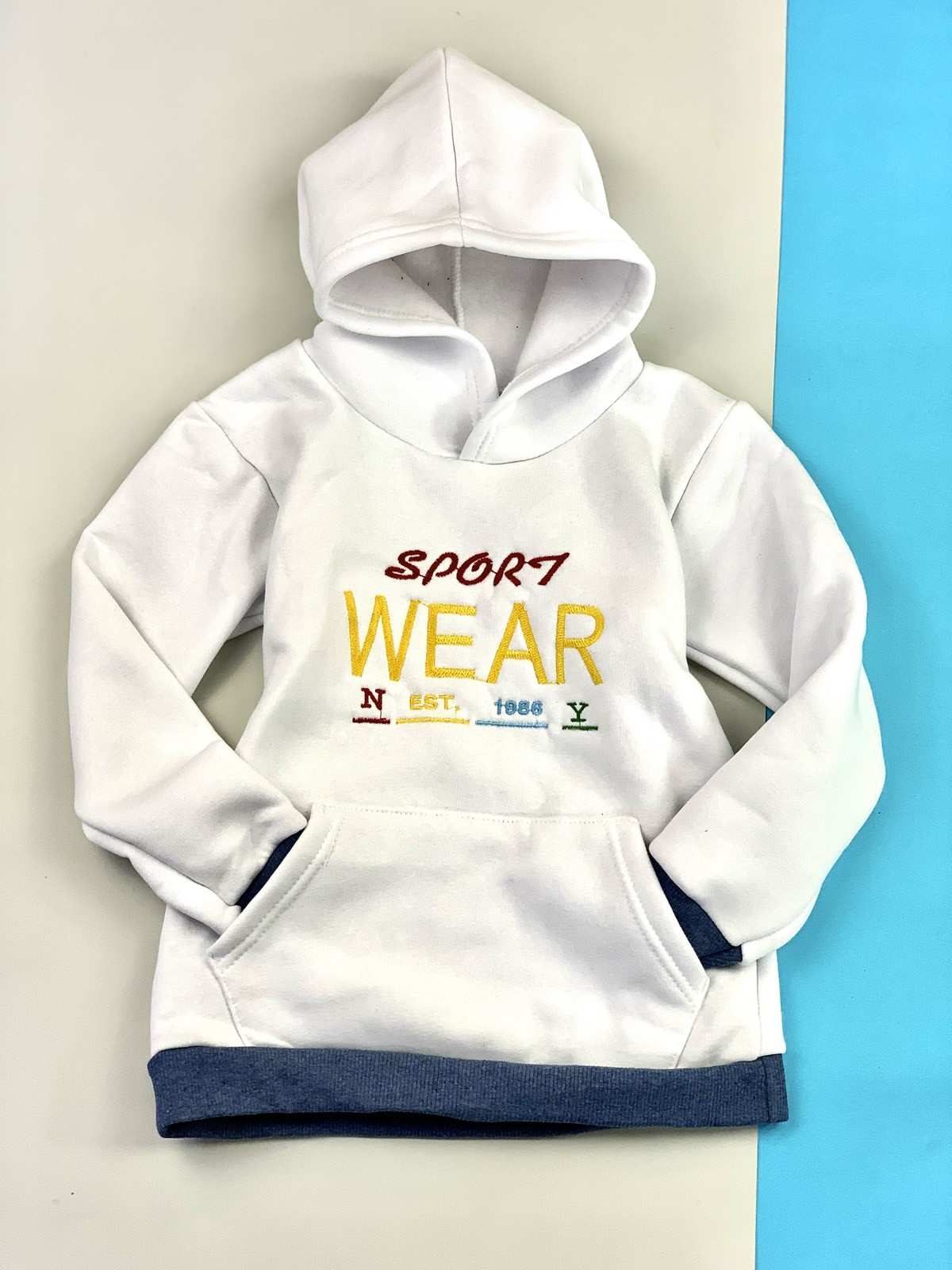 ملابس رياضية للأولاد بغطاء للرأس باللون الأبيض