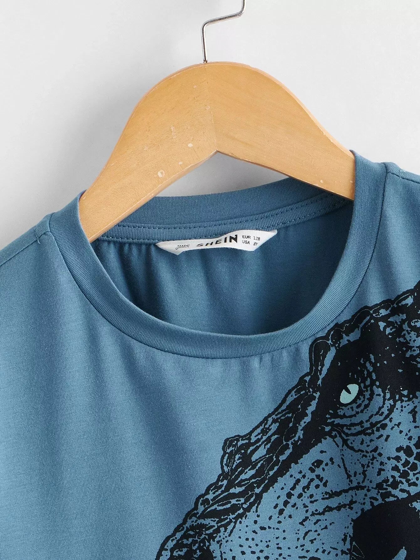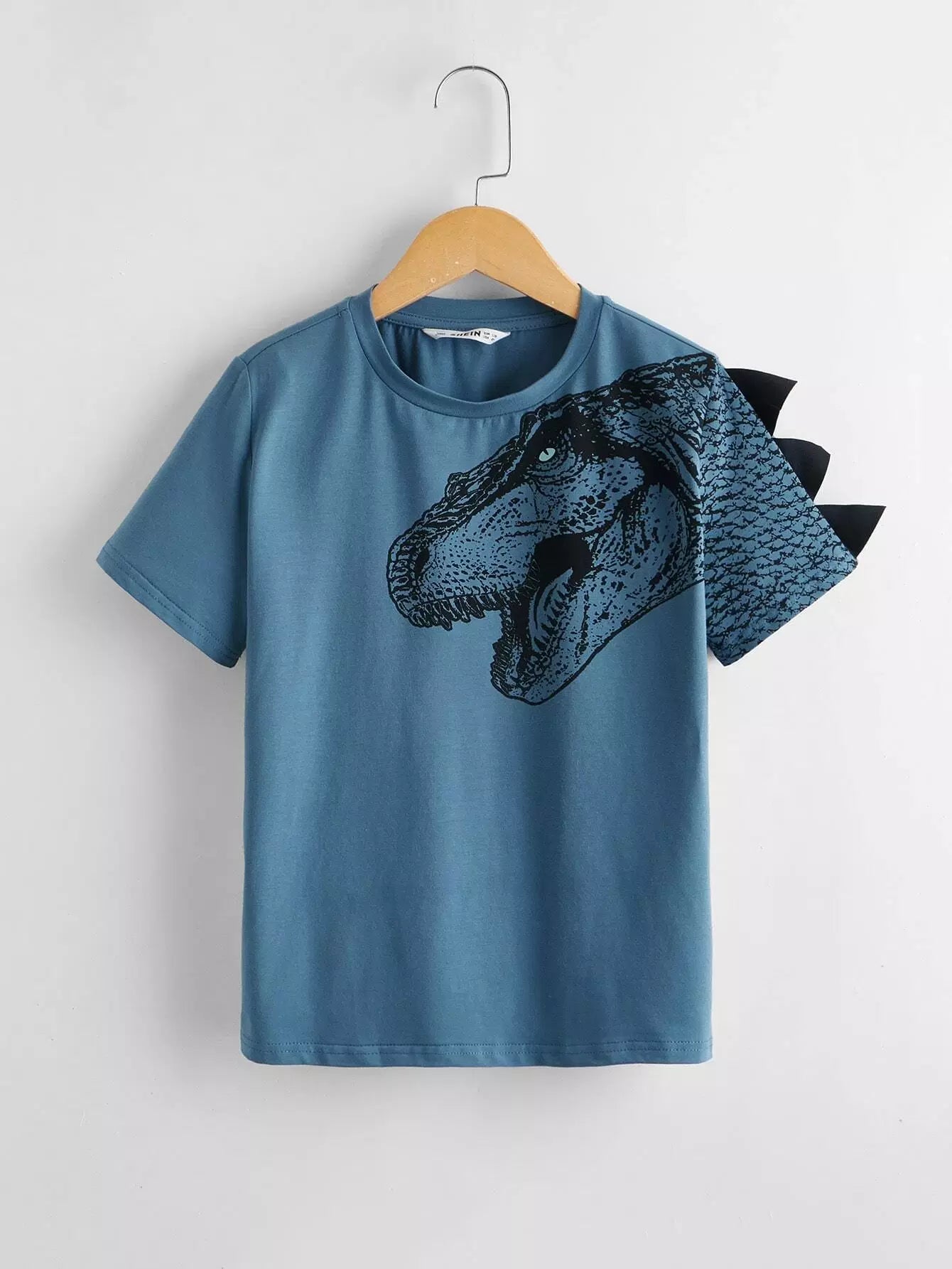 تي شيرت بطبعة ديناصور للأولاد بحواف مثلثة