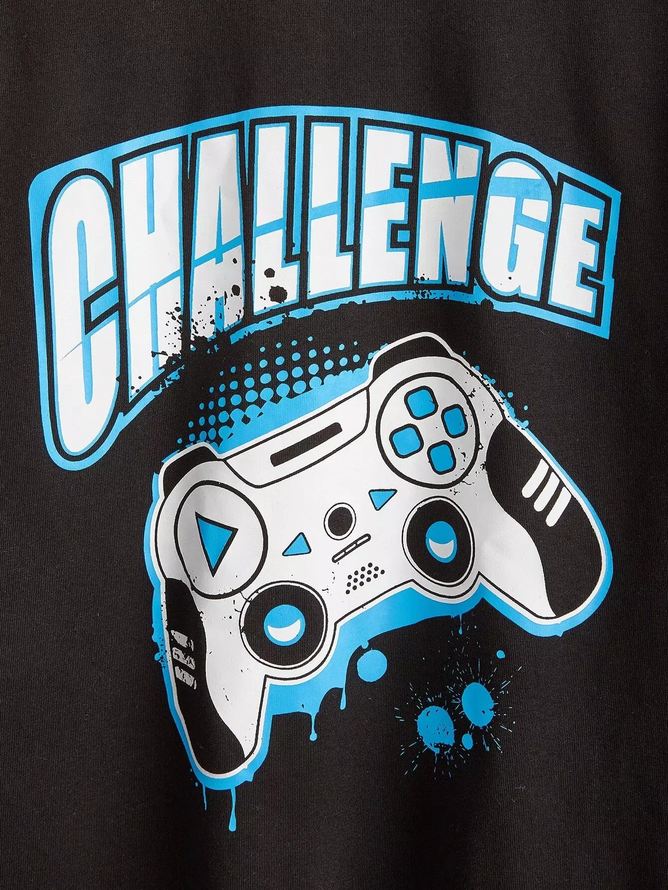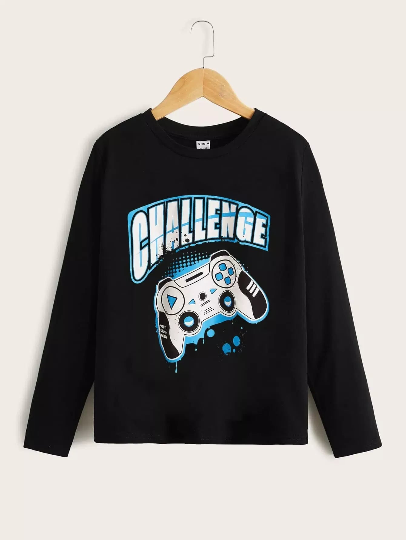 تي شيرت بطبعة حروف ووحدات تحكم ألعاب للأولاد