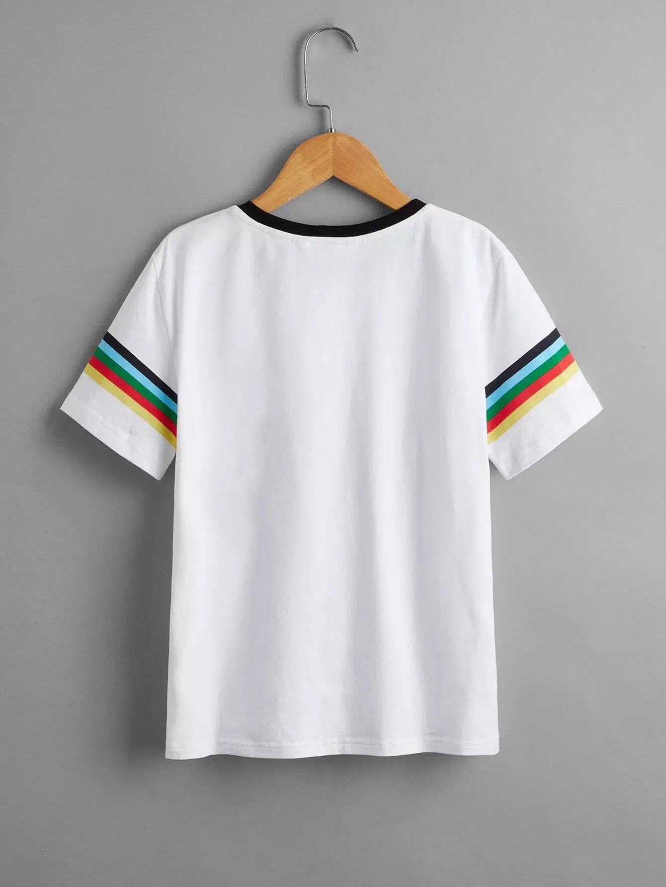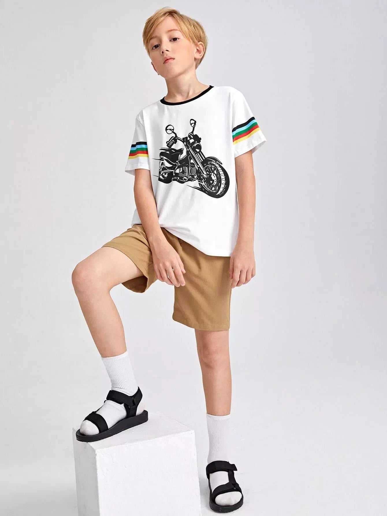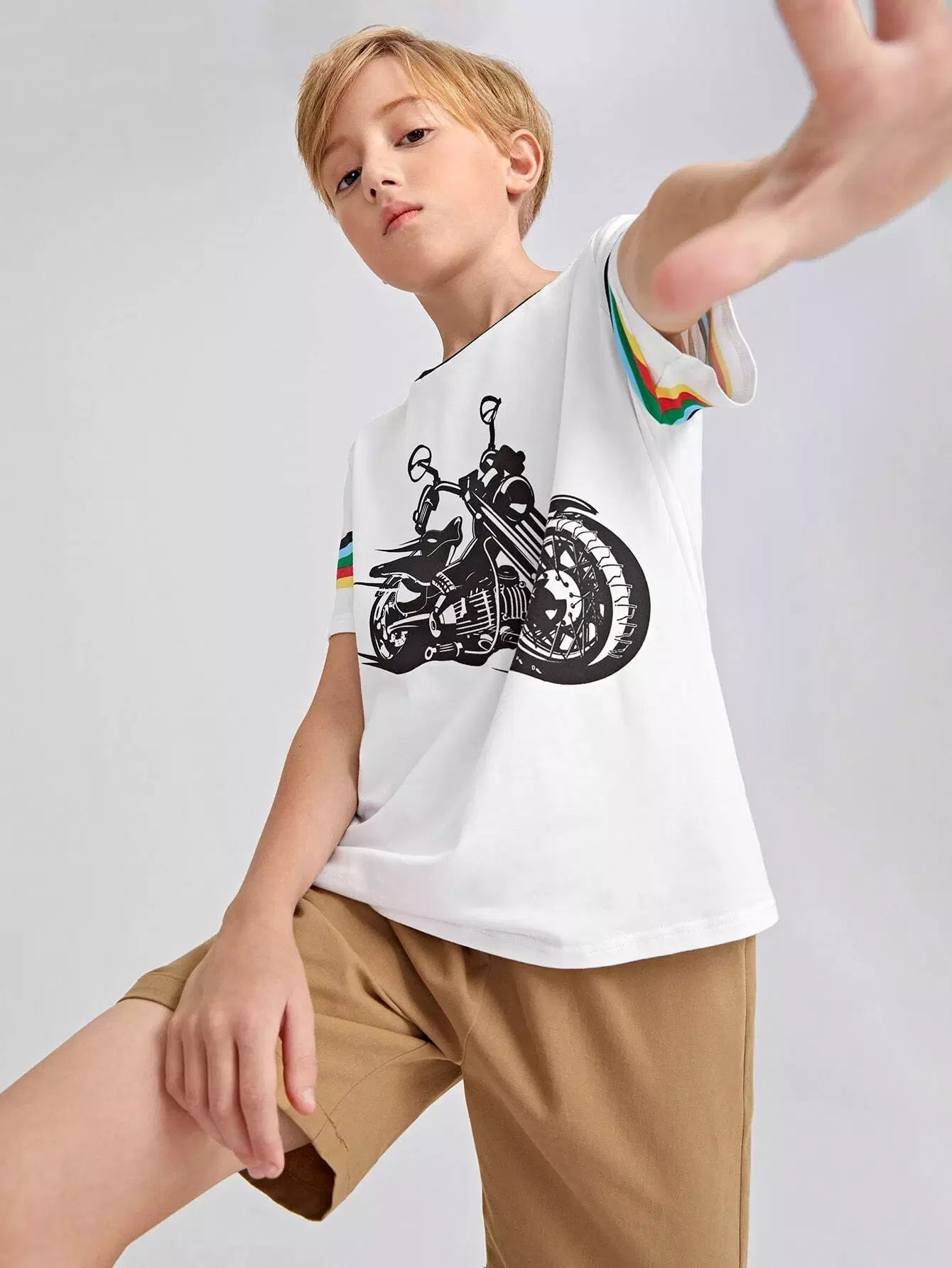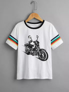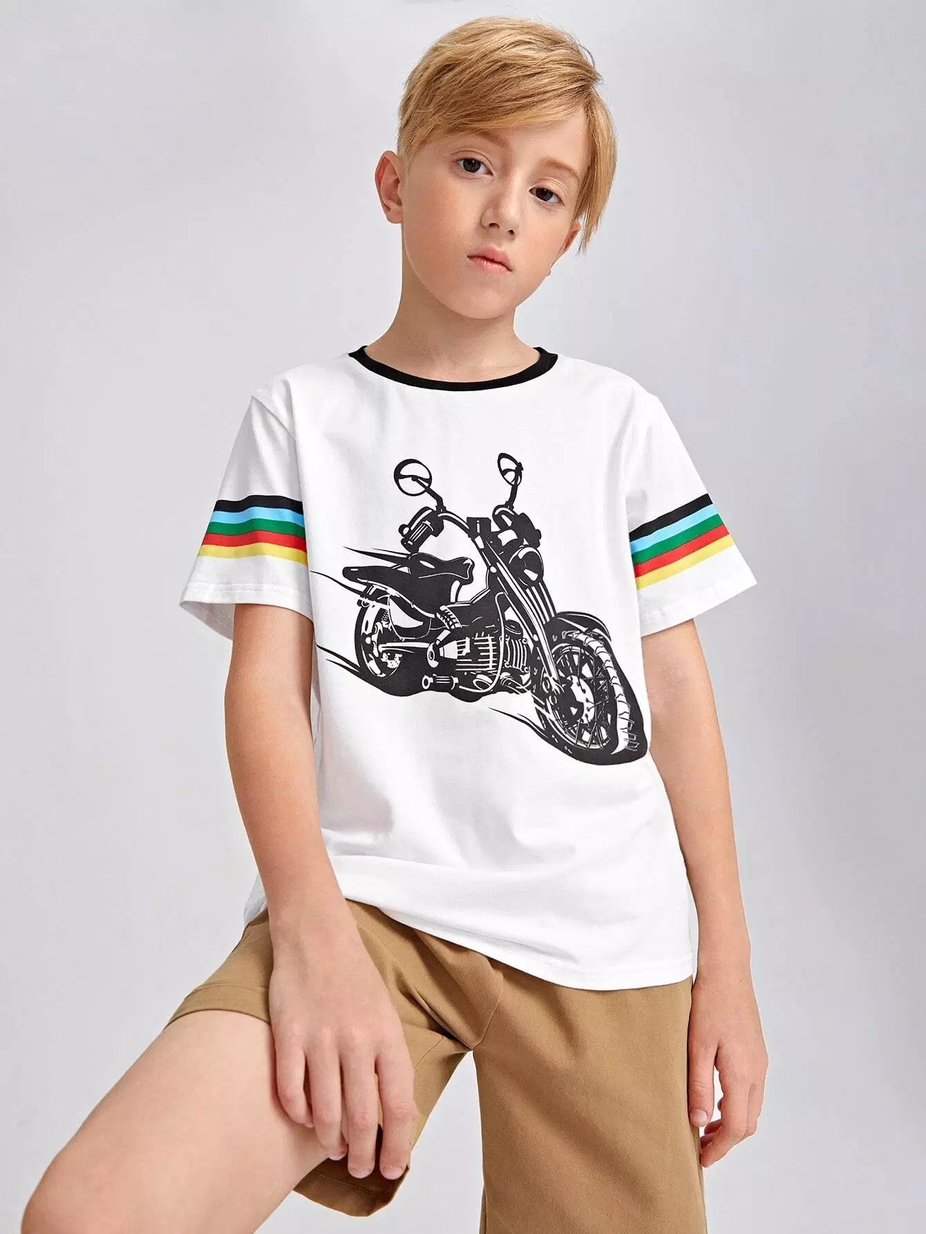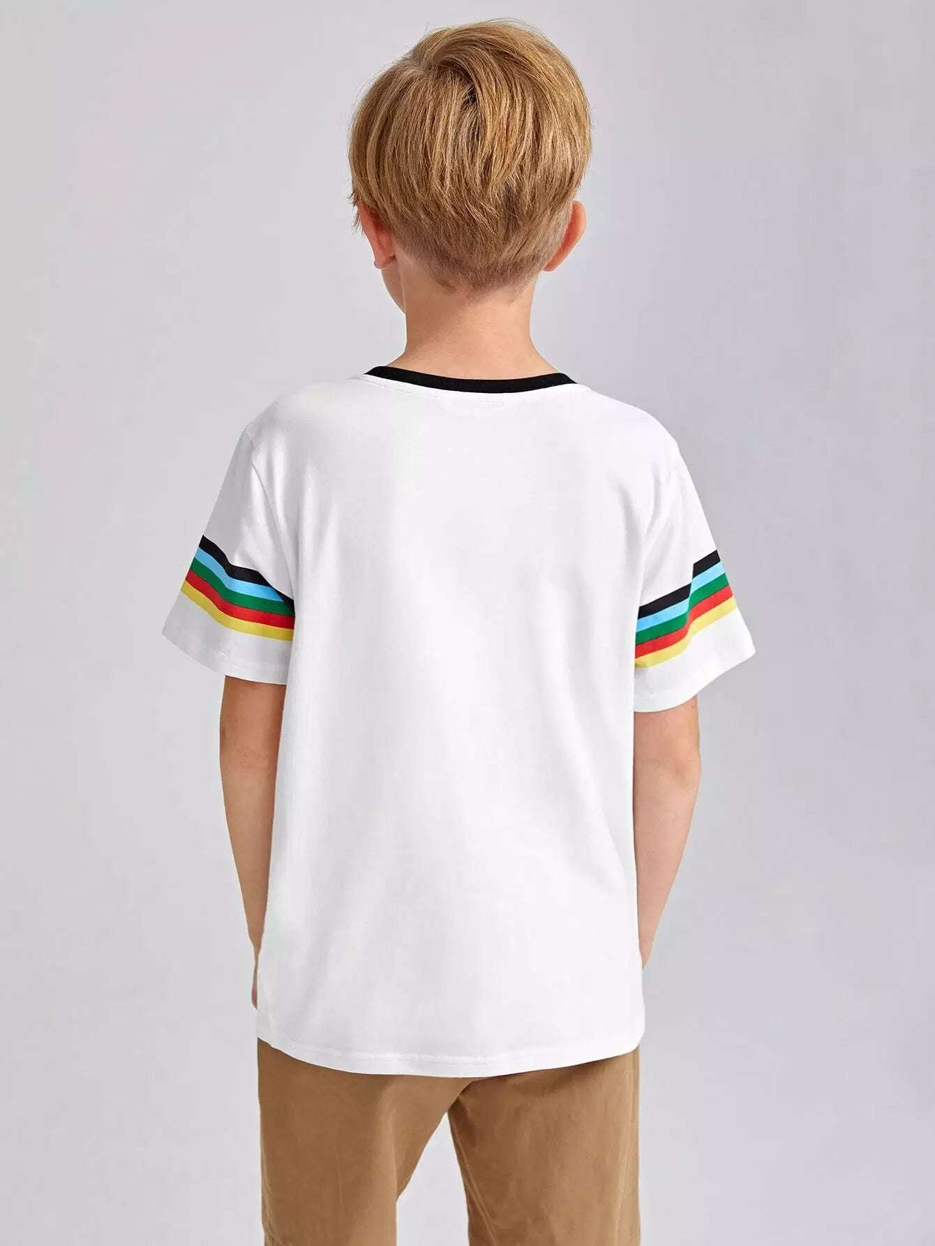 تي شيرت بطبعة جرافيكية مخططة بألوان قوس قزح للأولاد