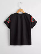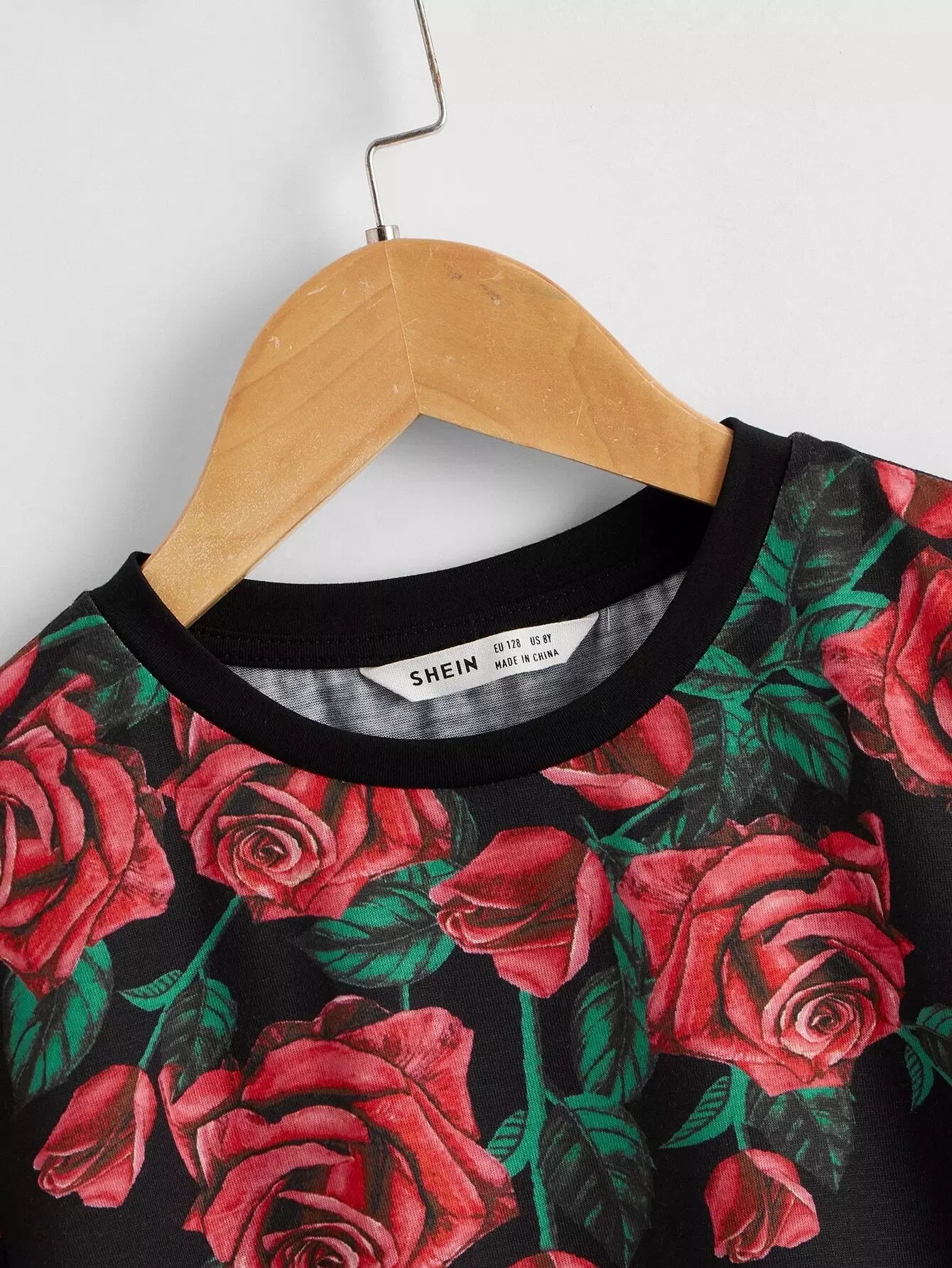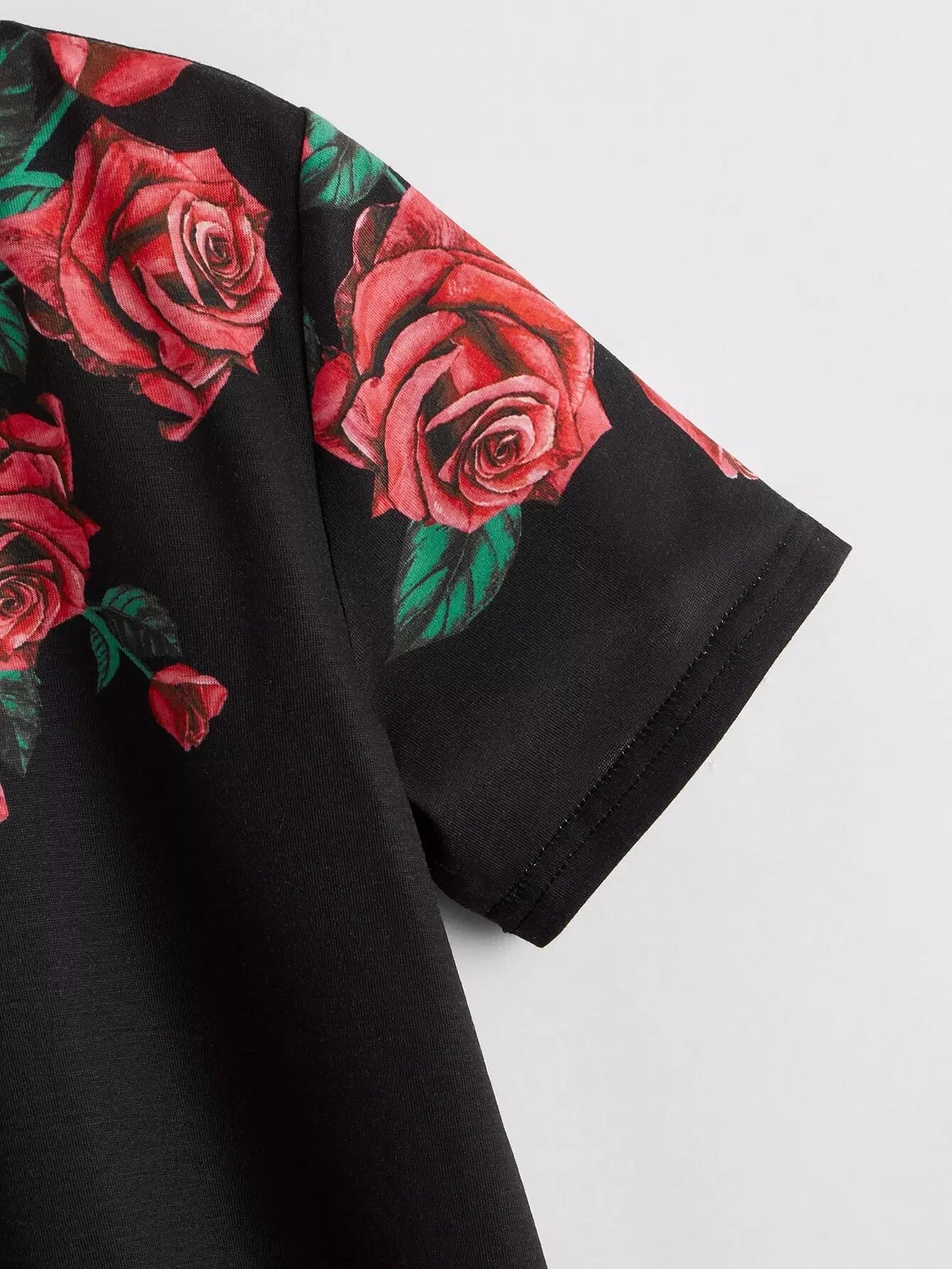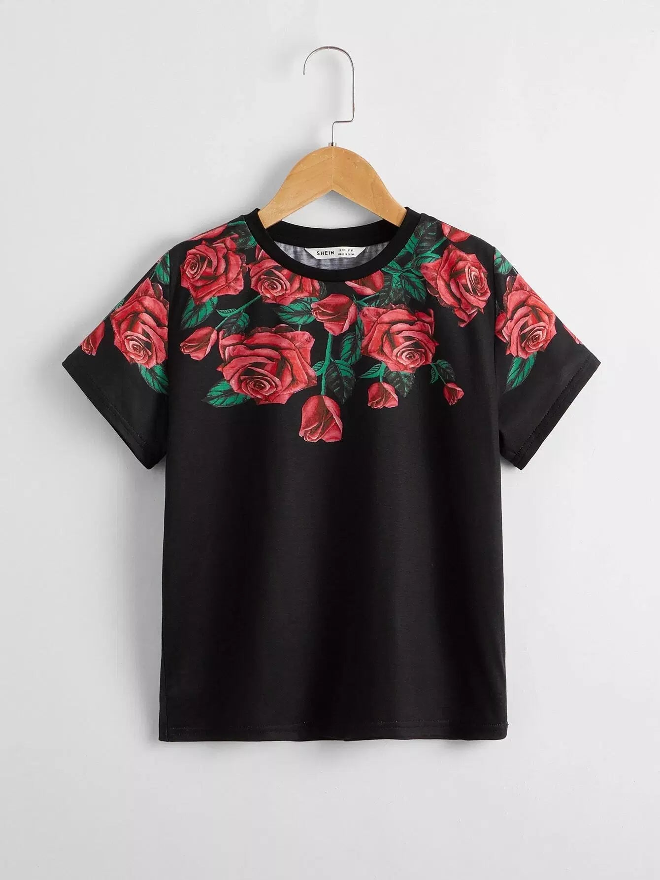 تي شيرت بطبعة وردة للأولاد برقبة دائرية