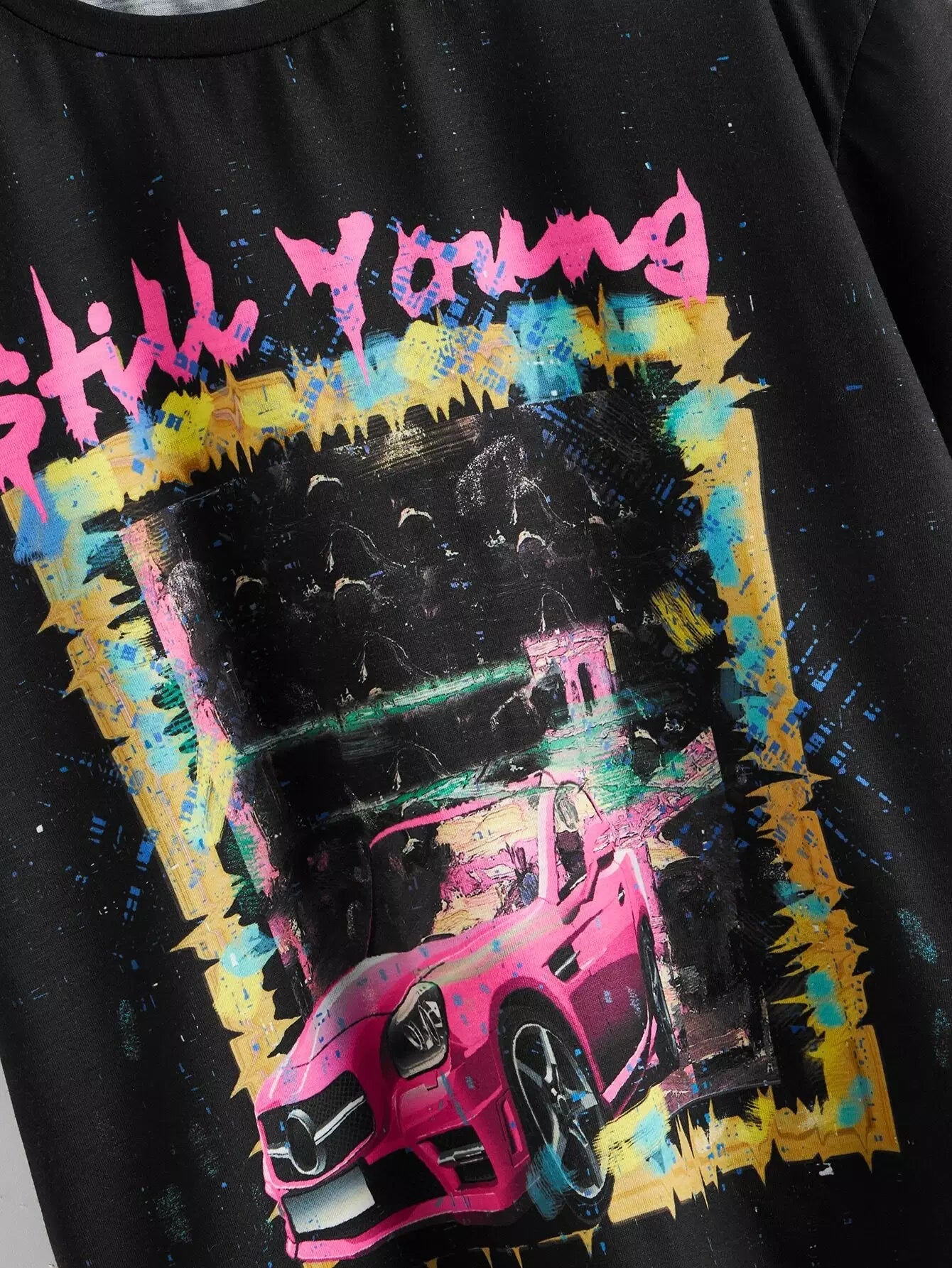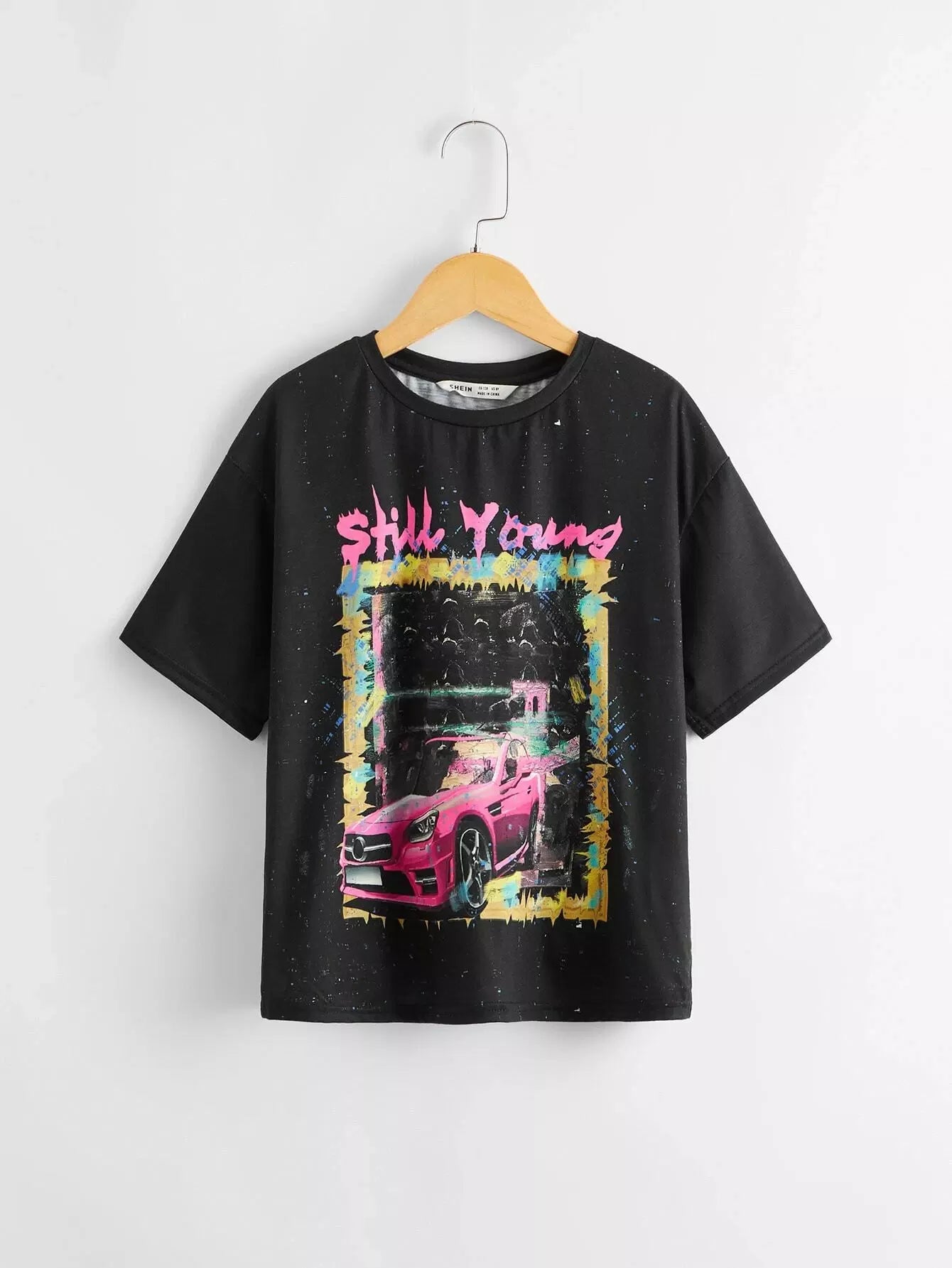 تي شيرت بطبعة شعار جرافيكي للأولاد