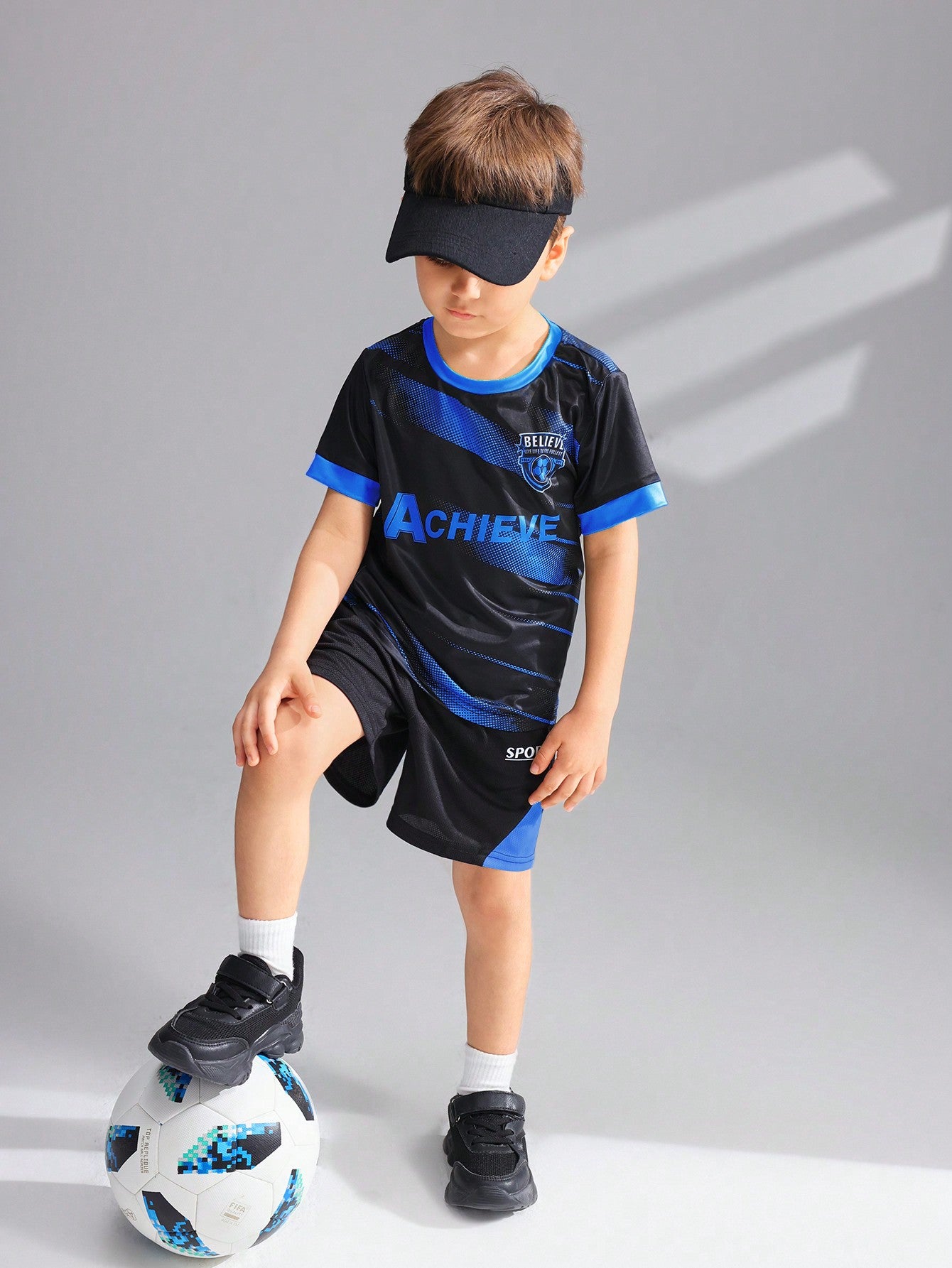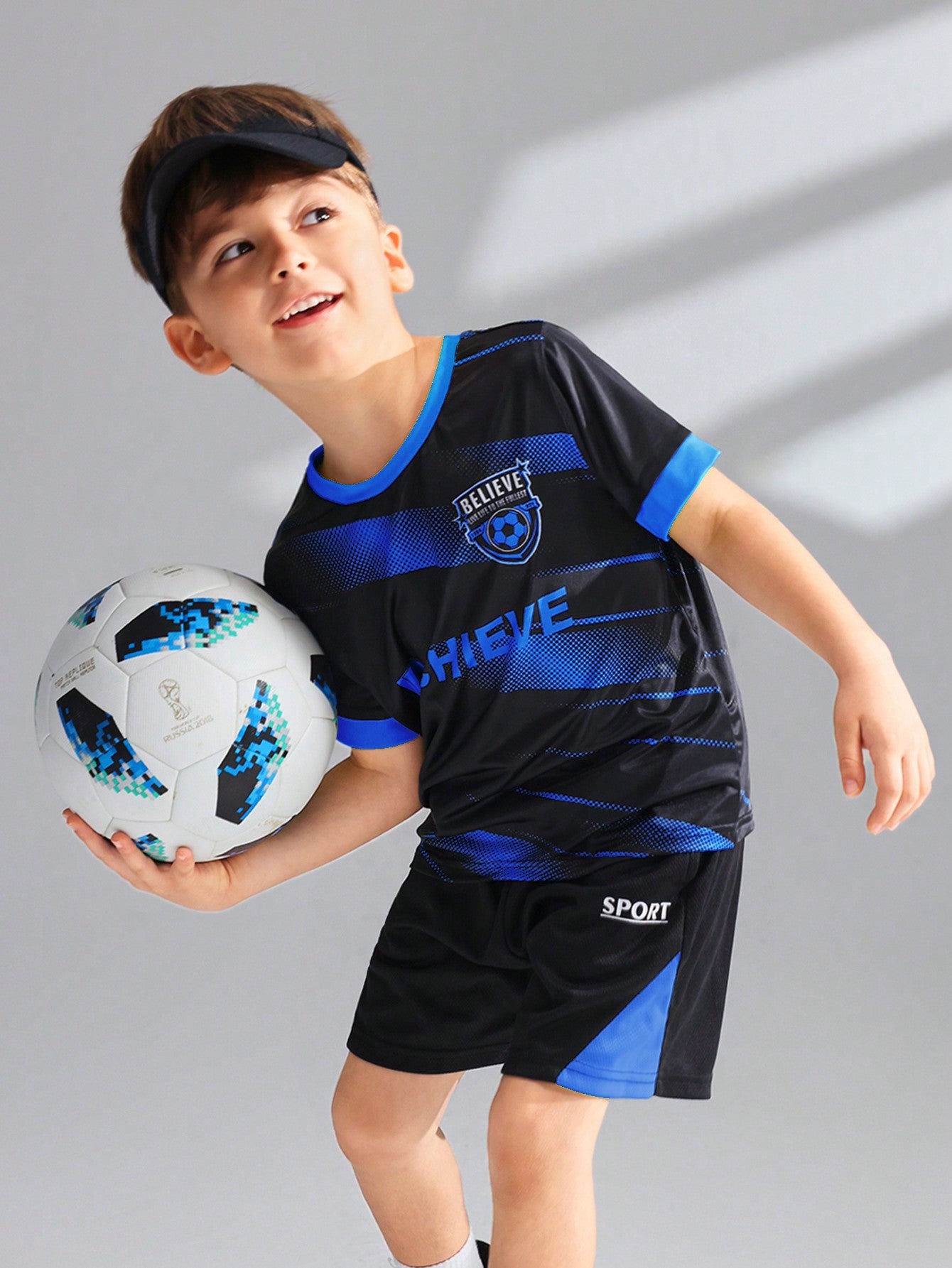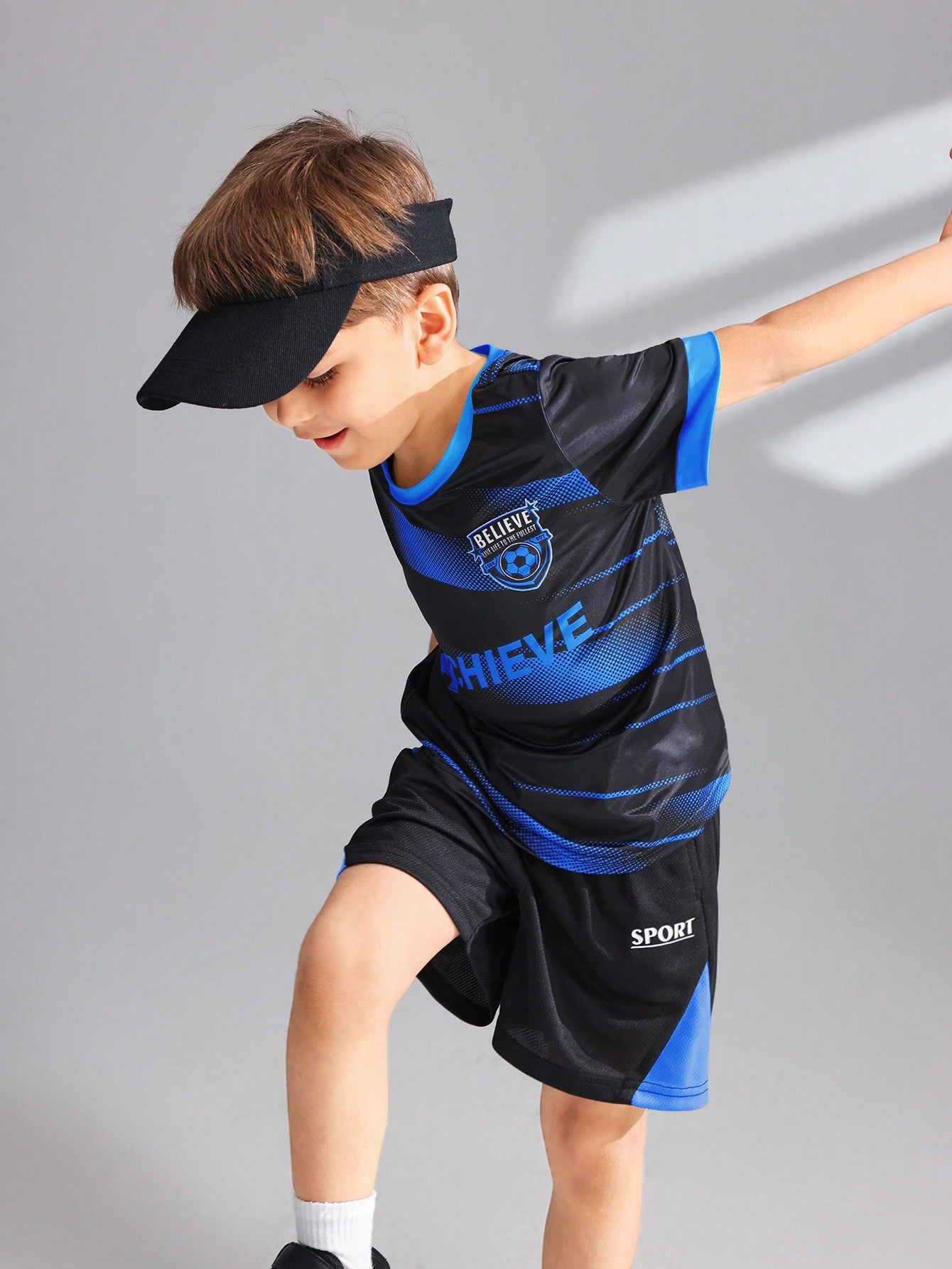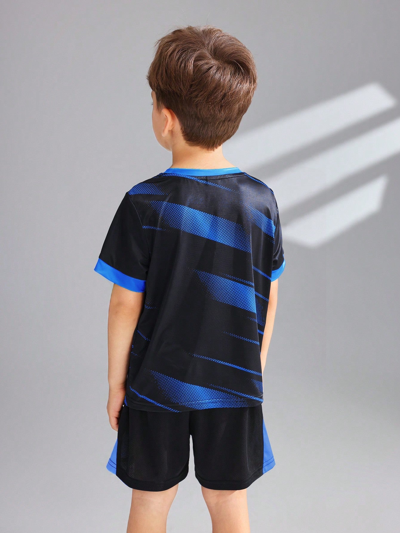 تيشيرت رياضي مريح وجيد التهوية من الحرير الجليدي للأولاد الصغار، مزين بطبعة حروف، مناسب للارتداء اليومي