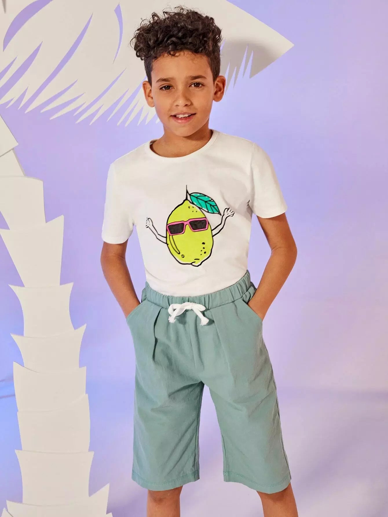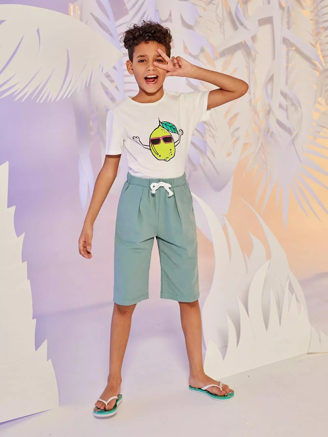 طقم تي شيرت وشورت برسومات كرتونية للأولاد
