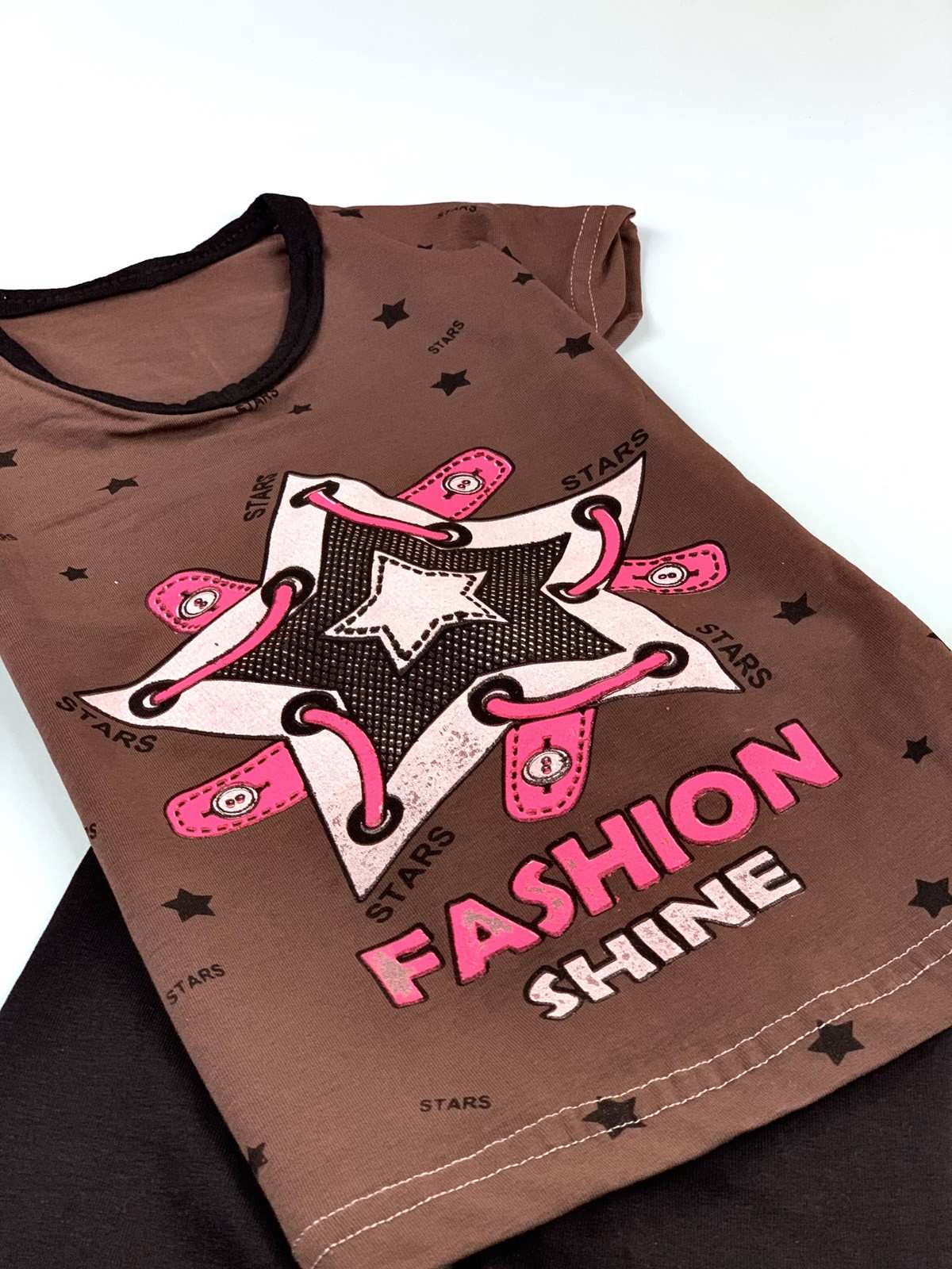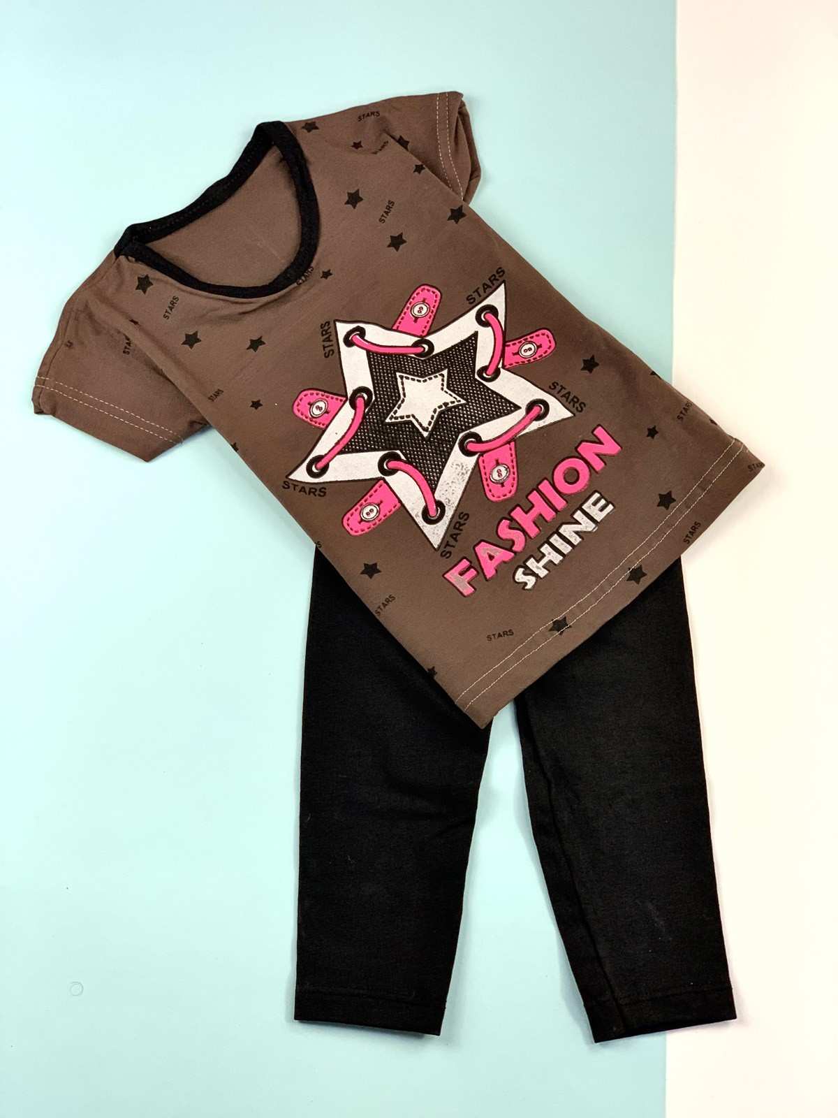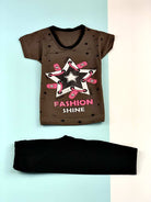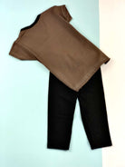 طقم بناتي باللون الأسود مع تي شيرت بني FASHION