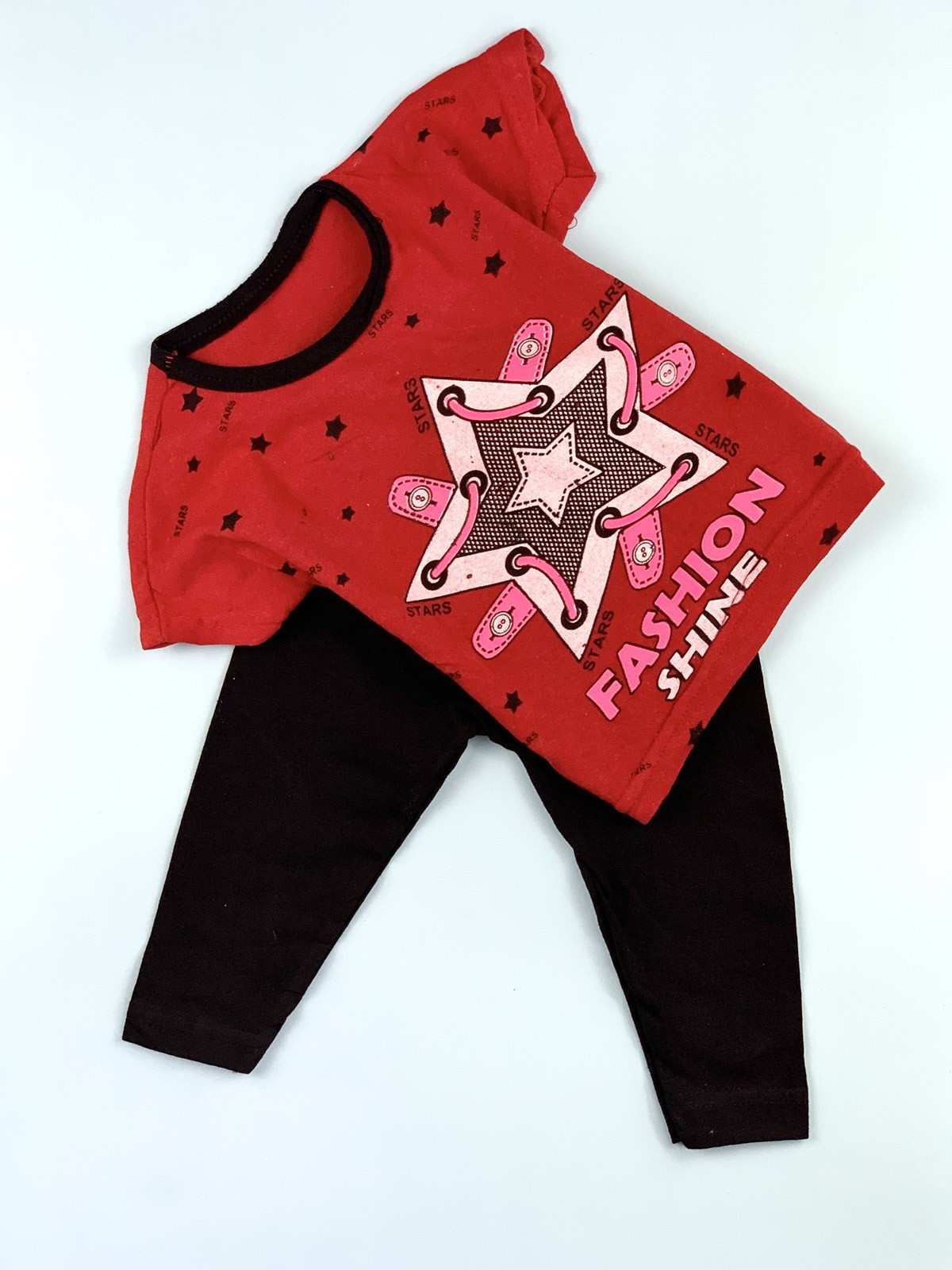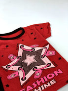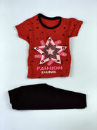 طقم بناتي باللون الأسود مع تيشيرت أحمر FASHION