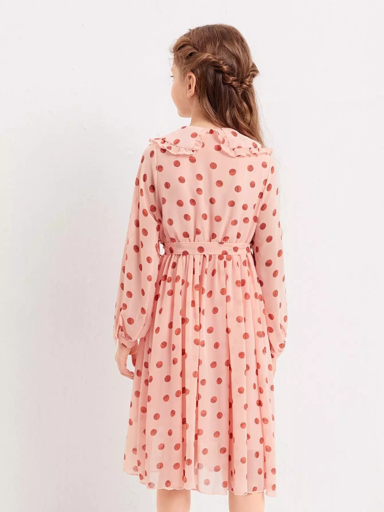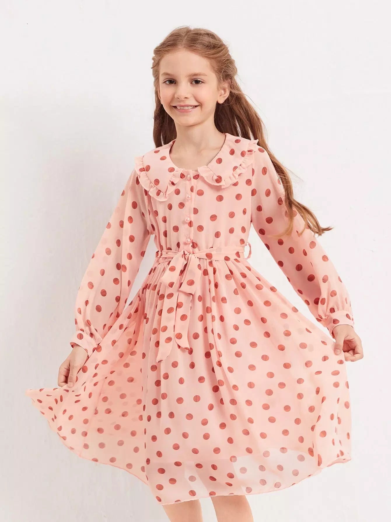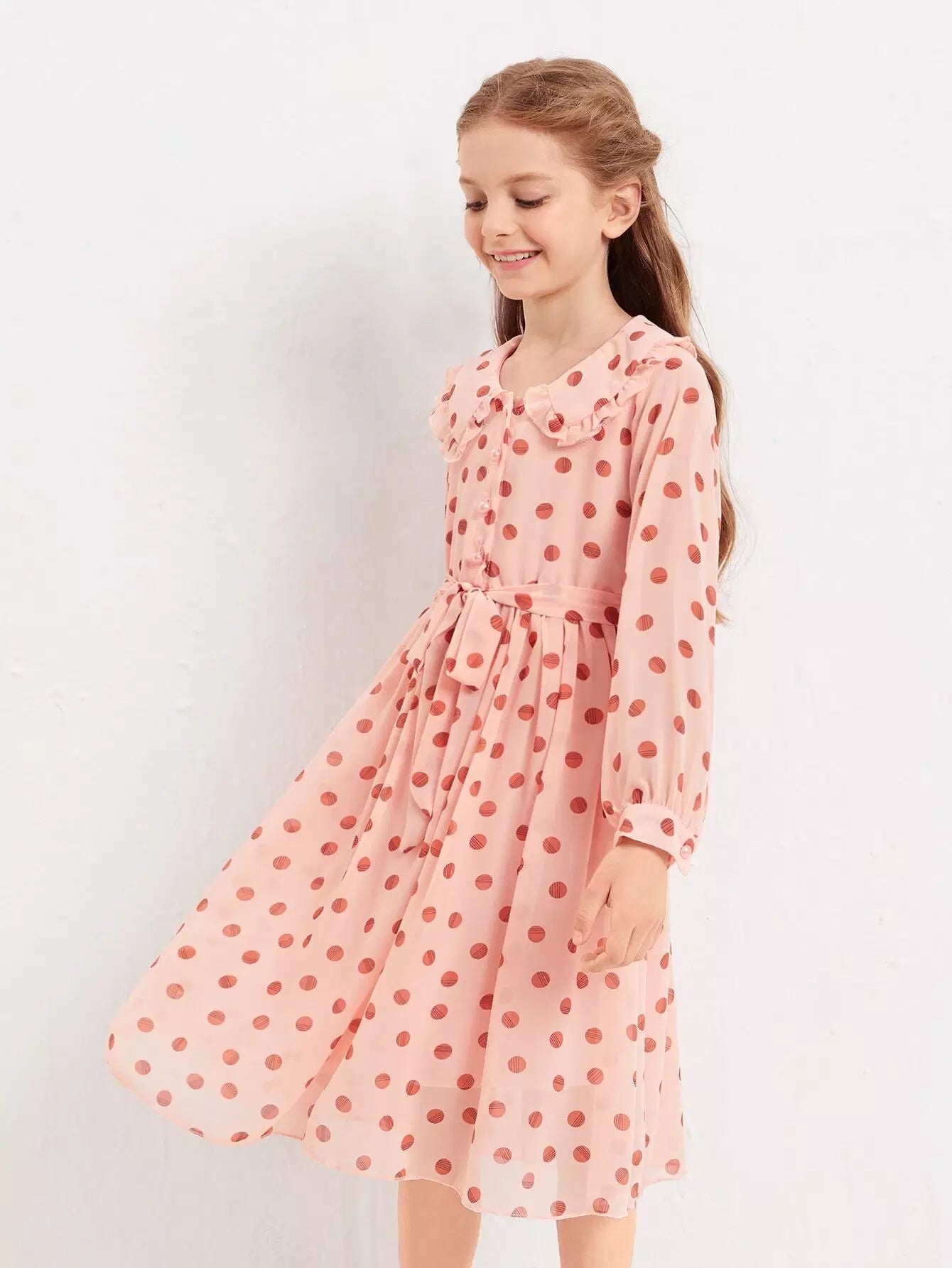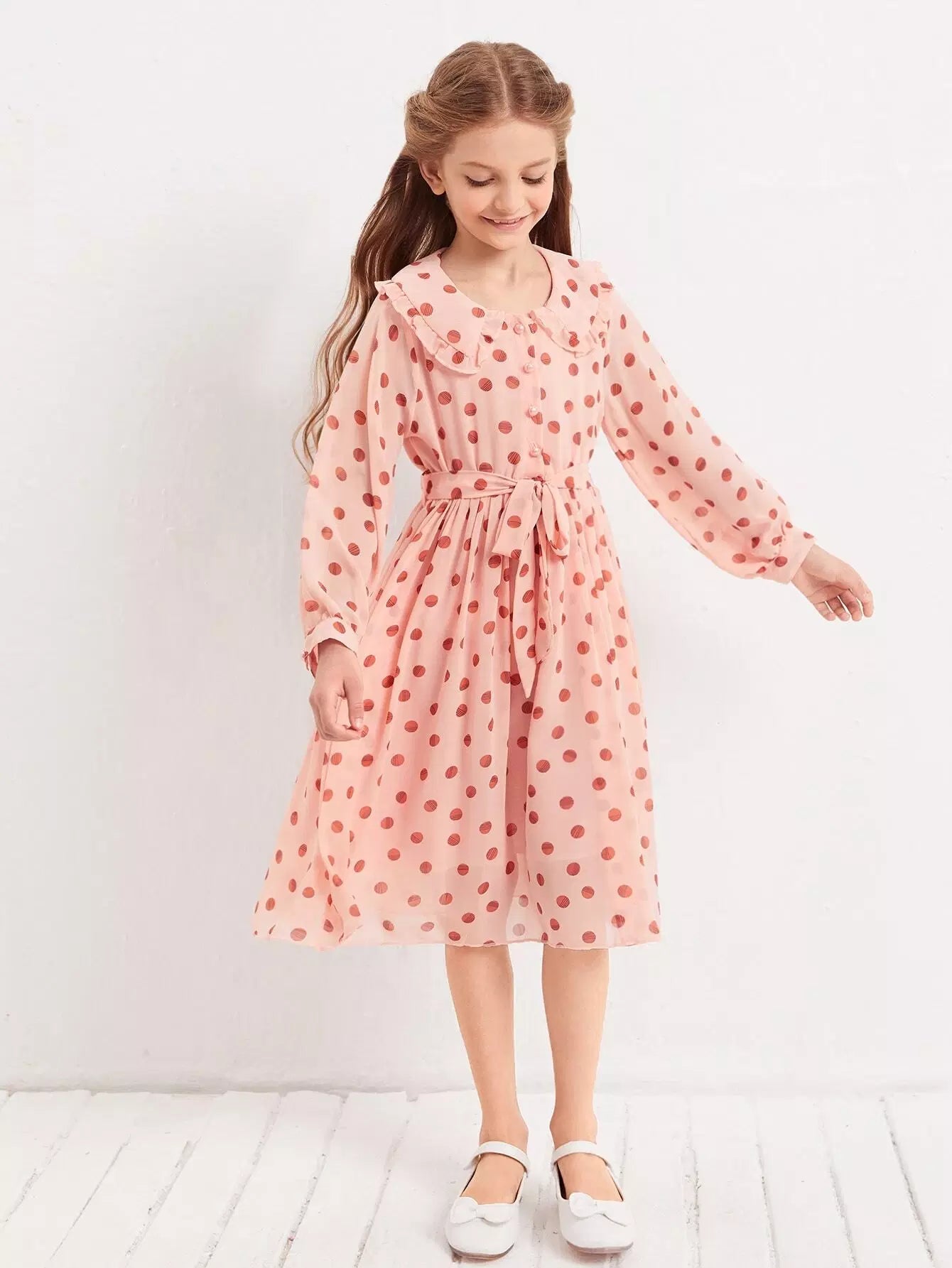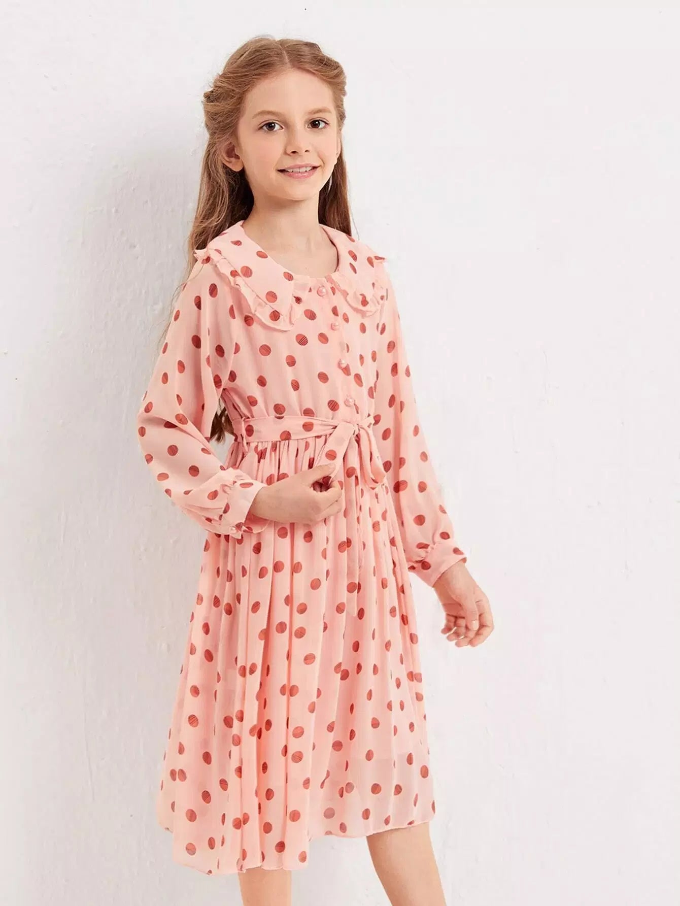 فستان بناتي بنصف أزرار منقّط بنصف أزرار على شكل حرف A