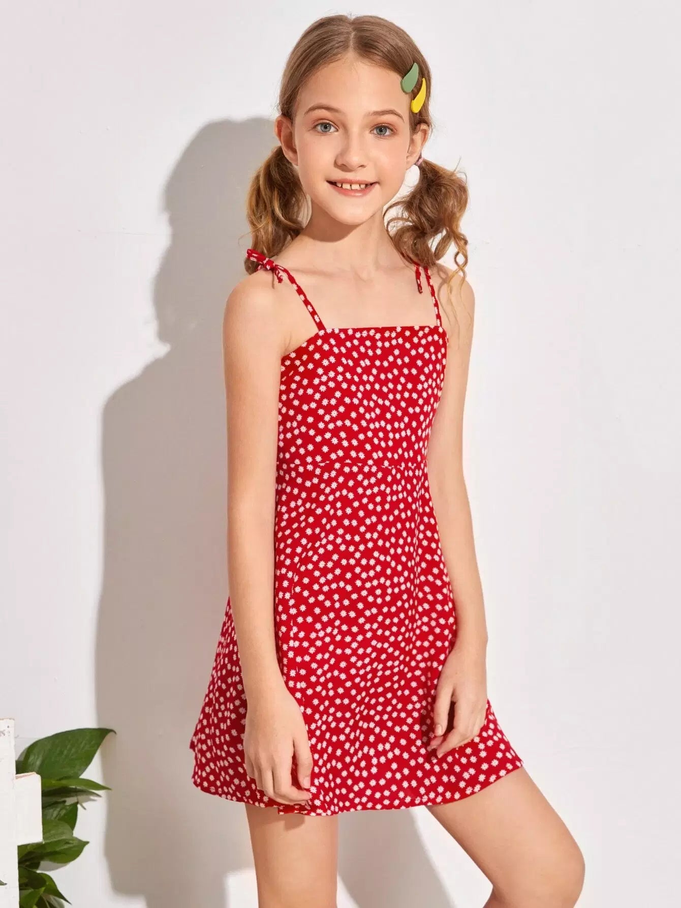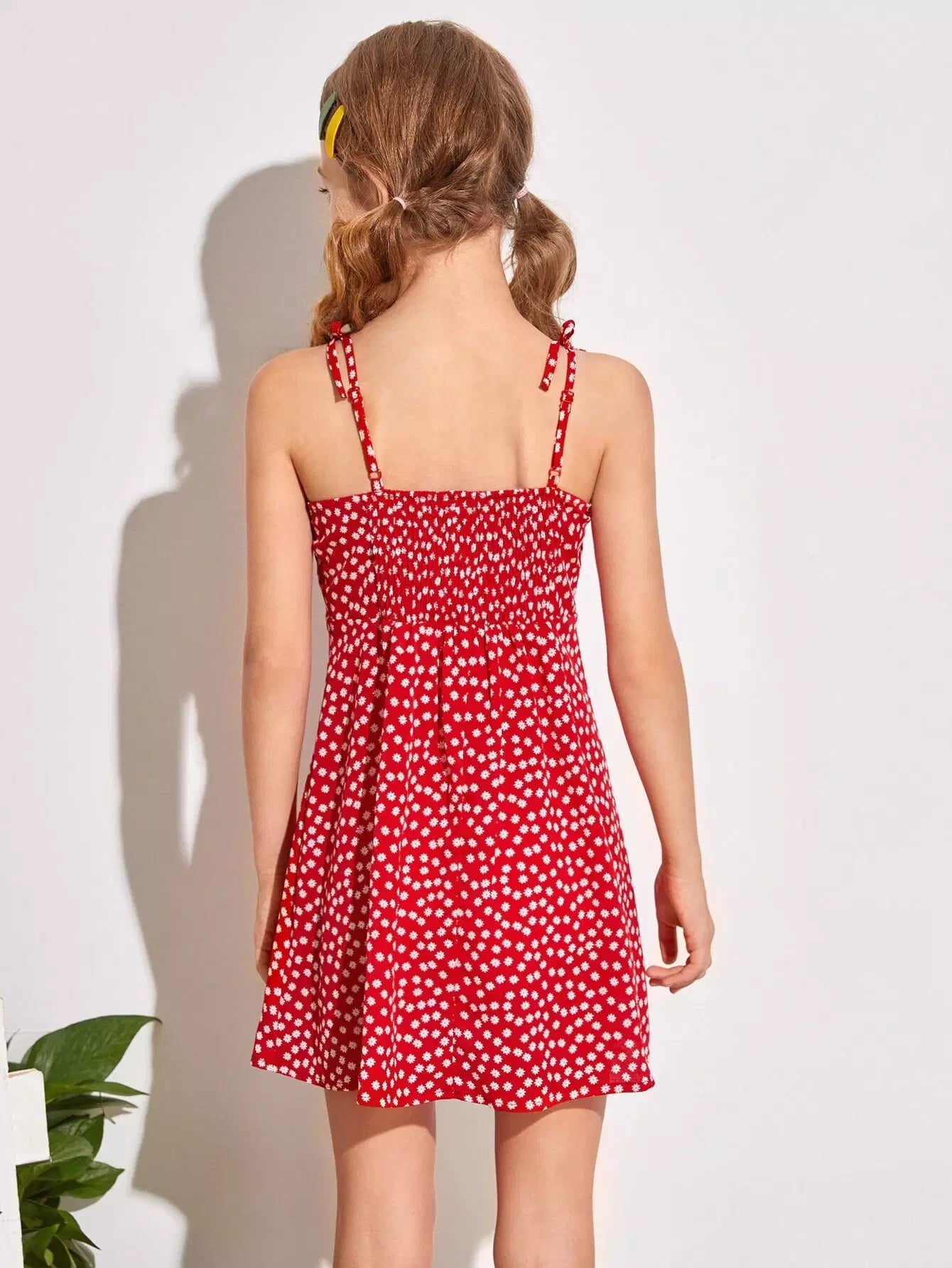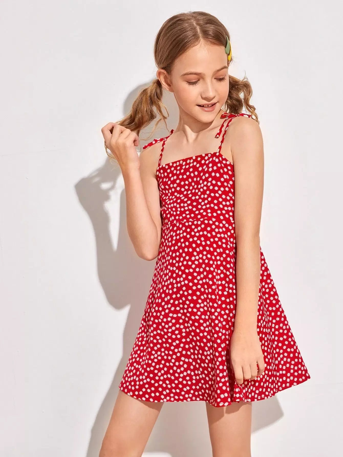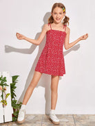 فستان بناتي بحزام عقدة ونقشة زهور صغيرة