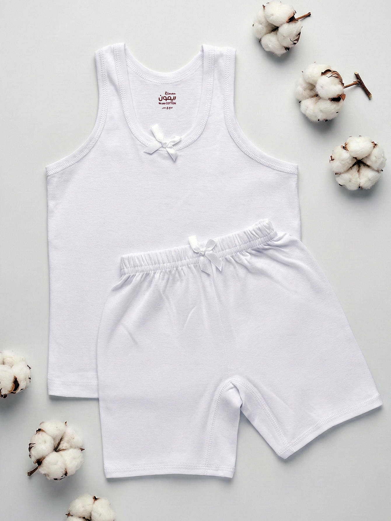 طقم بناتي بحمالة كتف - أبيض