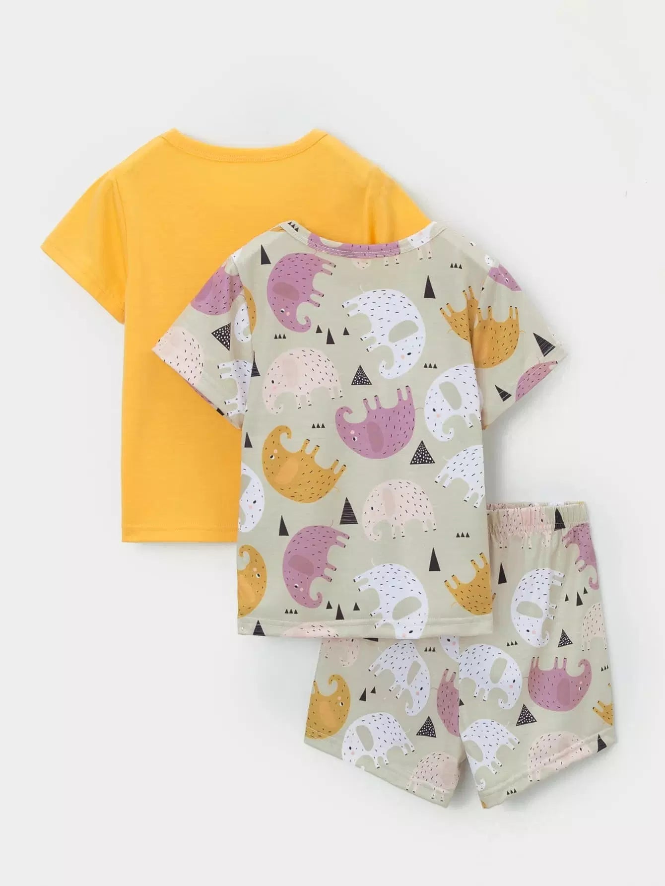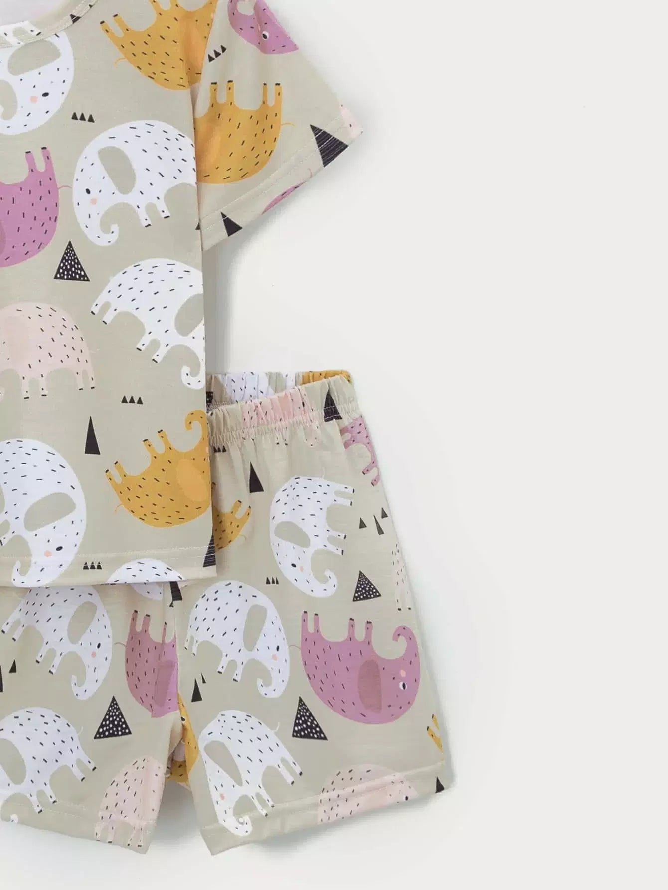 طقم بيجامات بنات صغيرات 3 قطع عشوائي بطبعة فيل