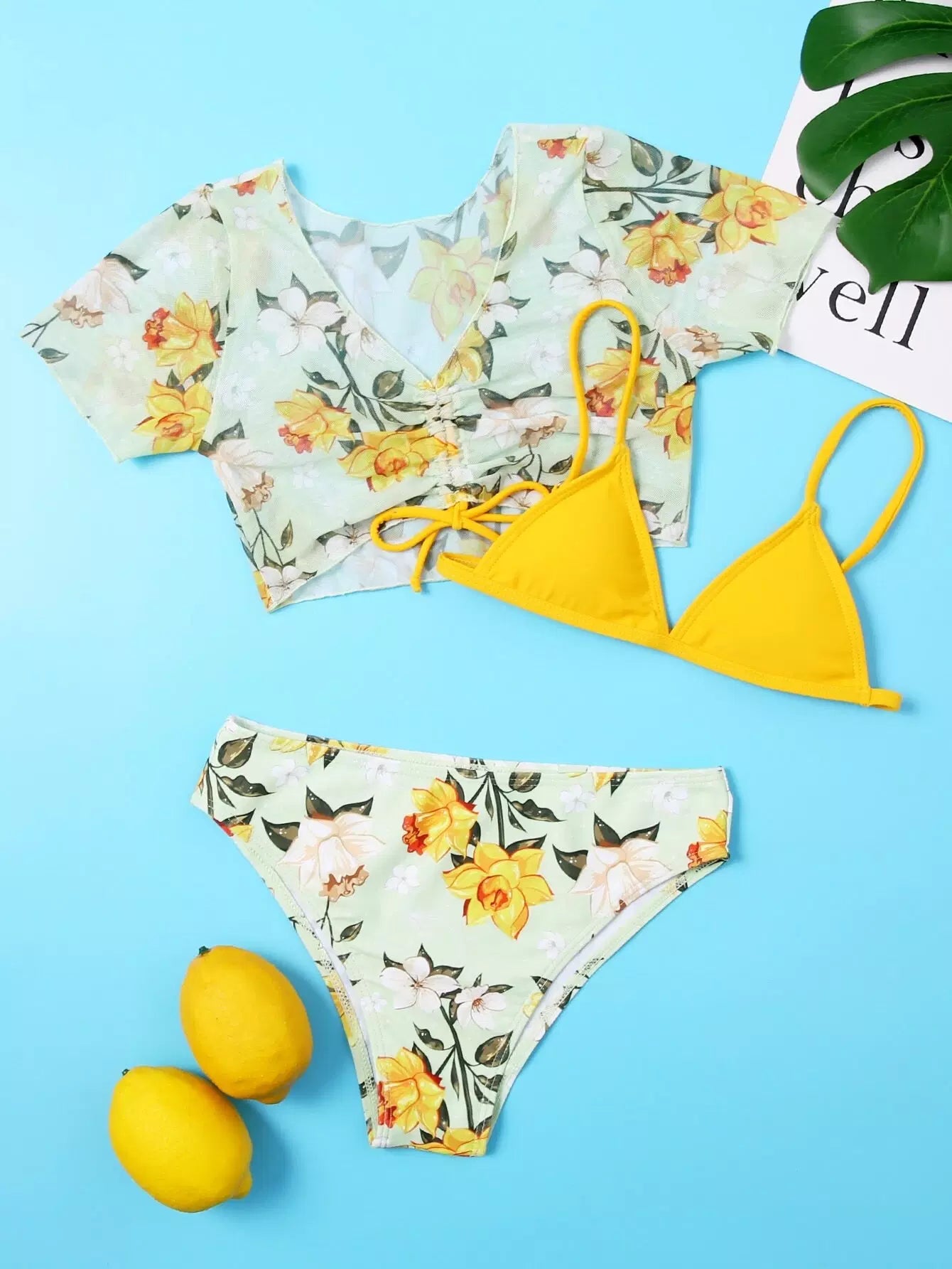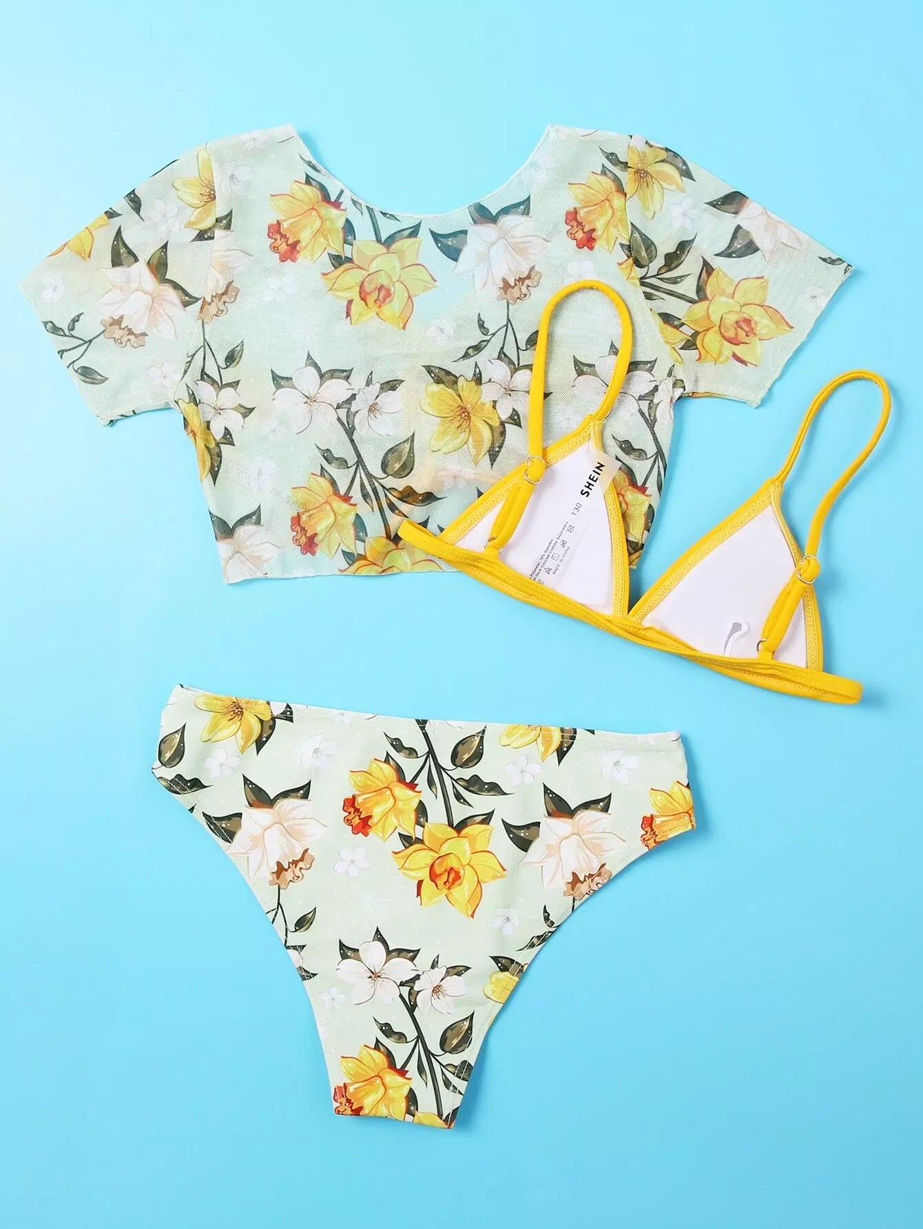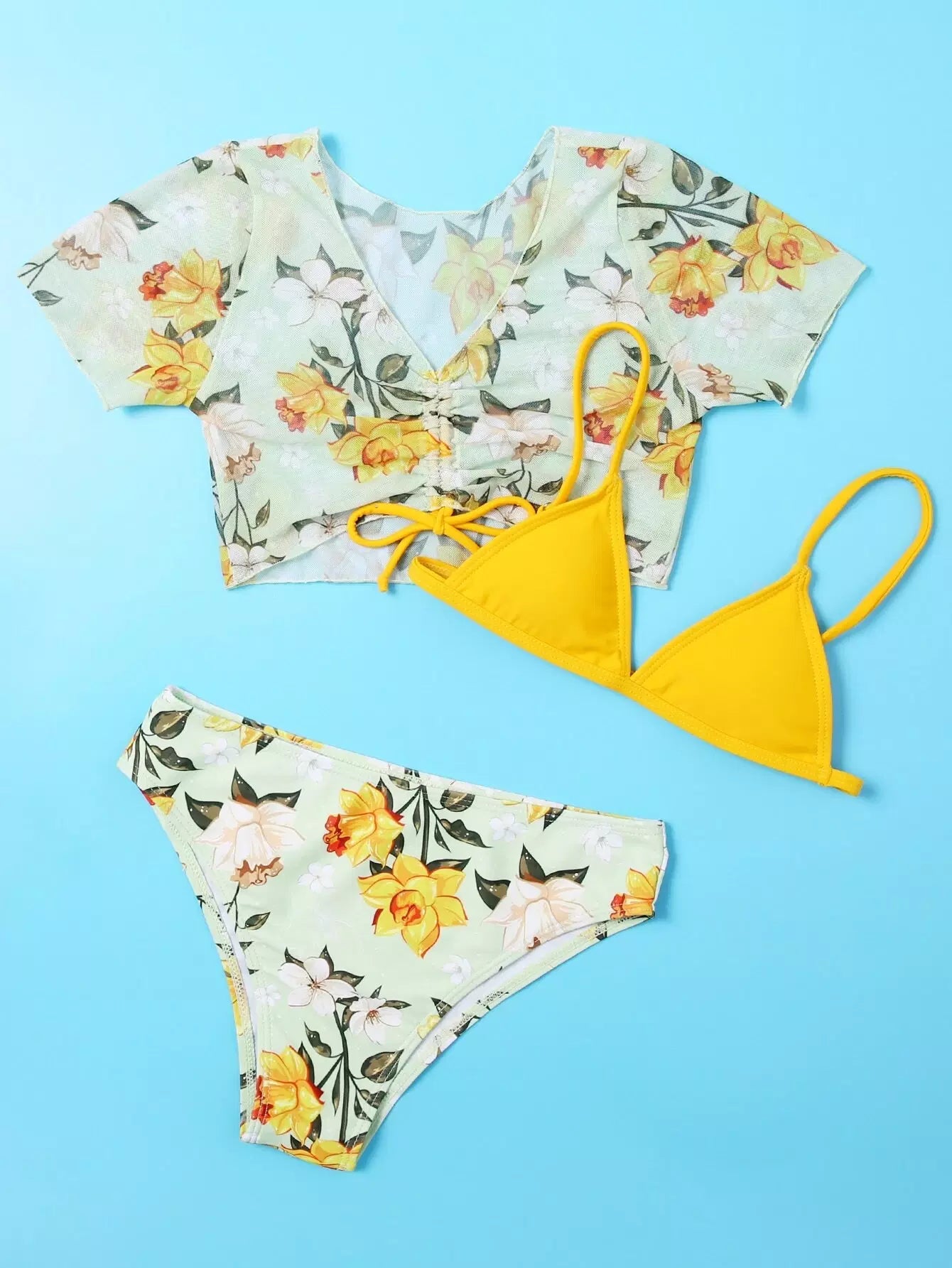 3 عبوات ملابس سباحة بيكيني نسائية منسقة بنقوش الأزهار