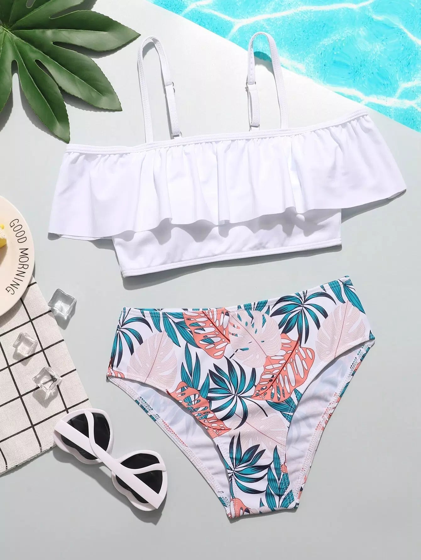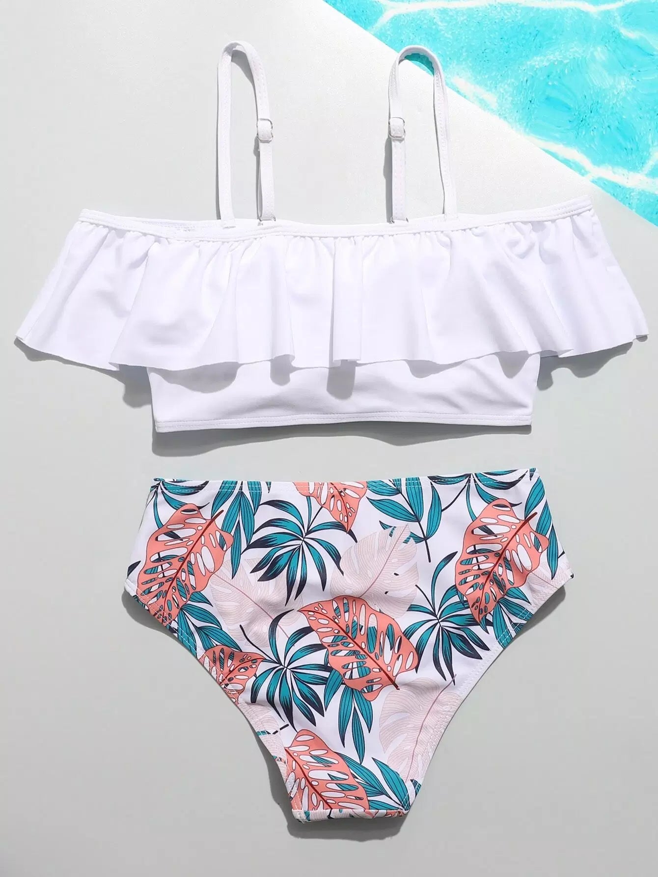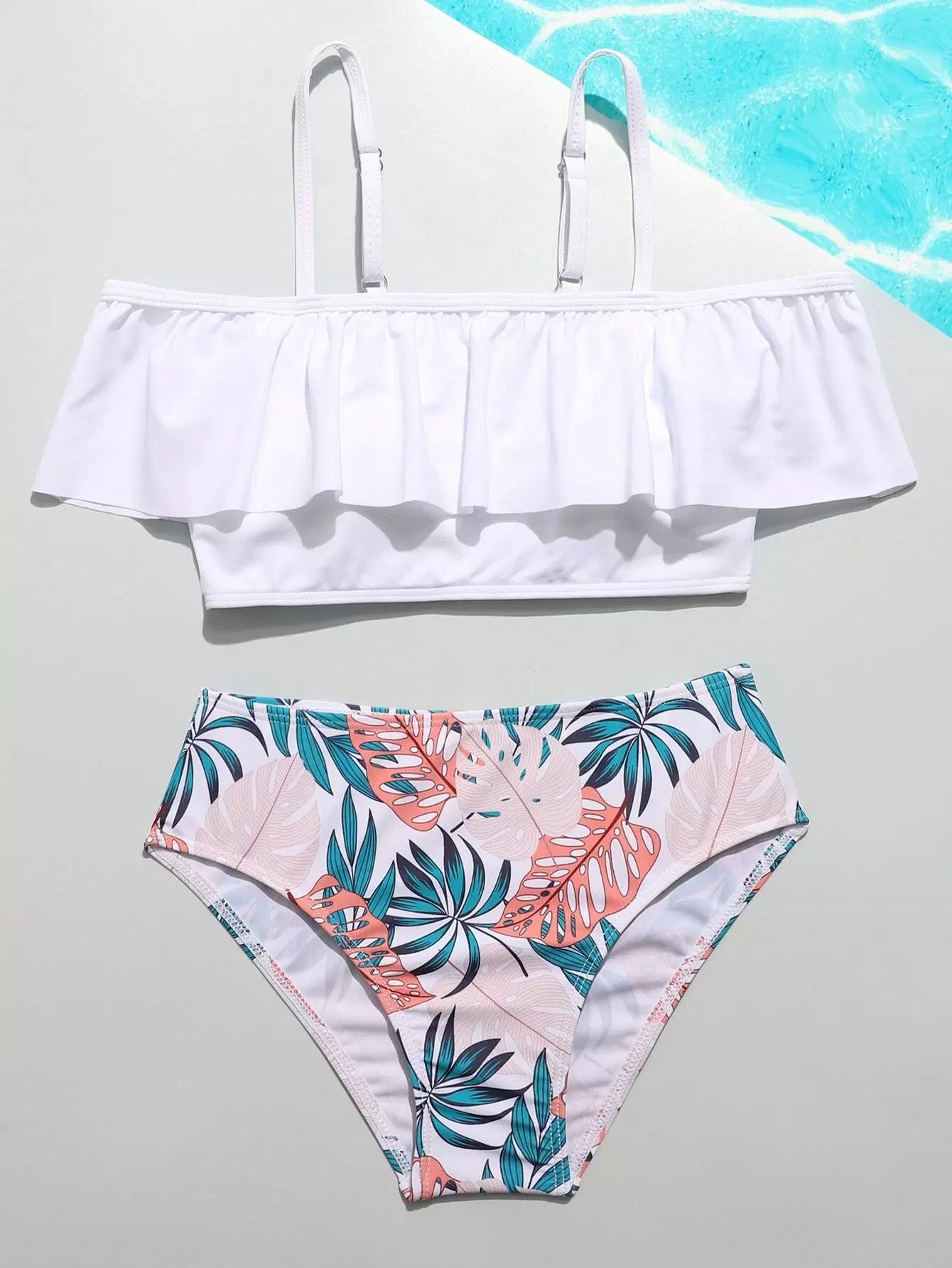 مايوه بيكيني بحافة كشكش استوائي للبنات