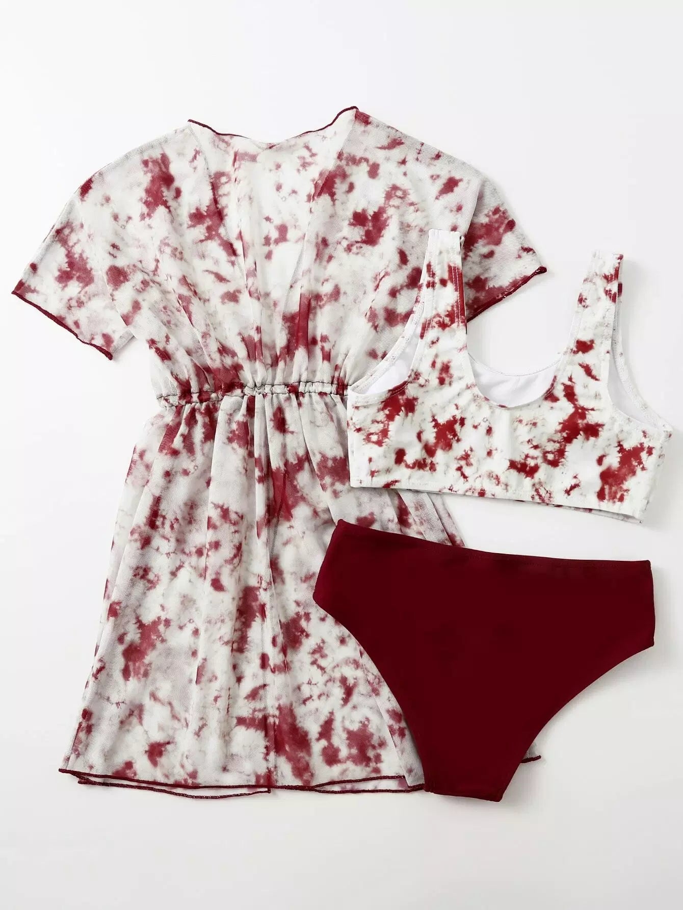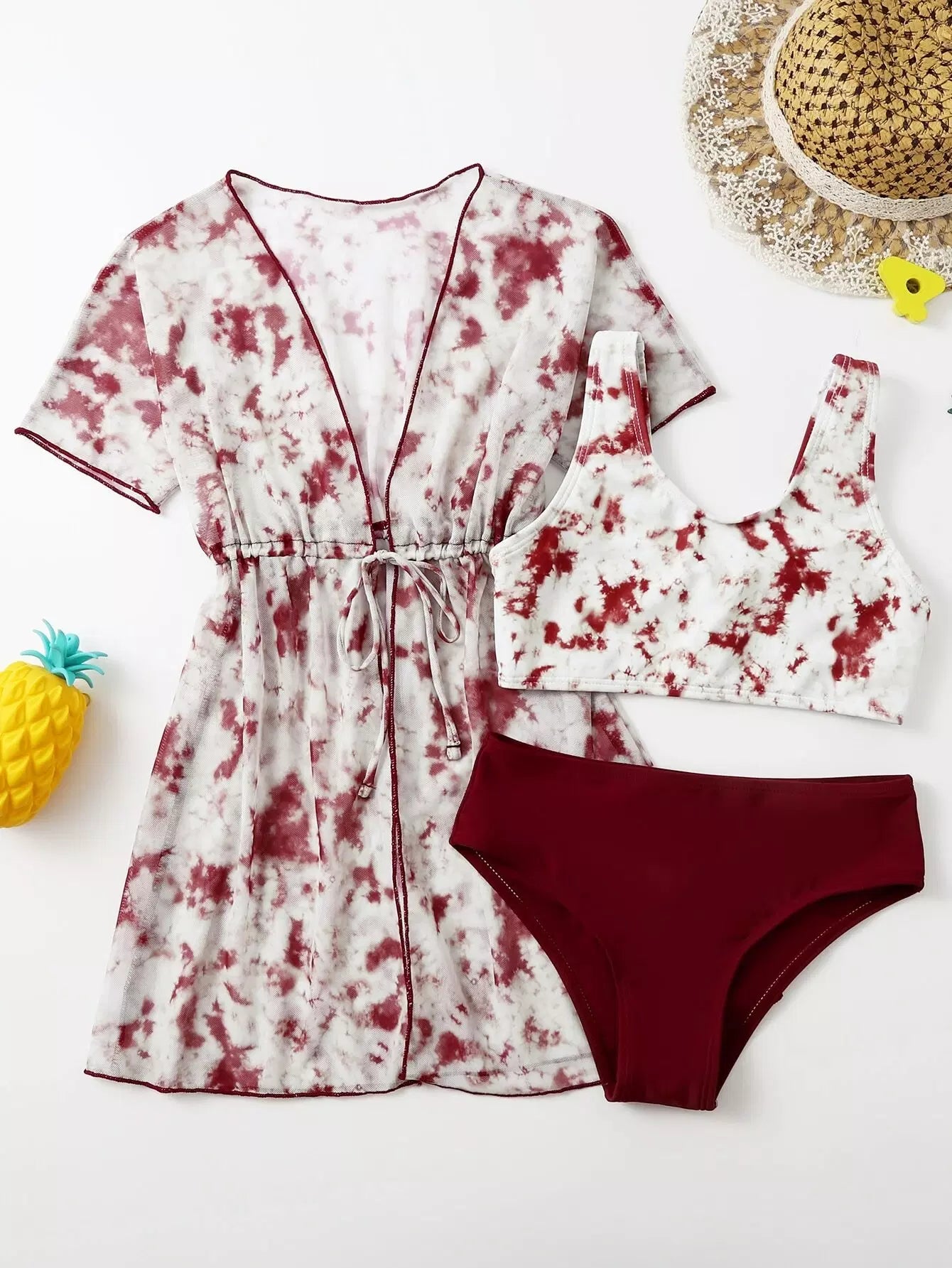 3 عبوات ملابس سباحة بيكيني بصبغة ربطات عنق للبنات وكيمونو
