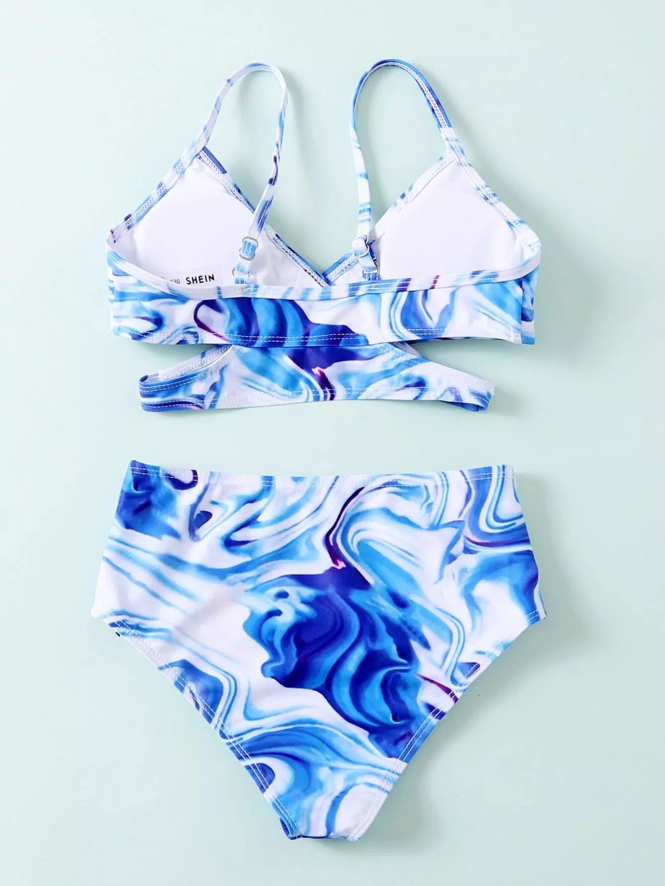 بدلة سباحة بيكيني مطبوع عليها بالكامل للبنات
