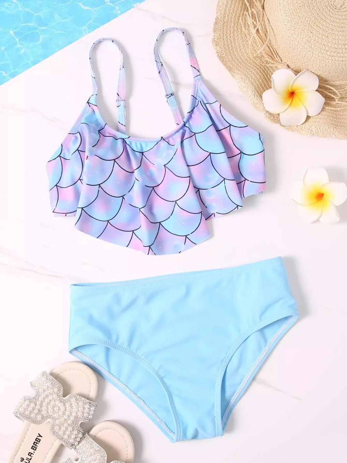 بدلة سباحة بيكيني بحافة حافة السمكة للفتيات