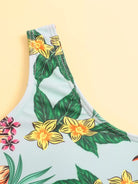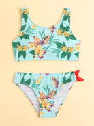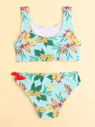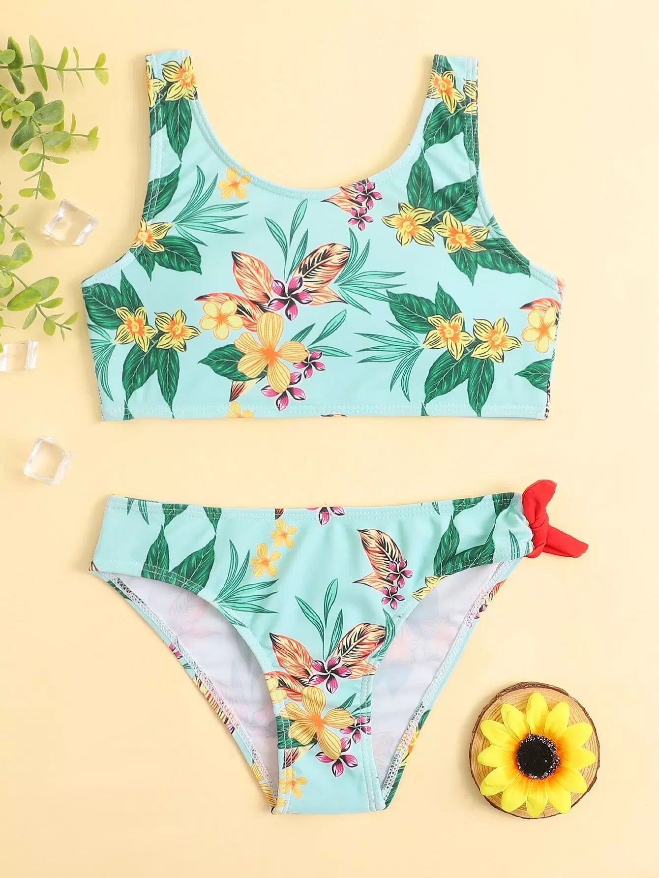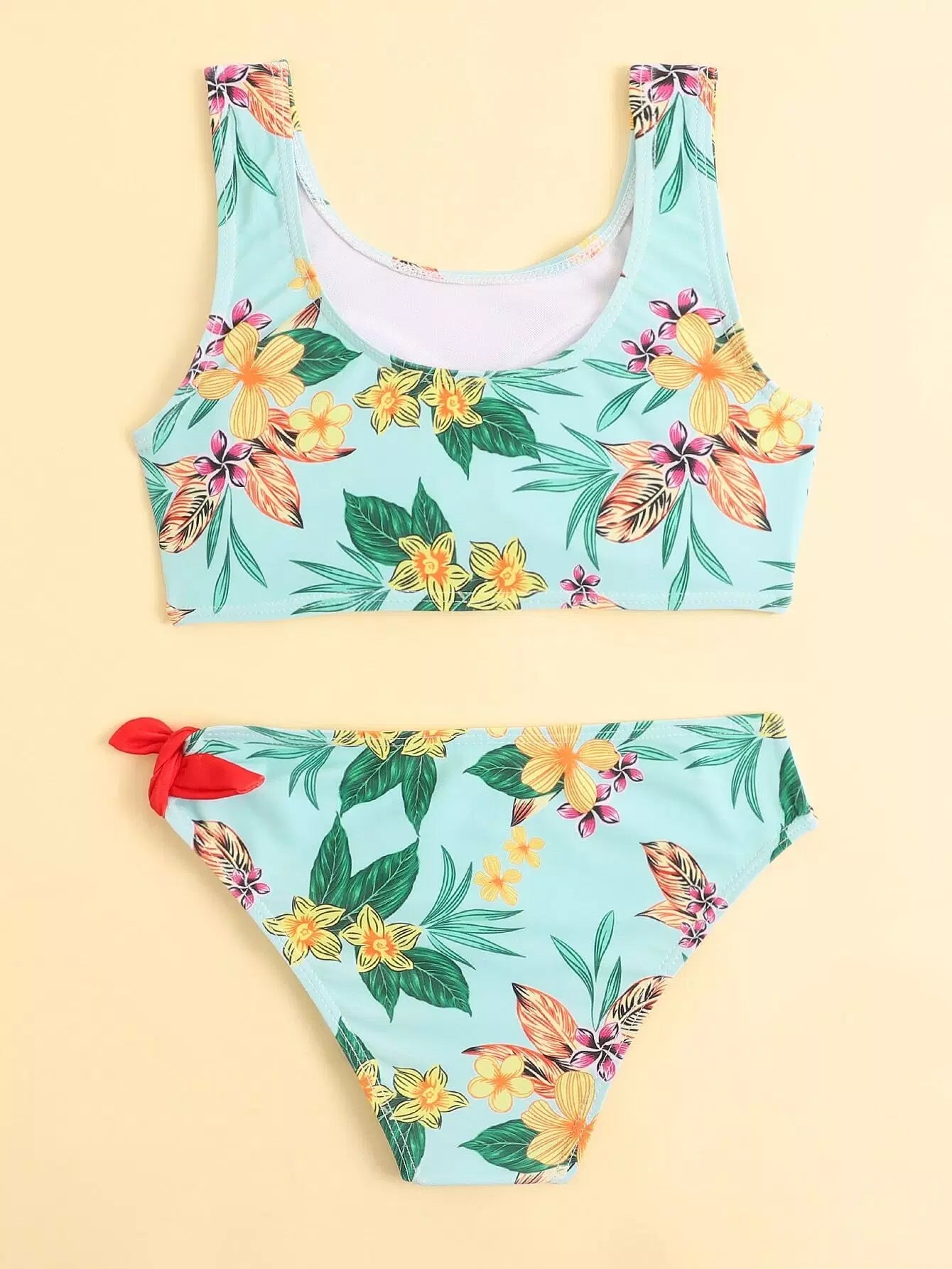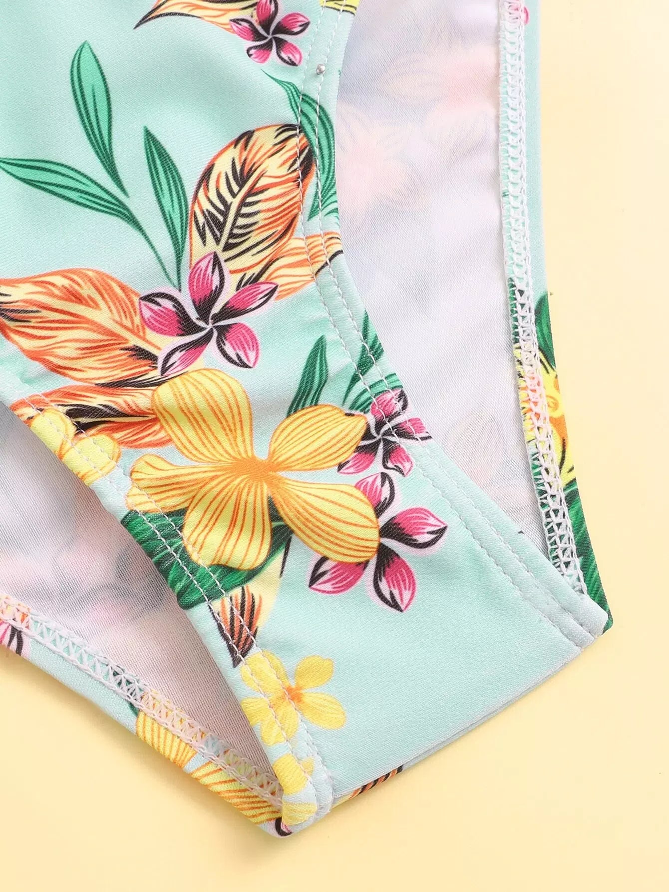 بدلة سباحة بيكيني بنقشة زهور بنقشة ضلع للبنات