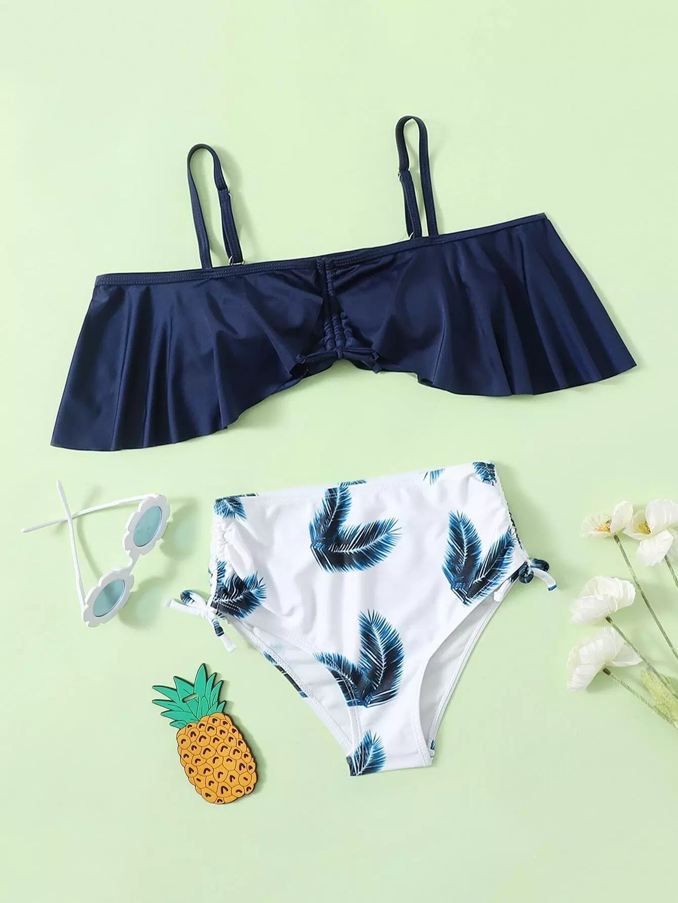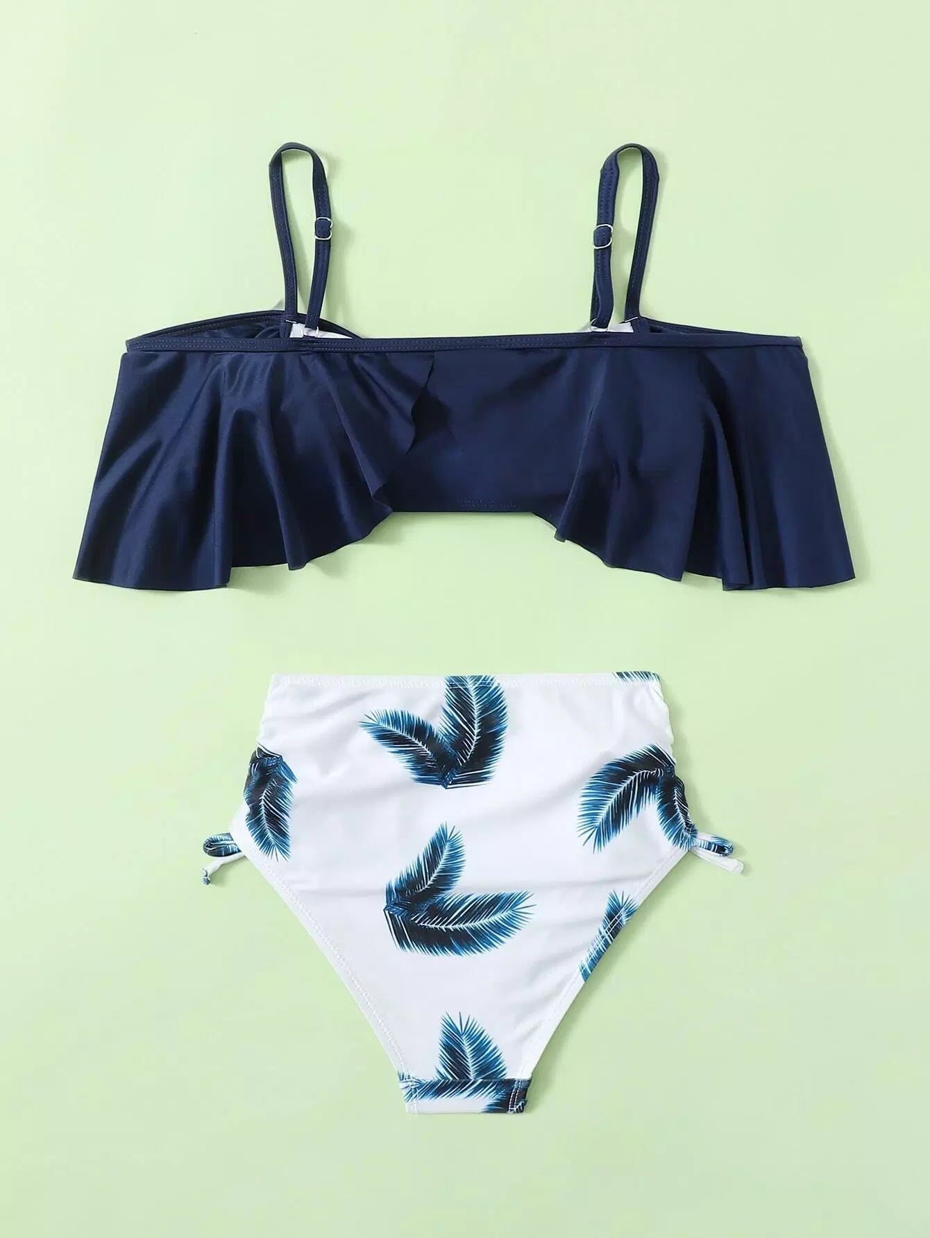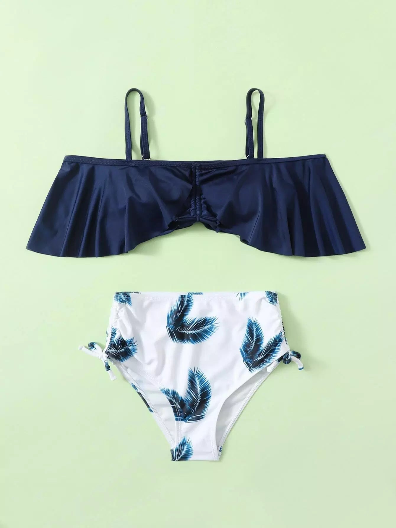 ملابس سباحة بيكيني بطبعة أوراق الشجر للبنات
