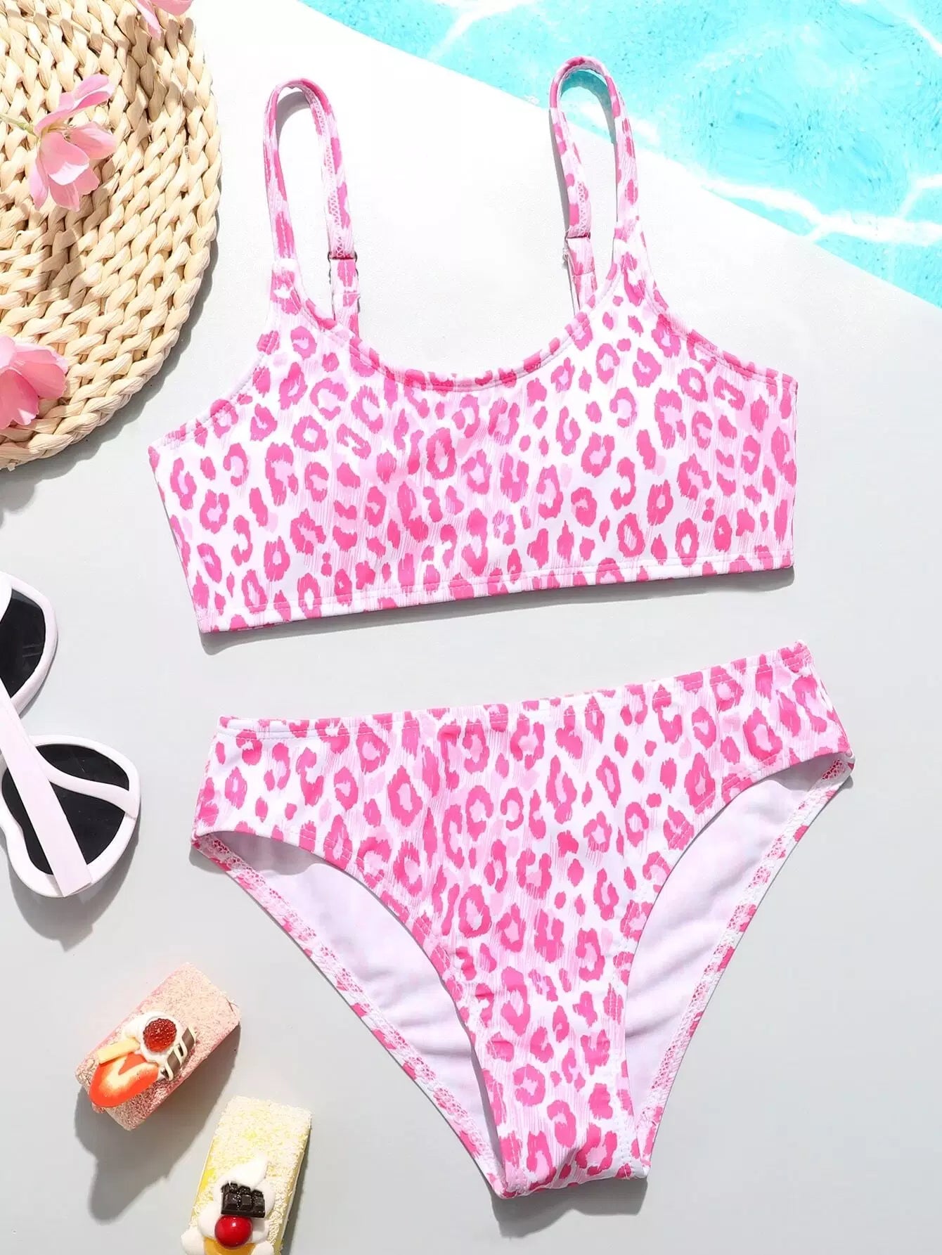 بدلة سباحة بيكيني بنطلون ليوبارد للبنات