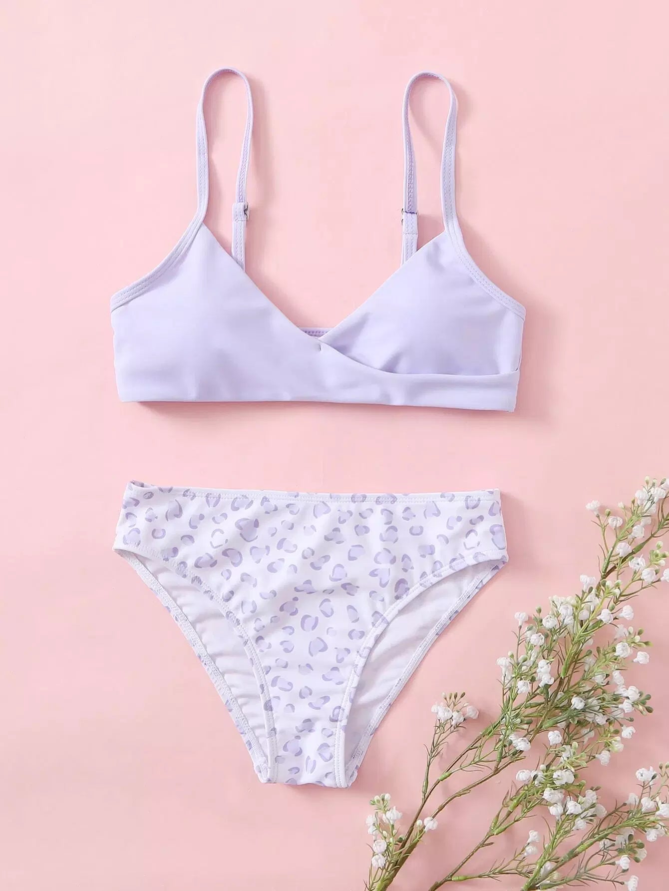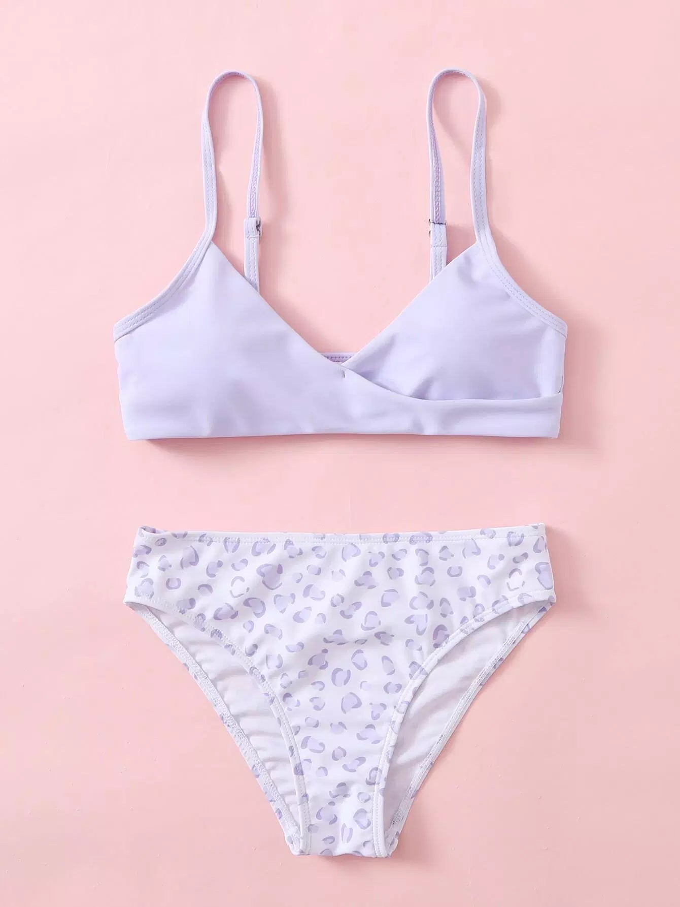 بدلة سباحة بيكيني بطبعة جلد النمر للبنات