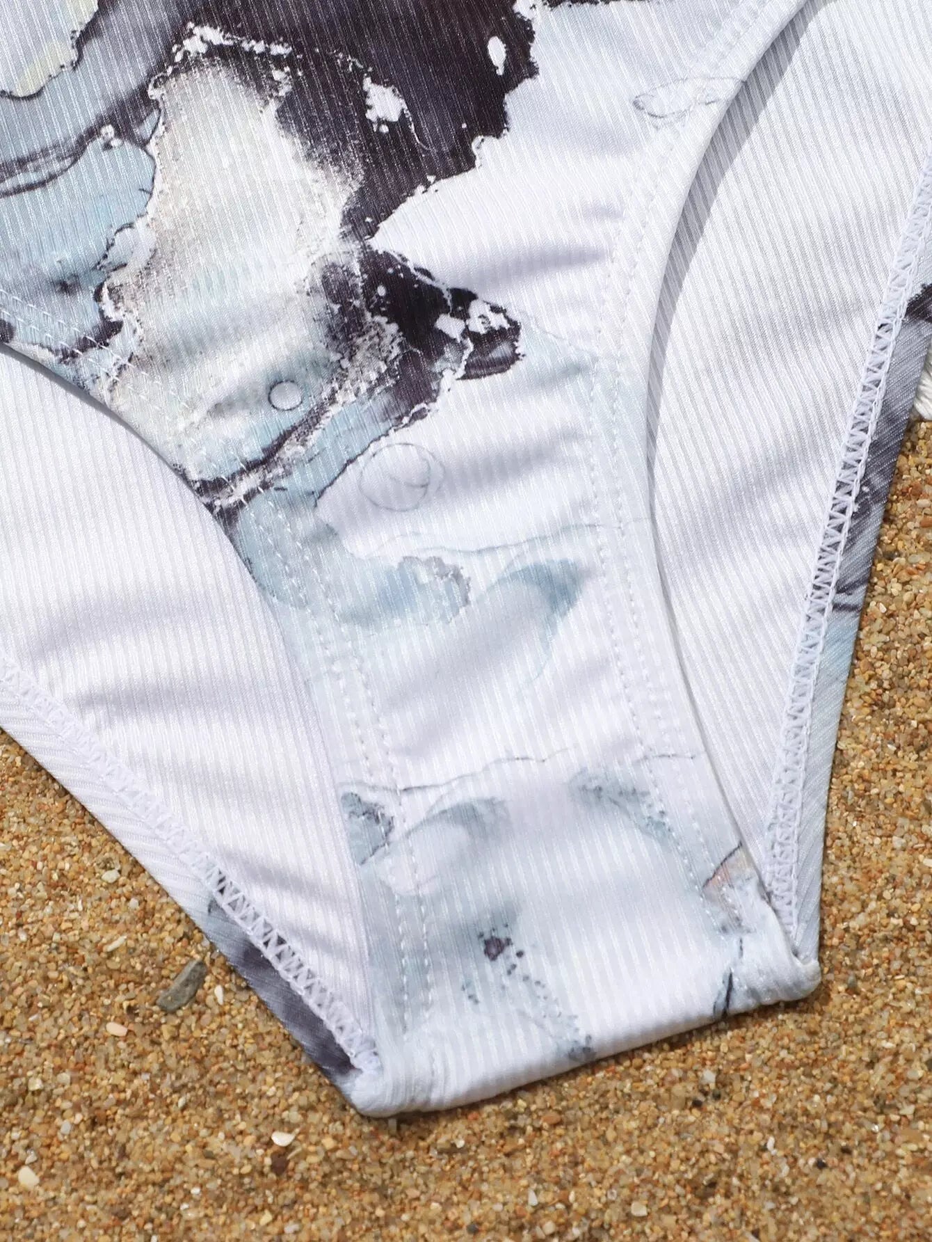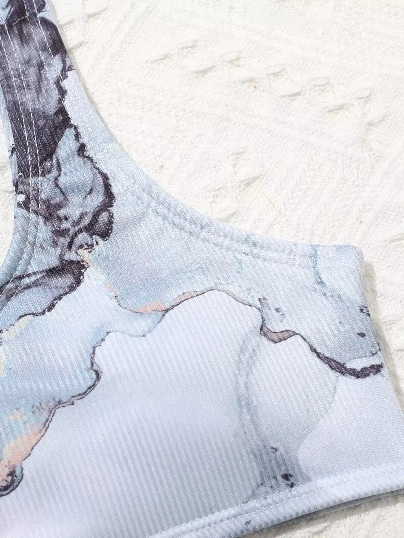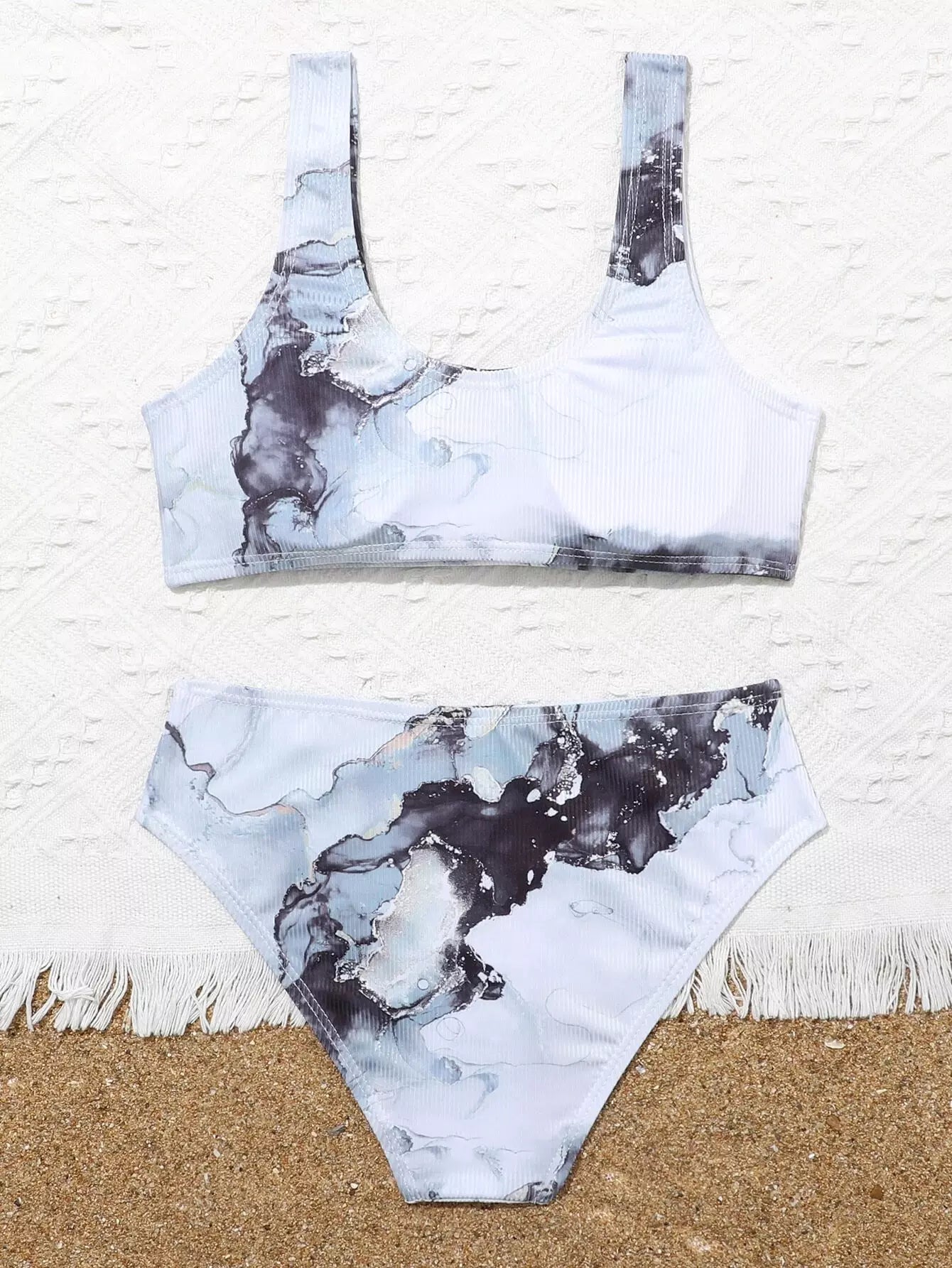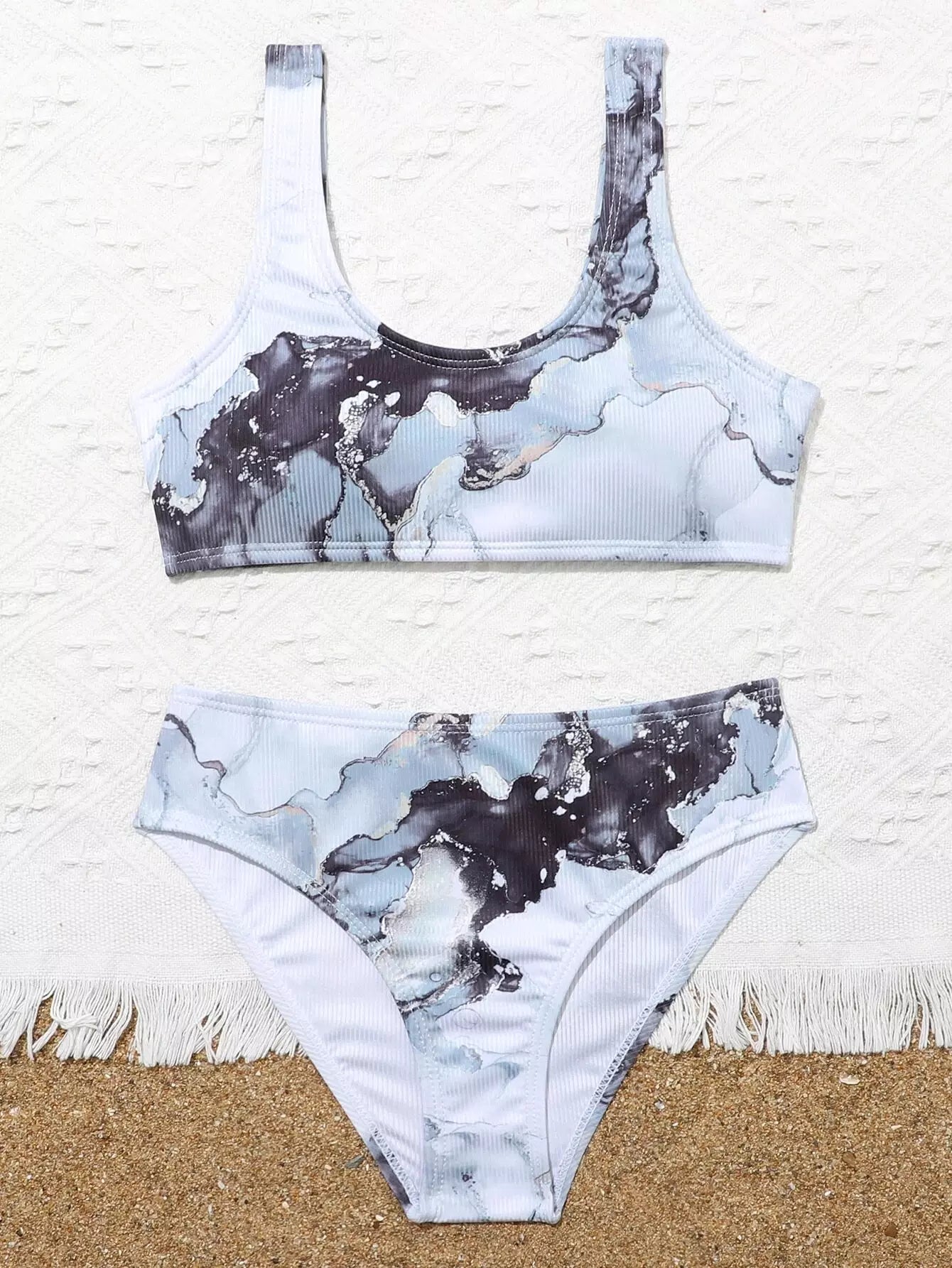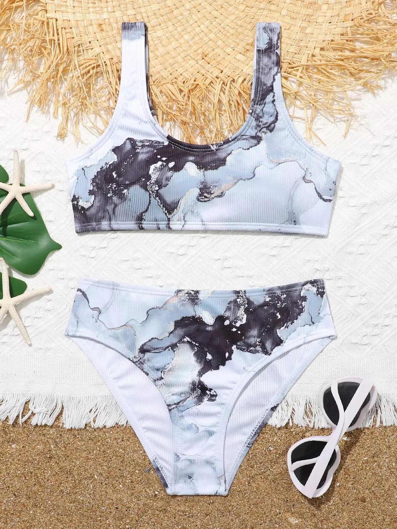 ملابس سباحة بيكيني بطبعة رخام للبنات