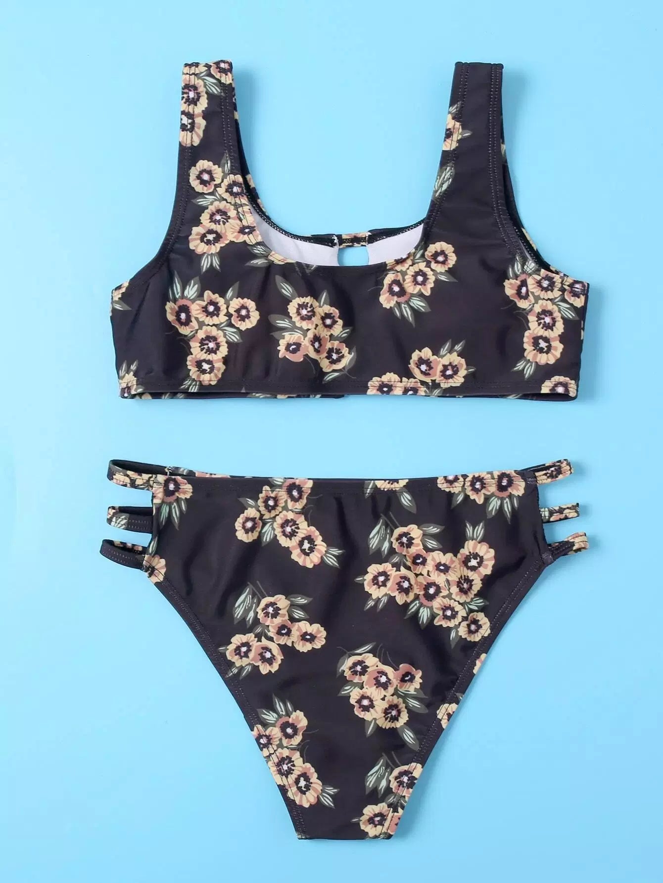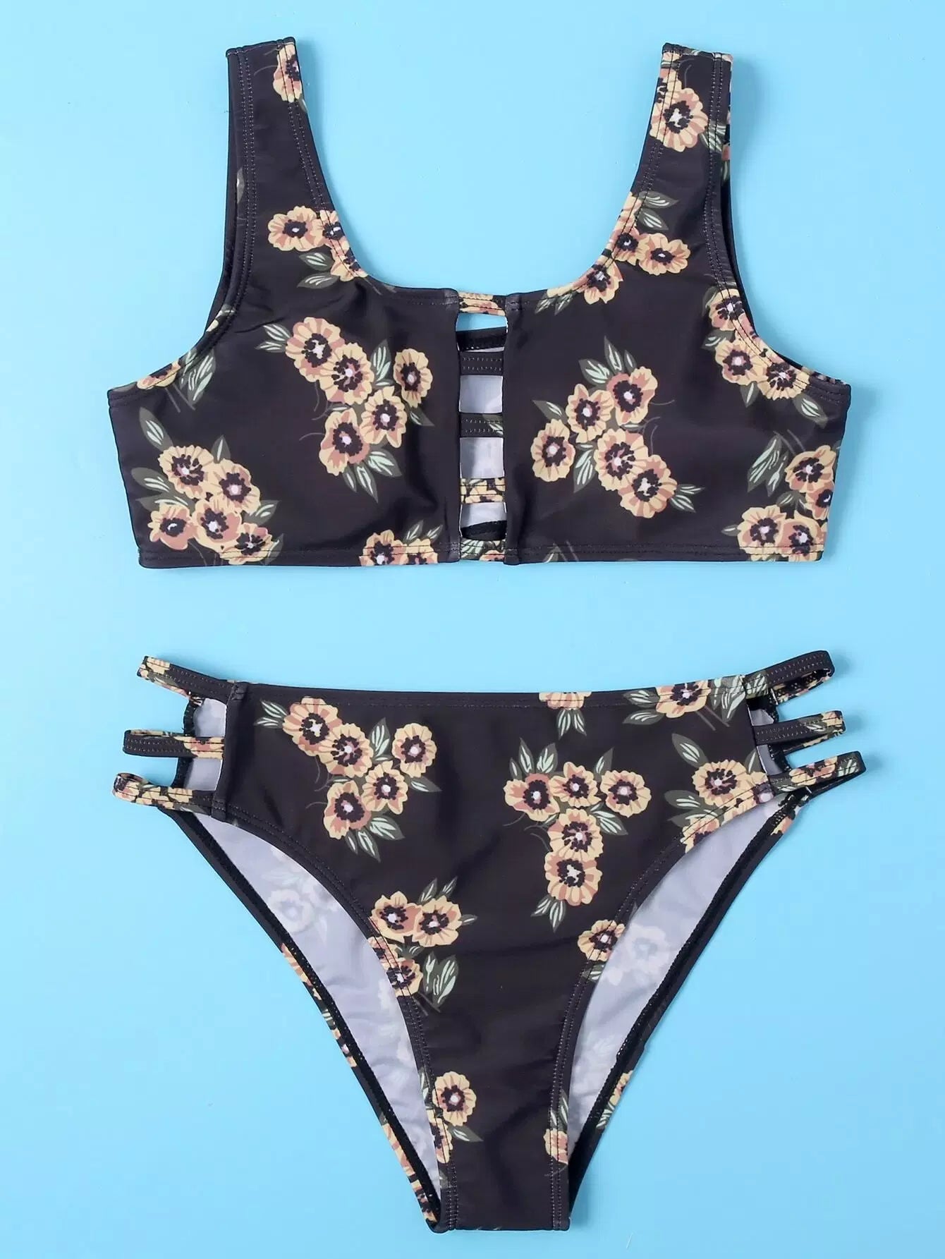 ملابس سباحة بيكيني بكيني بقصات زهور عشوائية للبنات