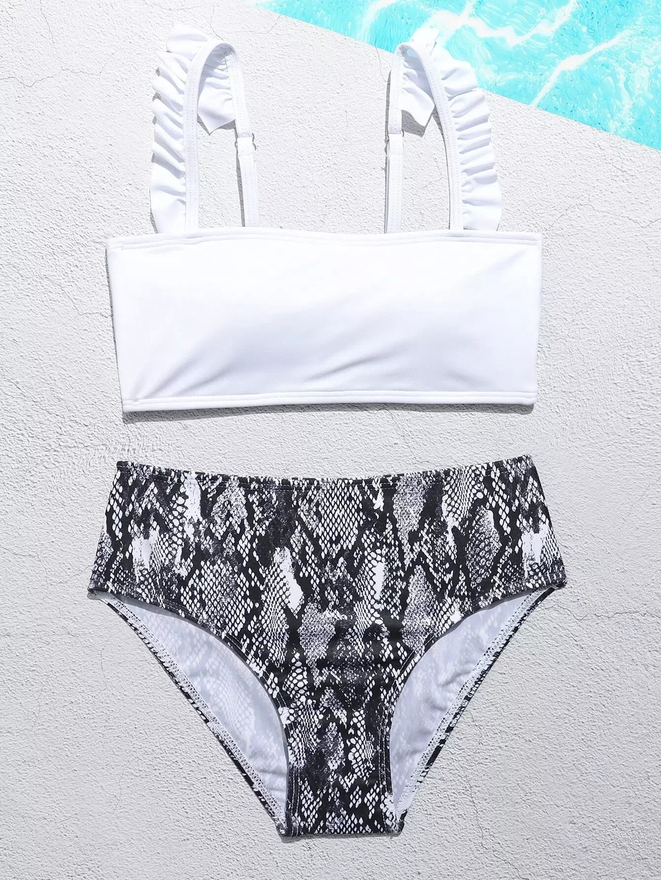 بيكيني سباحة بيكيني للبنات مزين بكشكش من جلد الثعبان