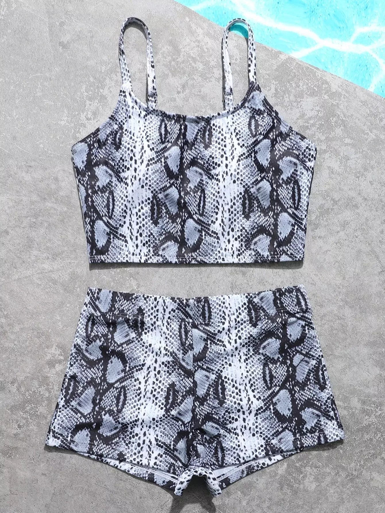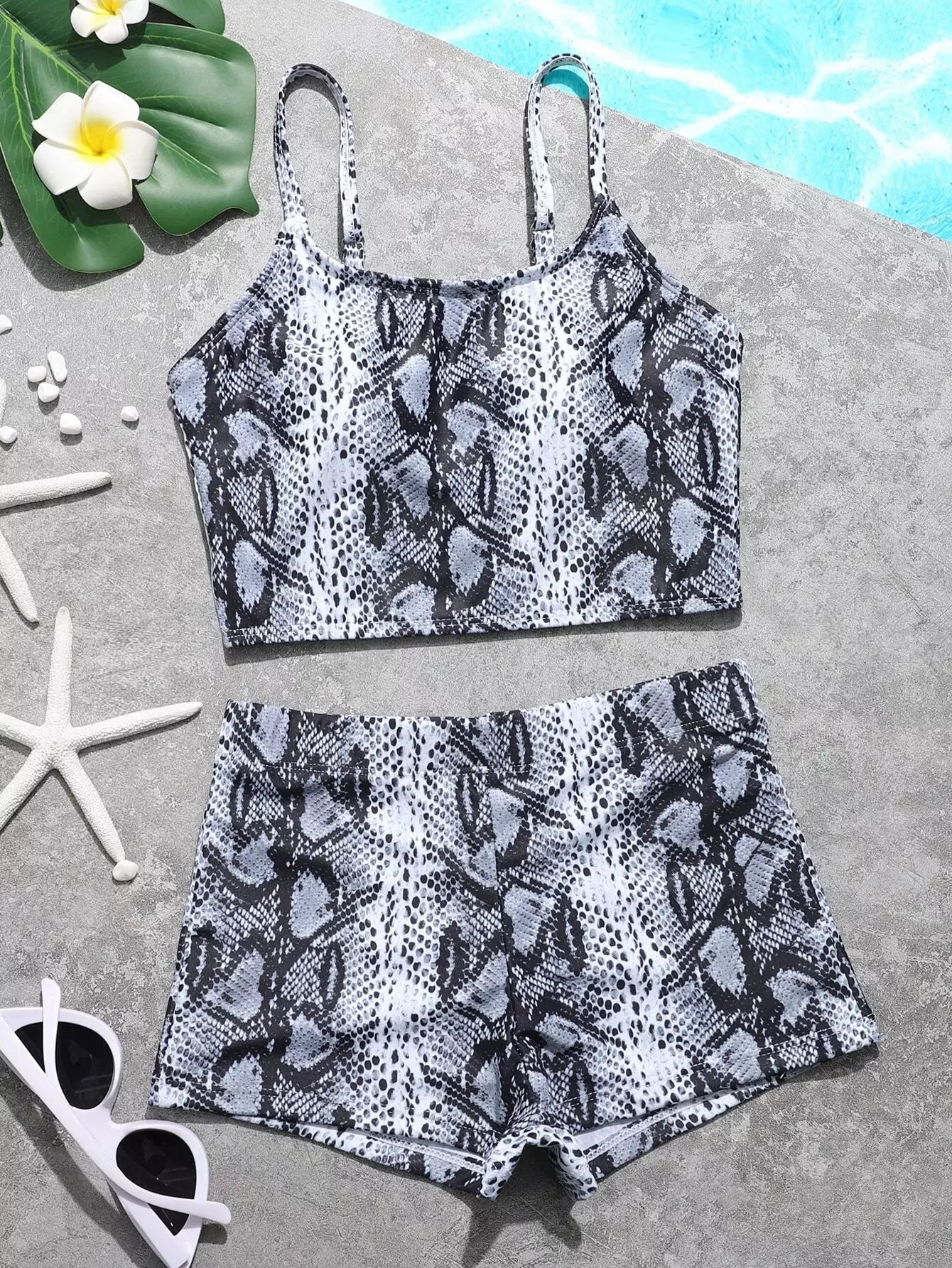 شورت سباحة بيكيني قصير بجلد الثعبان للبنات