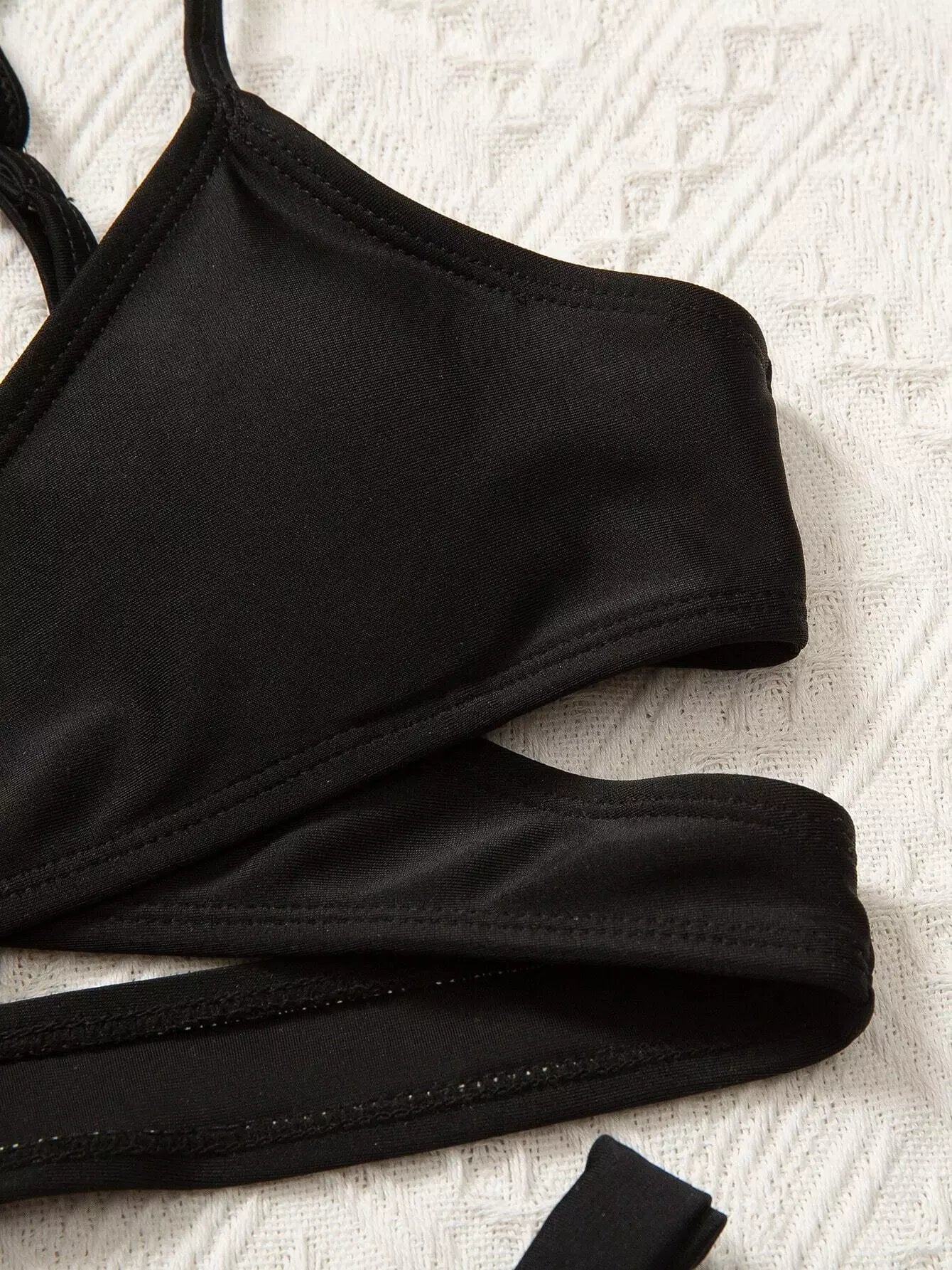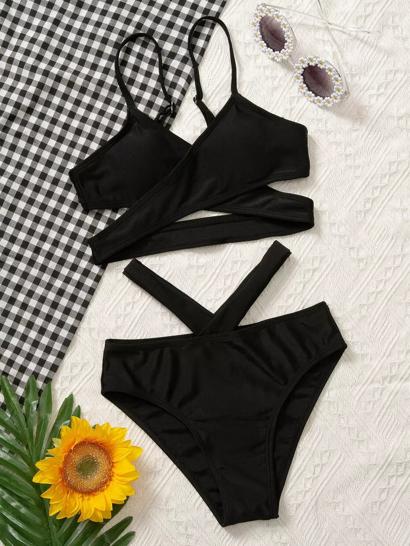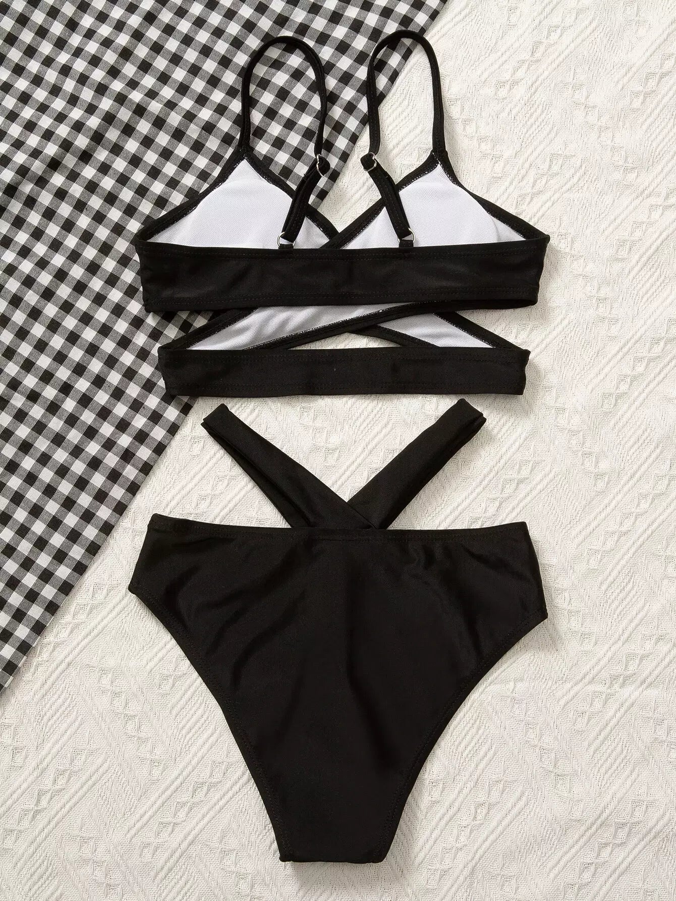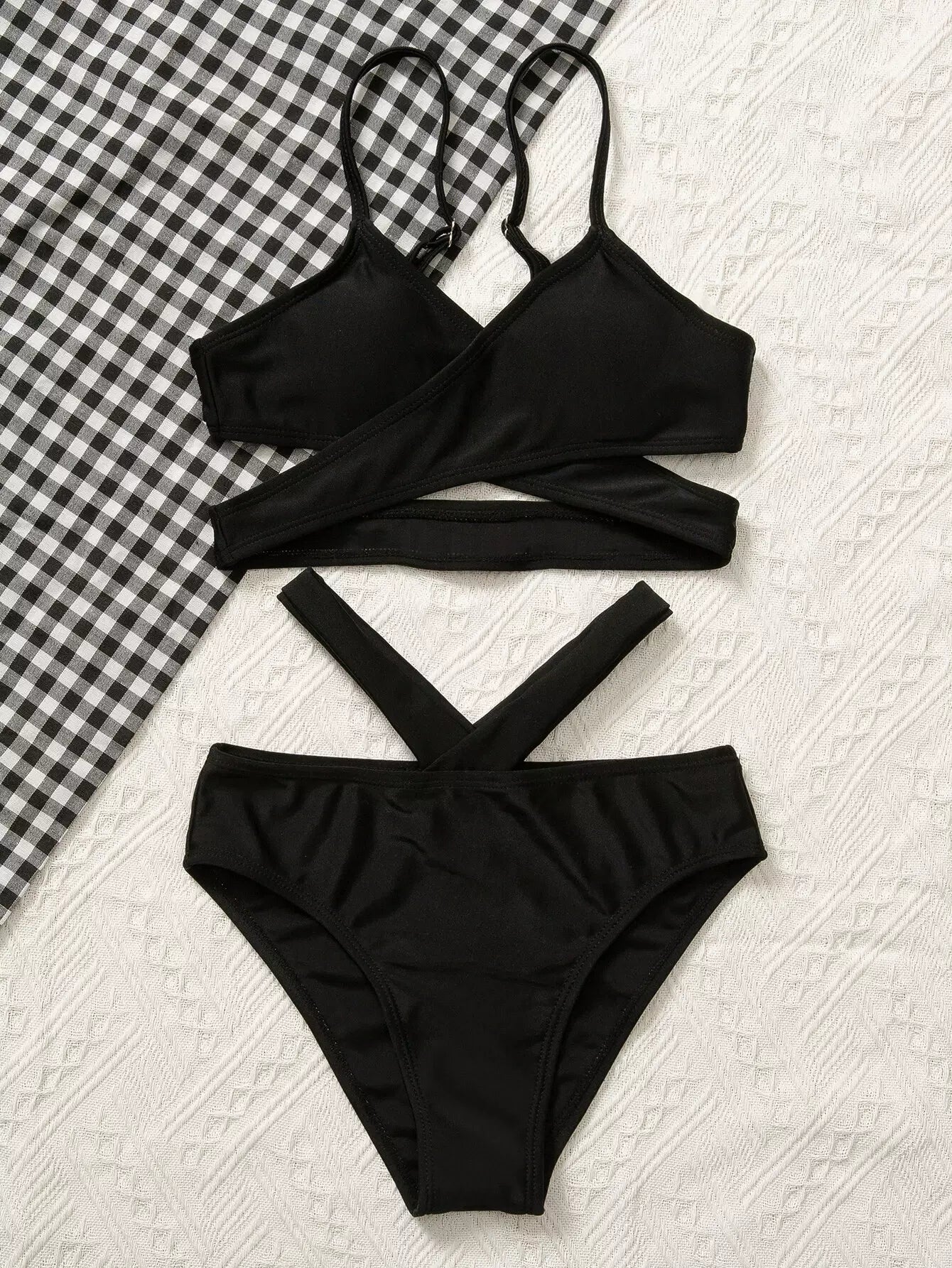 بدلة سباحة بيكيني سادة بقصات متقاطعة متقاطعة للبنات