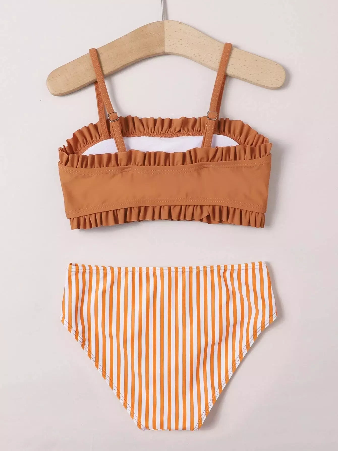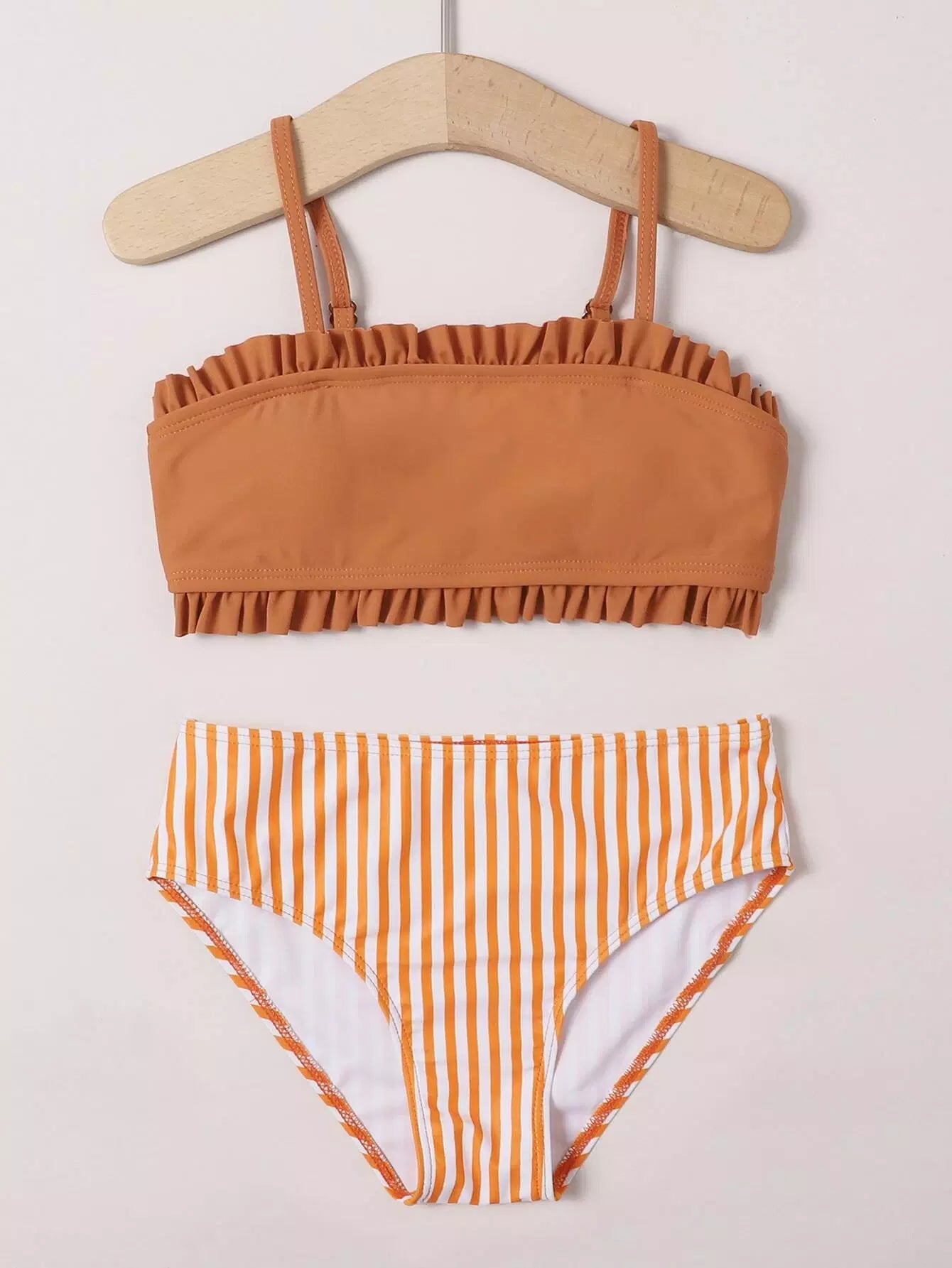ملابس سباحة بيكيني بكيني مخطط بحافة كشكش للبنات