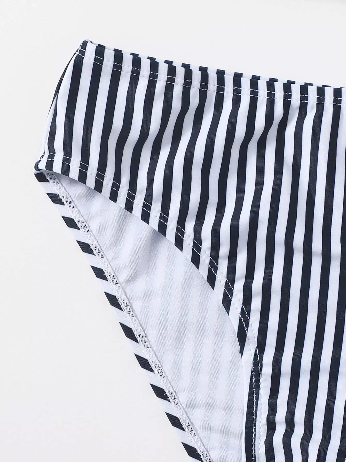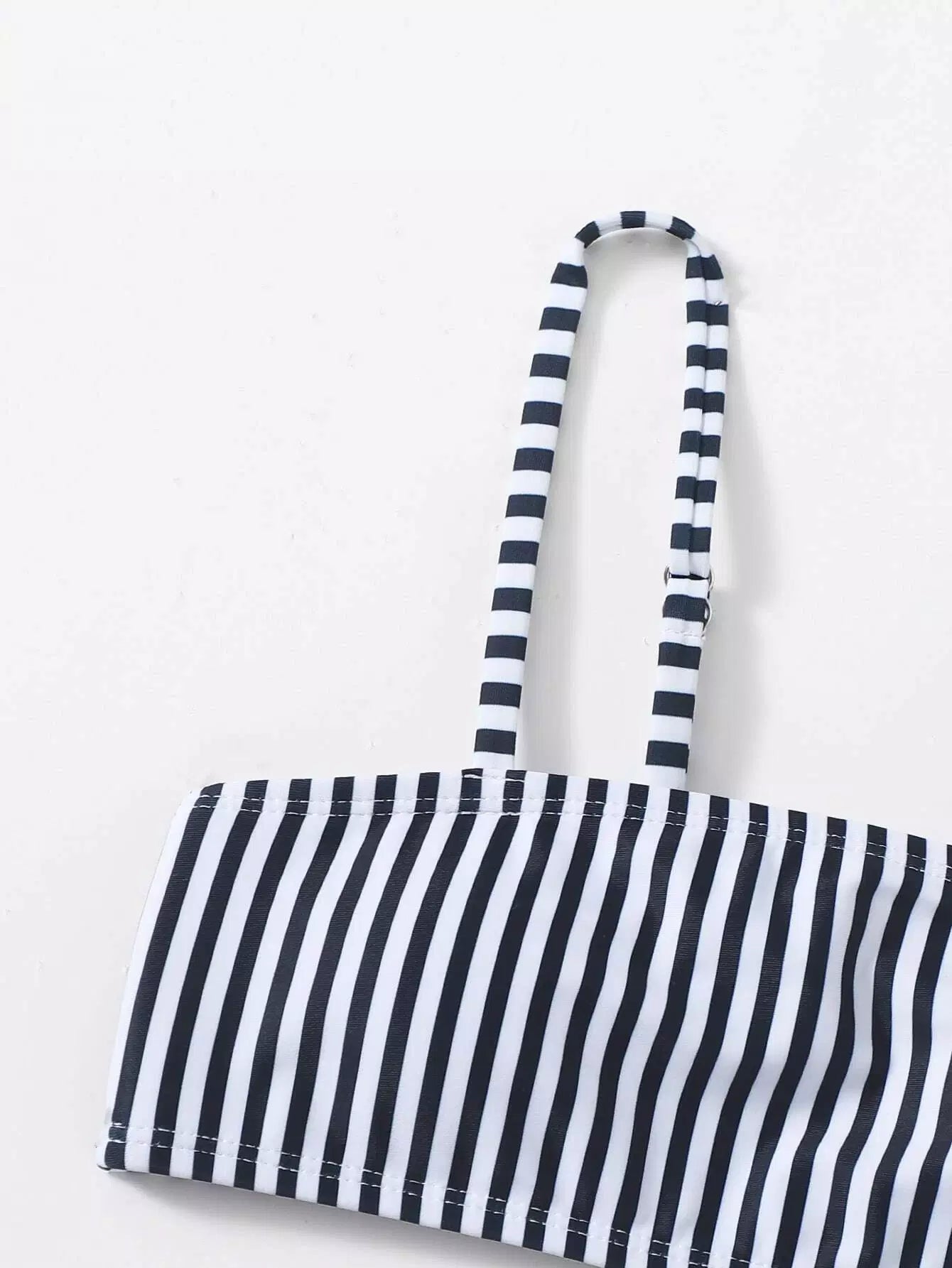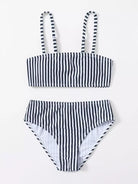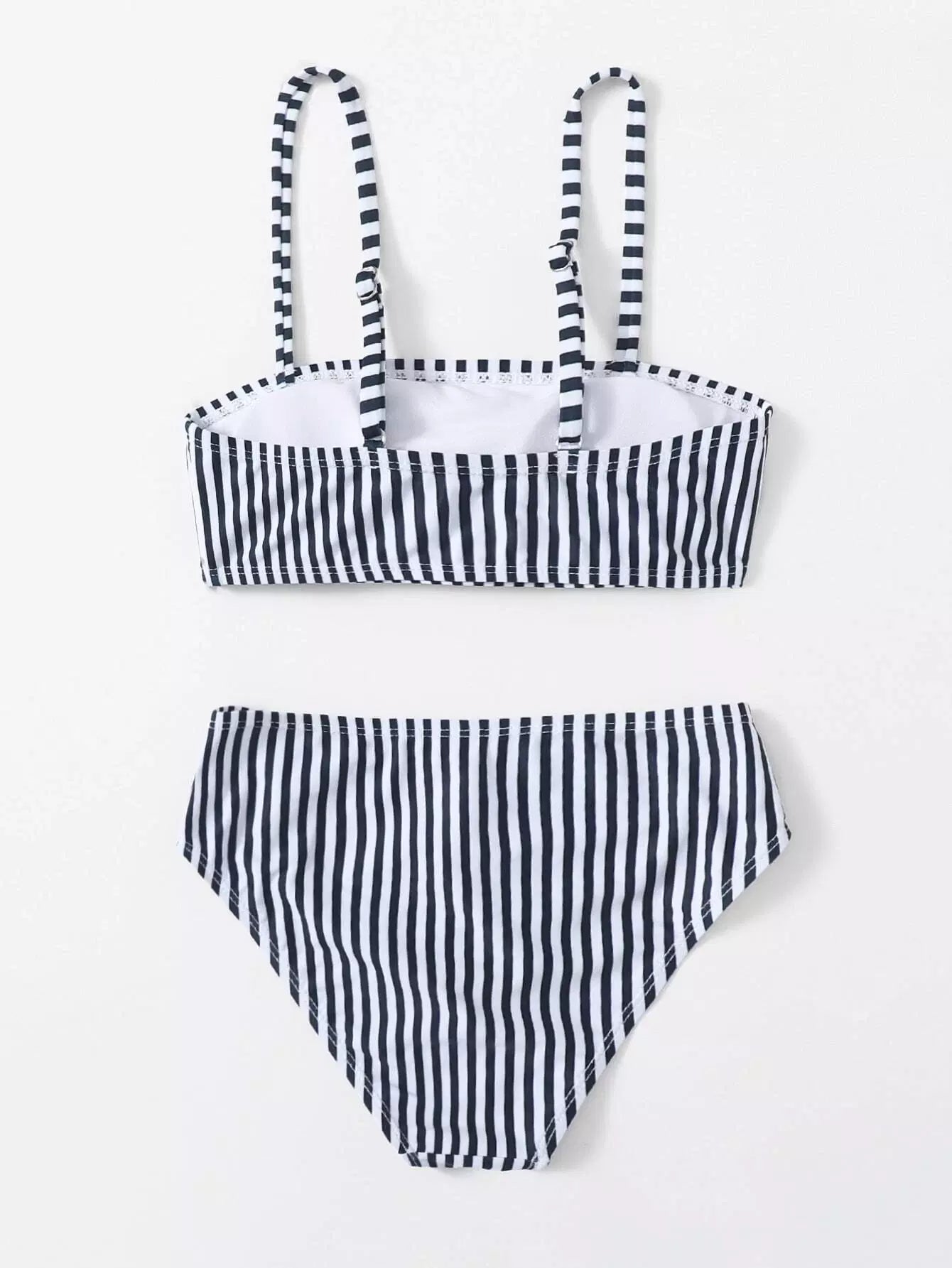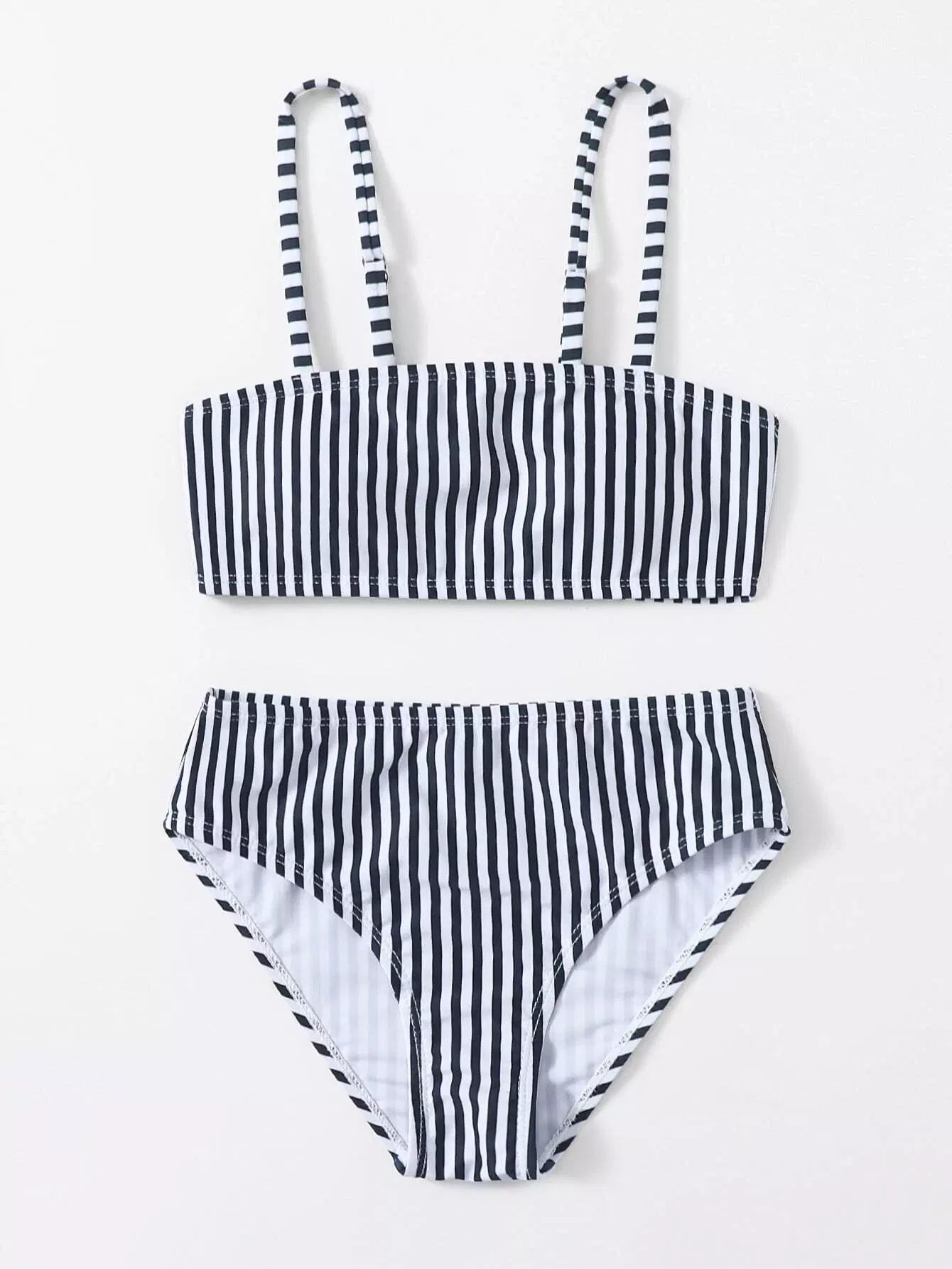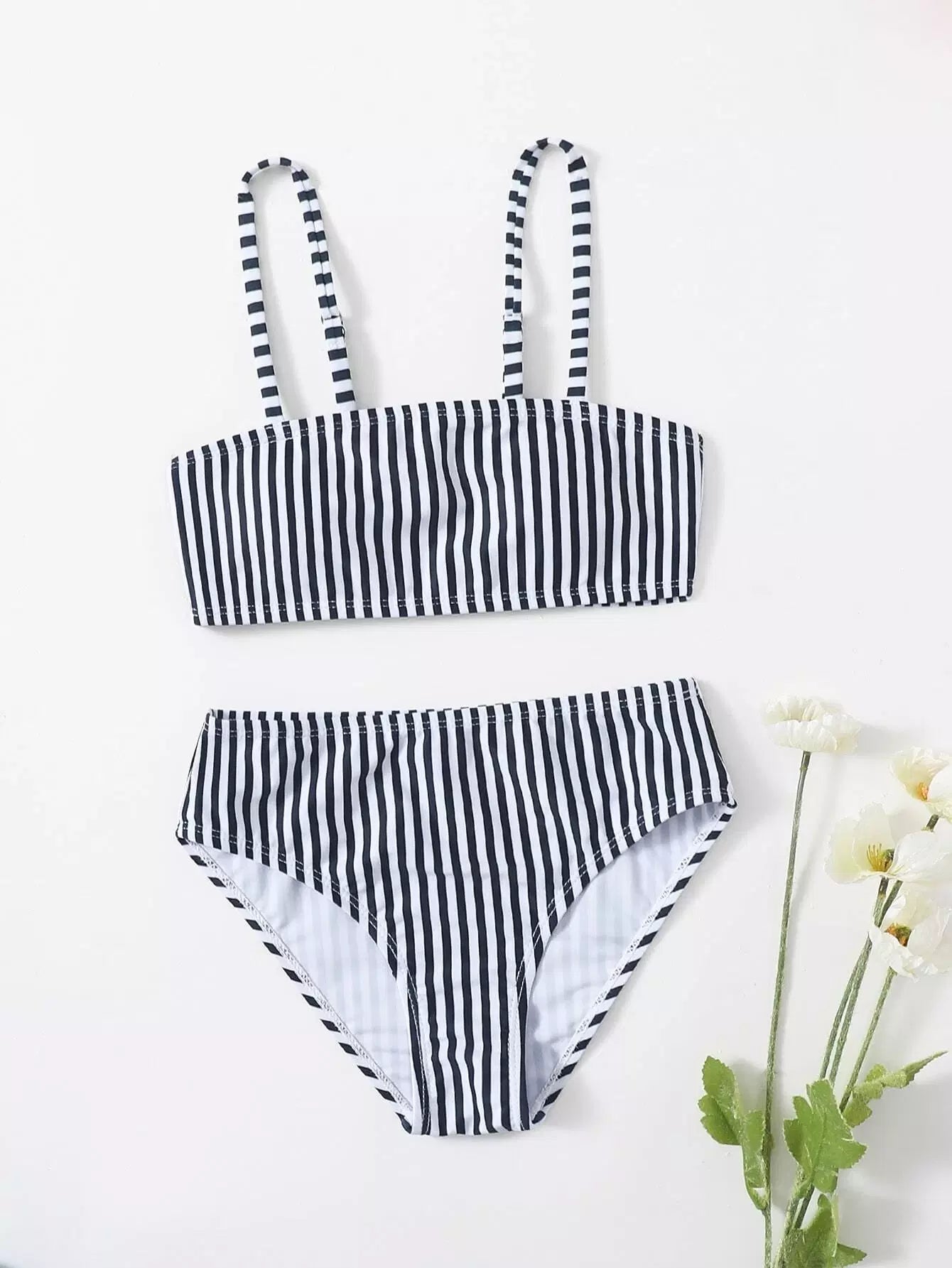 بدلة سباحة بيكيني مخططة عالية الخصر للبنات