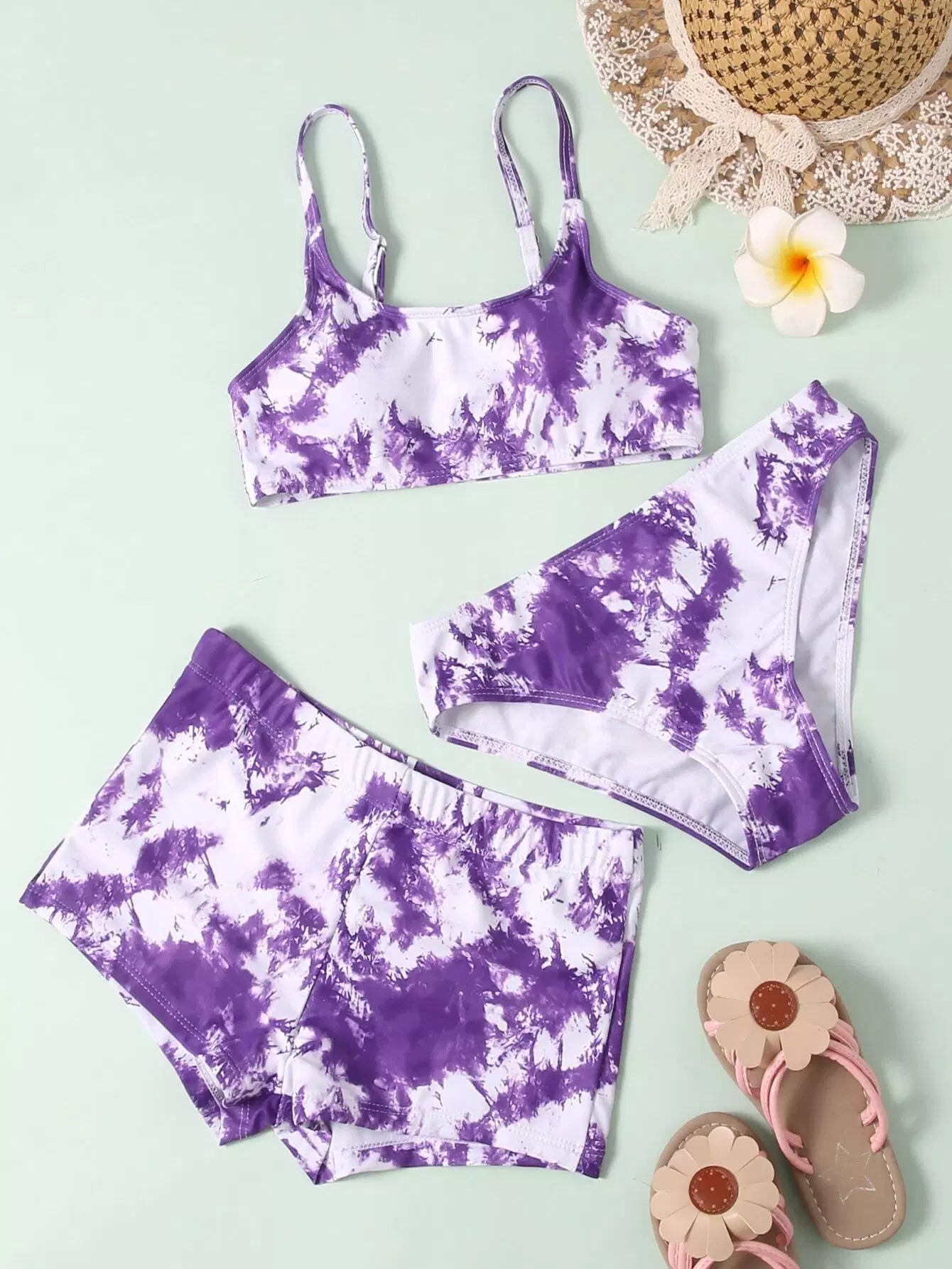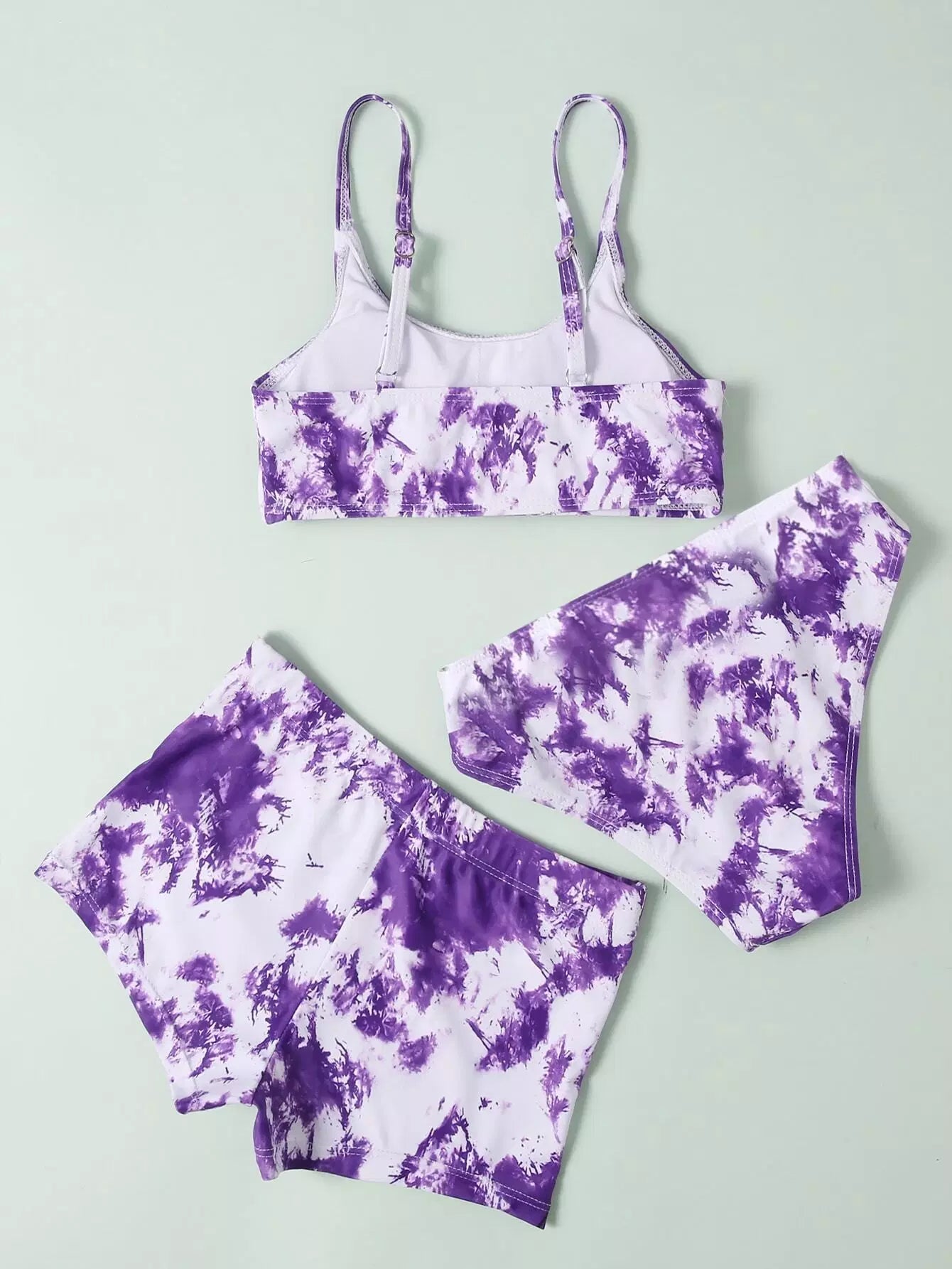 شورت سباحة بيكيني قصير مصبوغ بربطة عنق للبنات