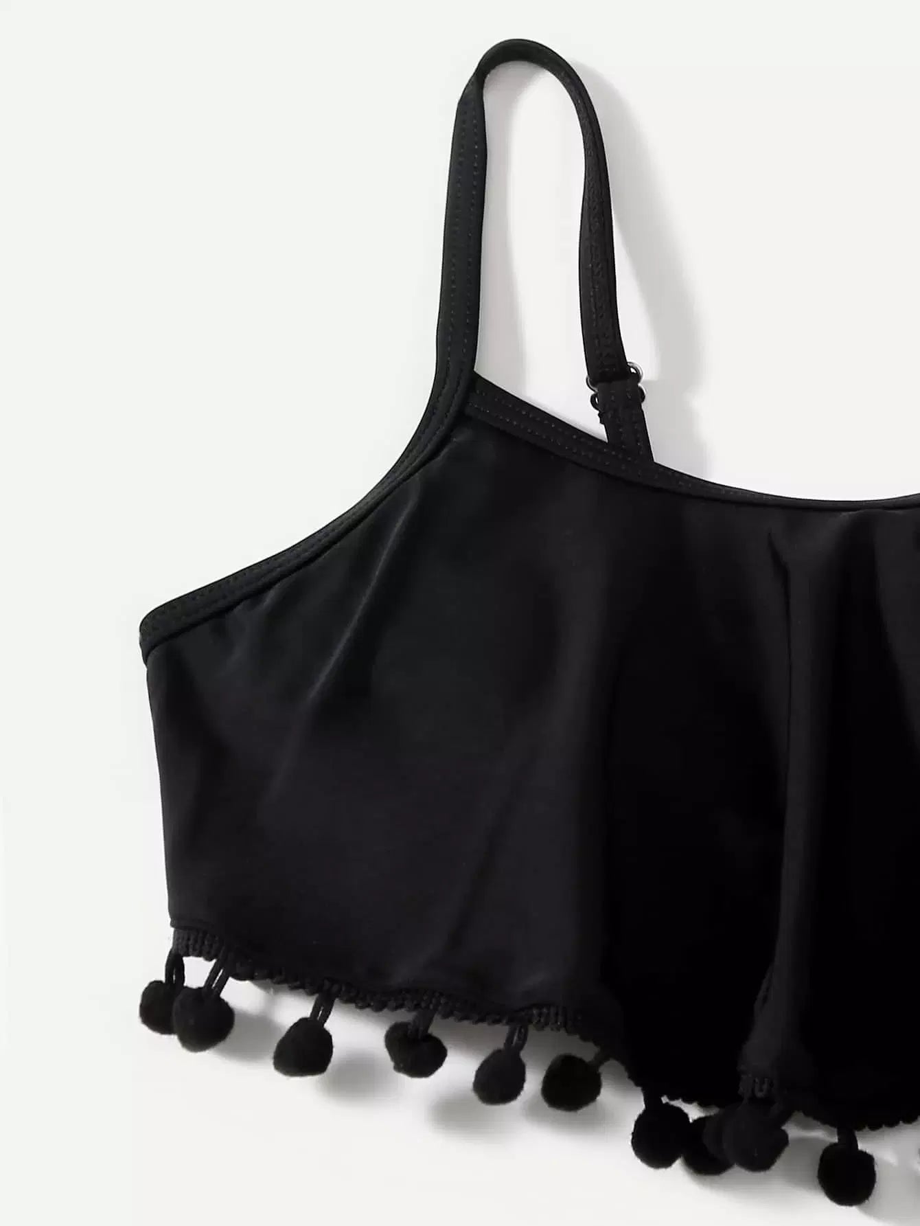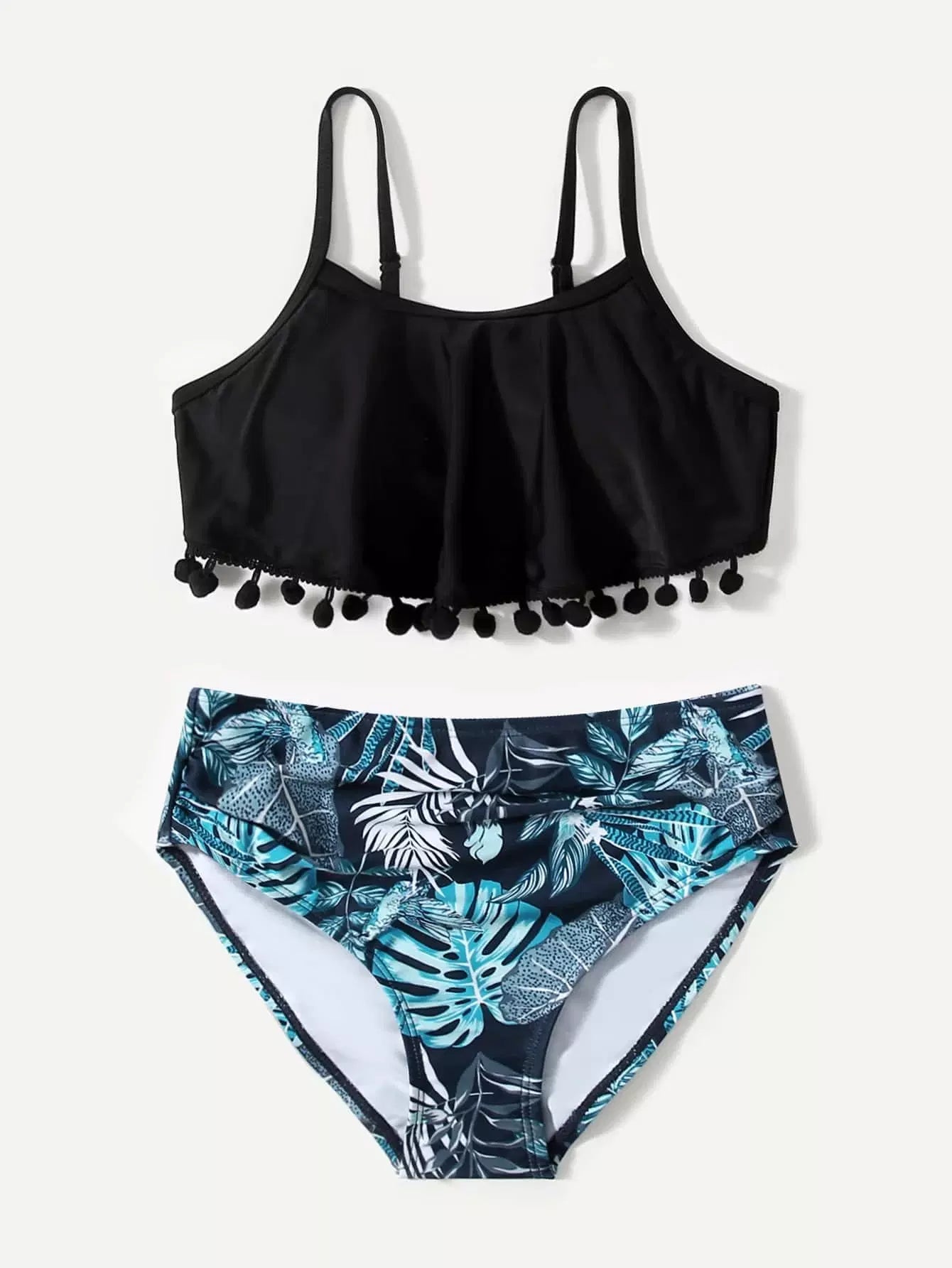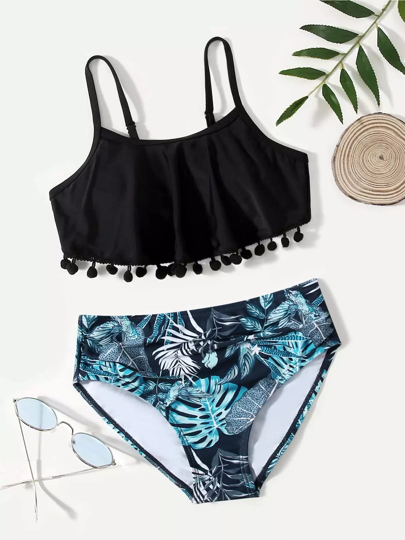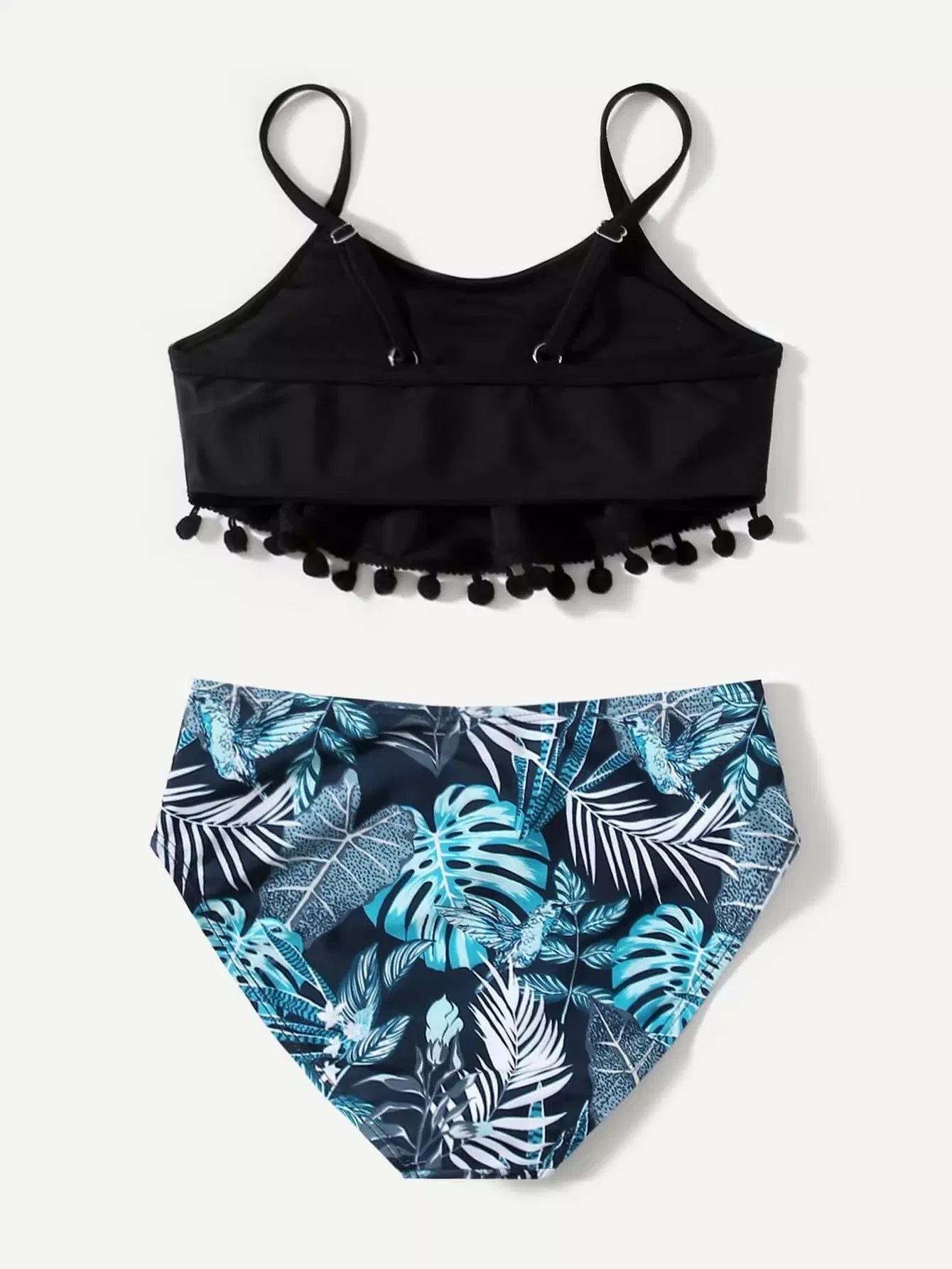 بدلة سباحة بيكيني السباحة الاستوائية المزينة ببوم بوم بوم الاستوائية للبنات