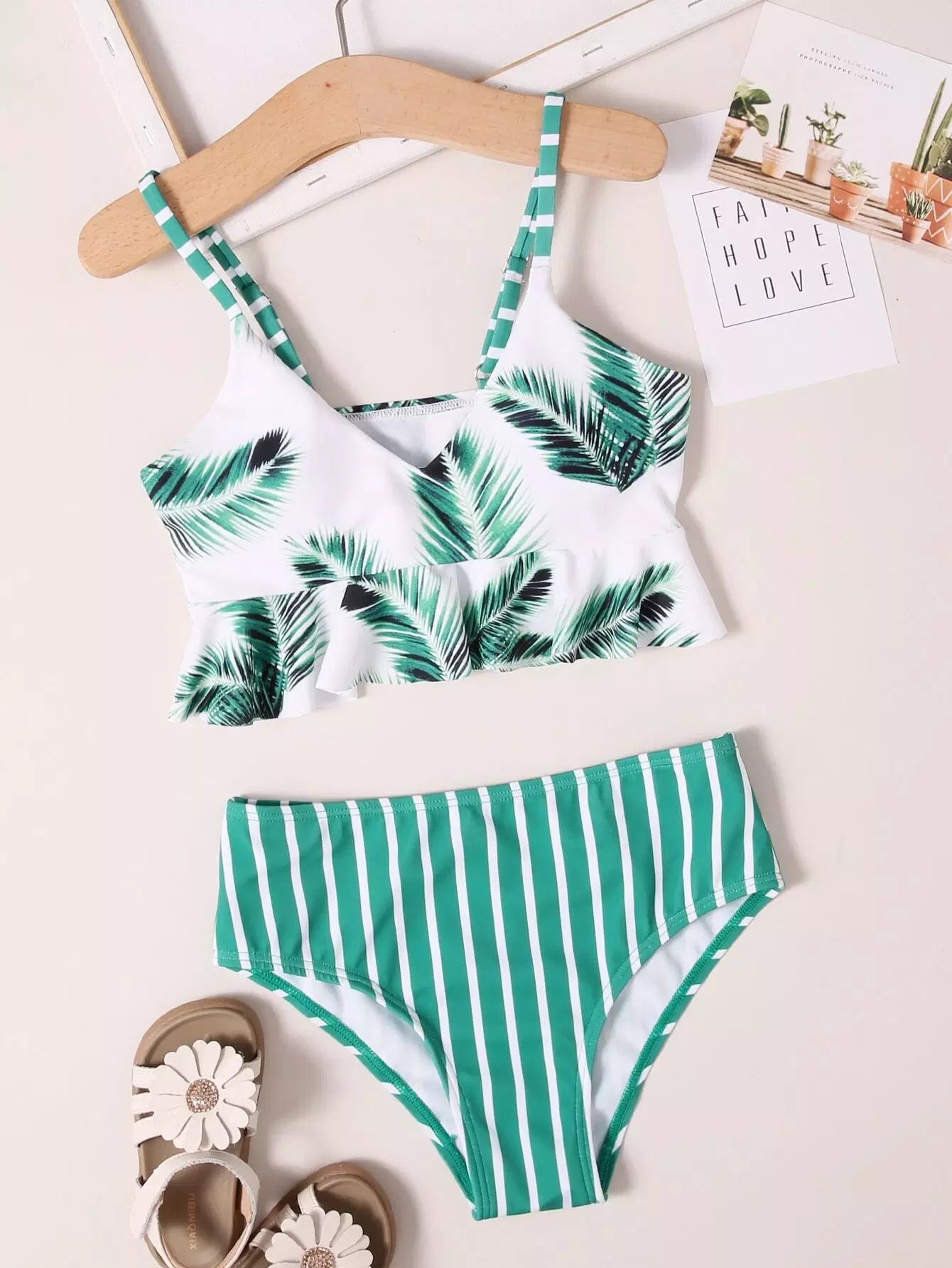 ملابس سباحة بيكيني بكيني استوائي ومخطط للبنات