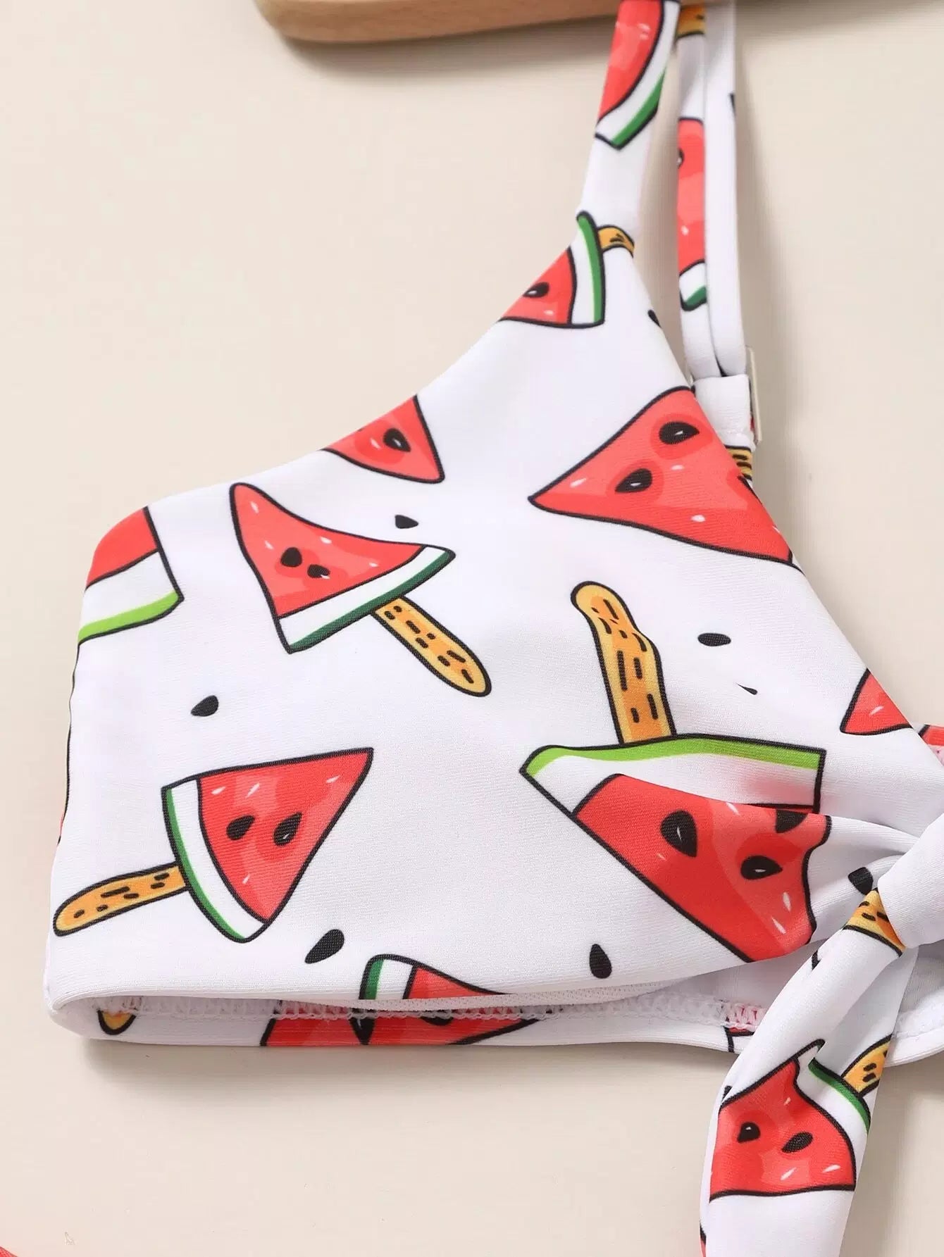 الأطفال - بدلة سباحة بكيني بعقدة أمامية للبنات بطبعة البطيخ