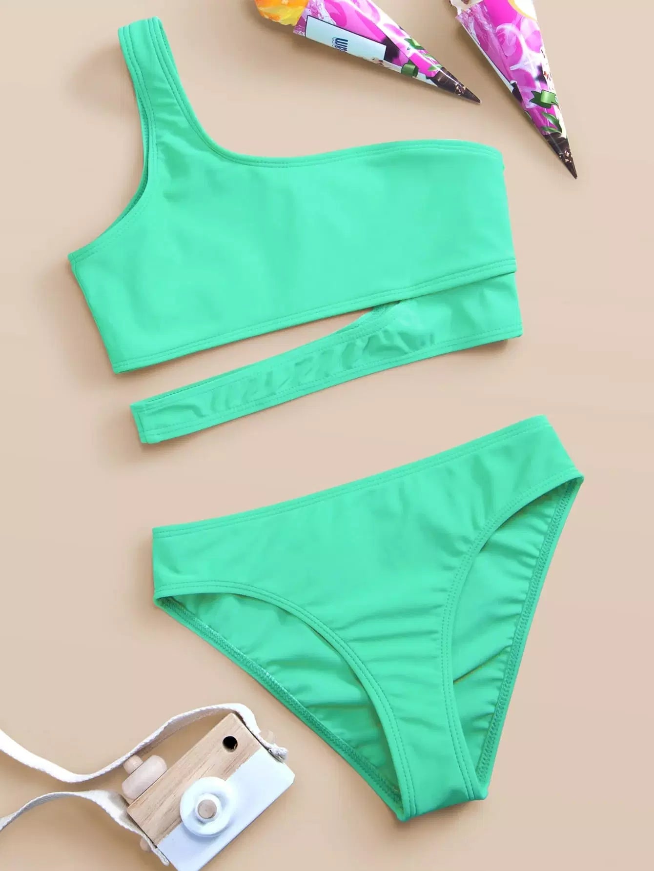 ملابس سباحة بيكيني بكتف واحد مكشوف للبنات