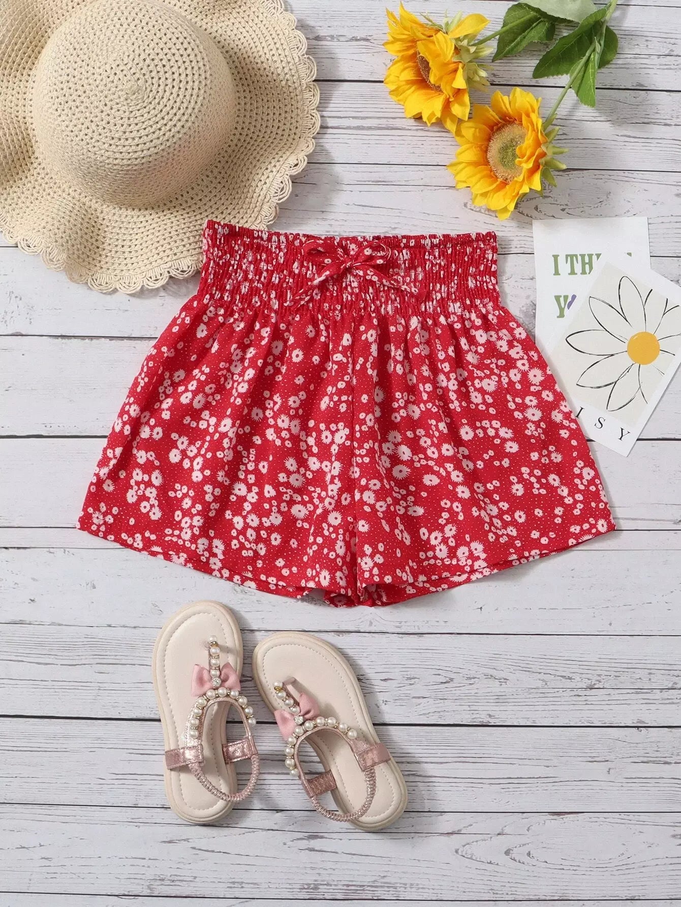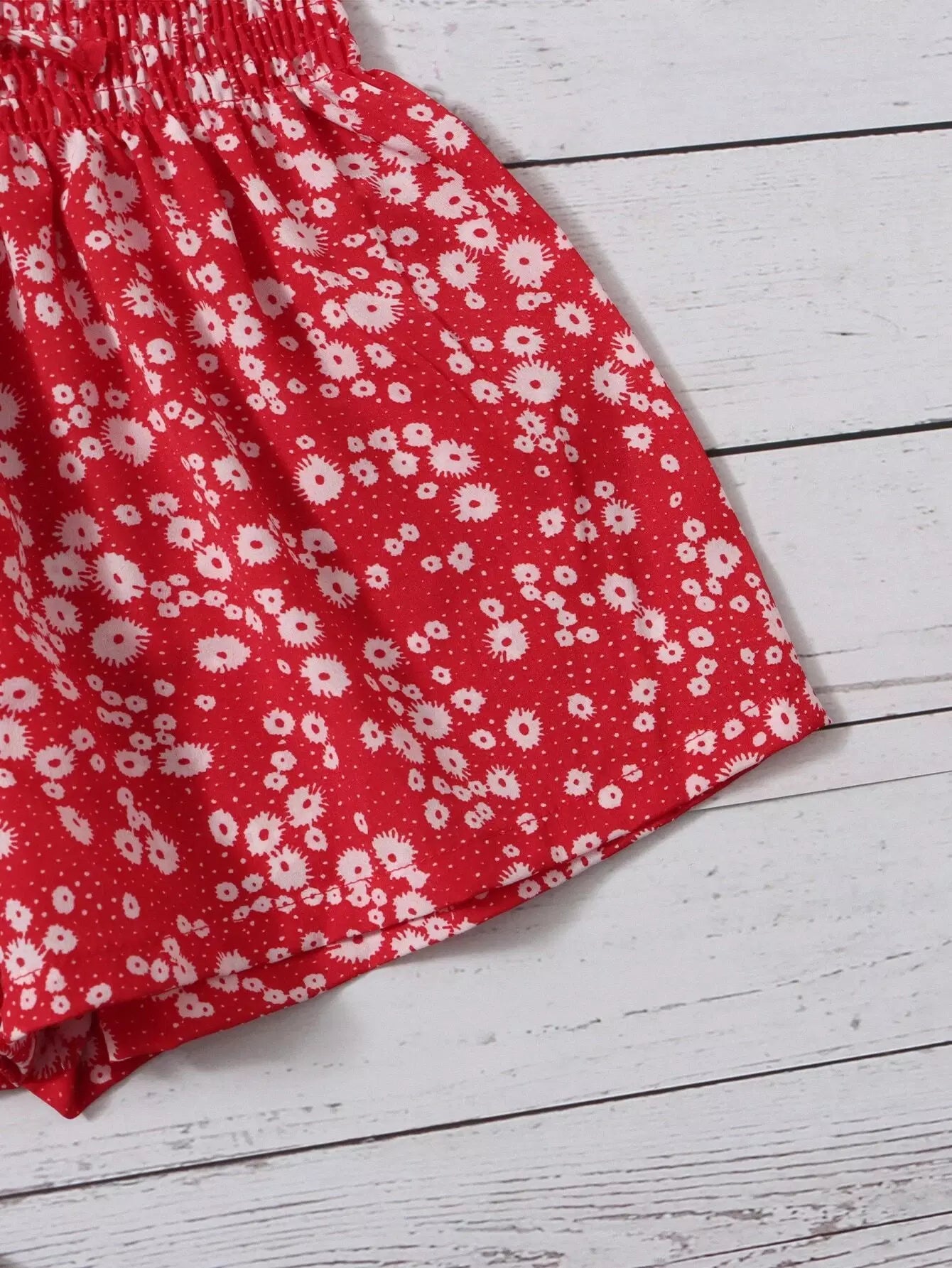 شورت بخصر كيس ورقي مزين بالورود للبنات