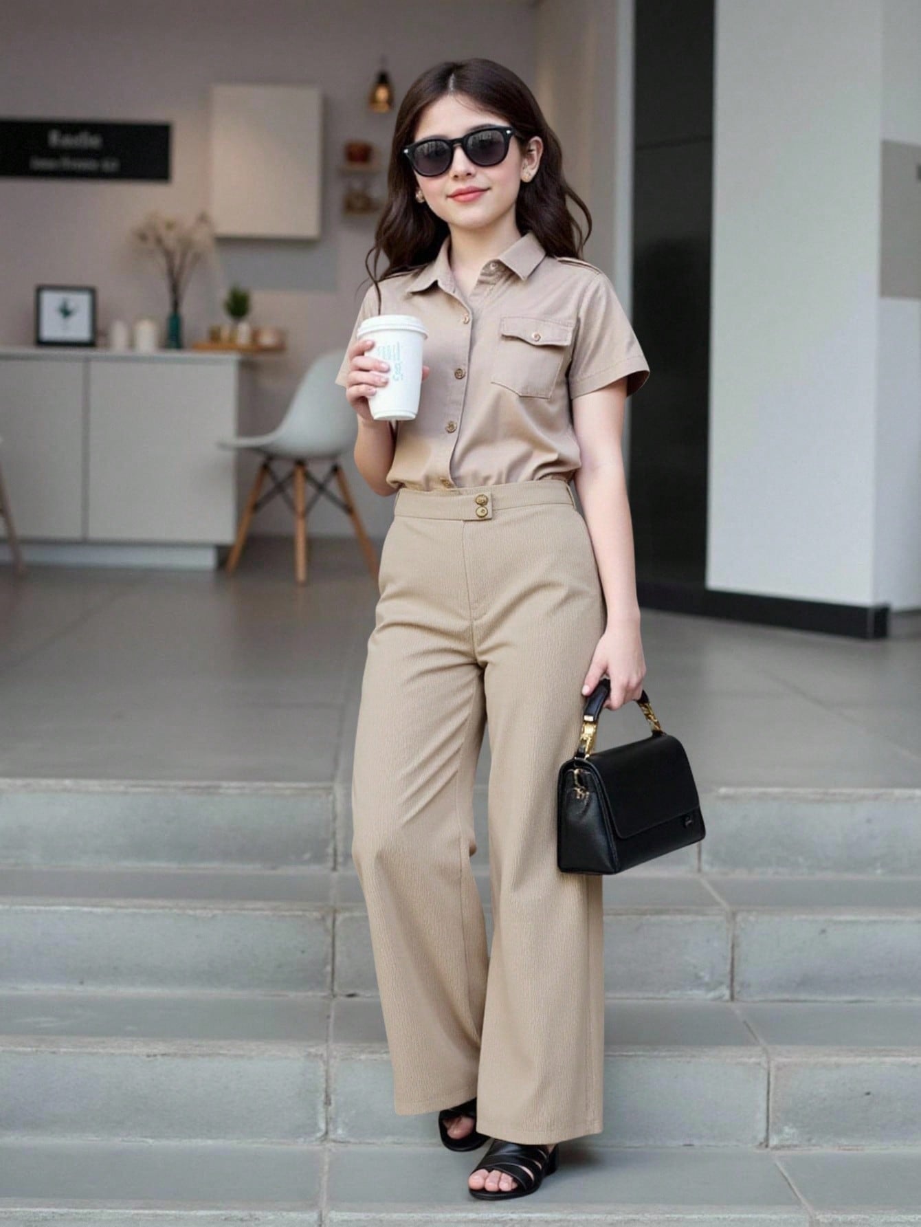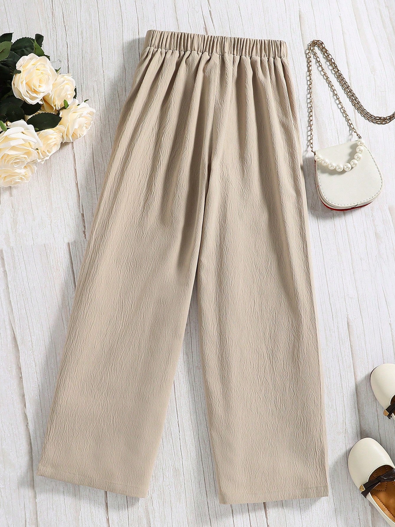 بنطلون واسع الساقين مزين بأزرار للبنات المراهقات