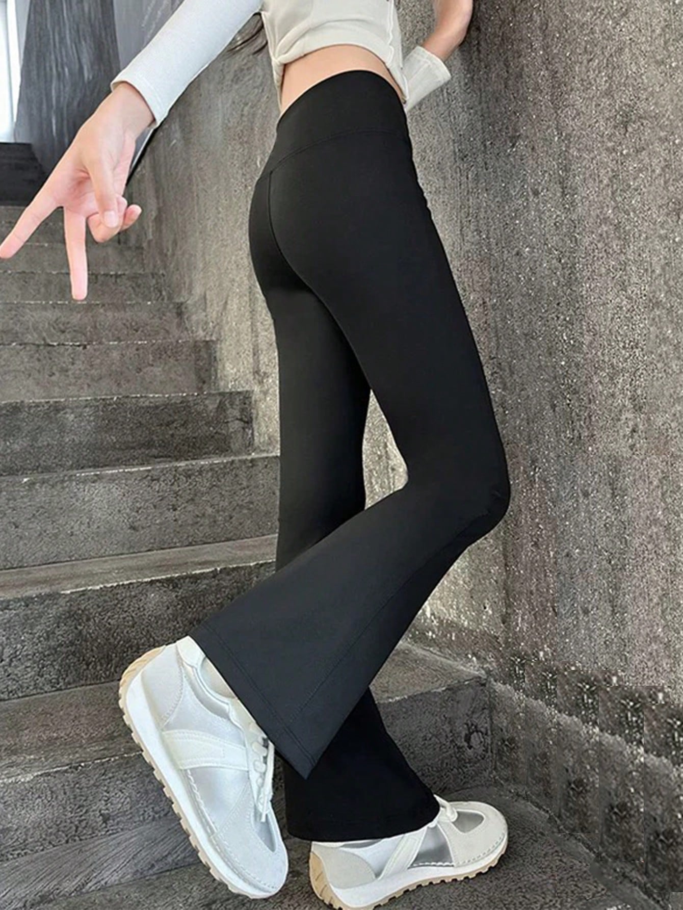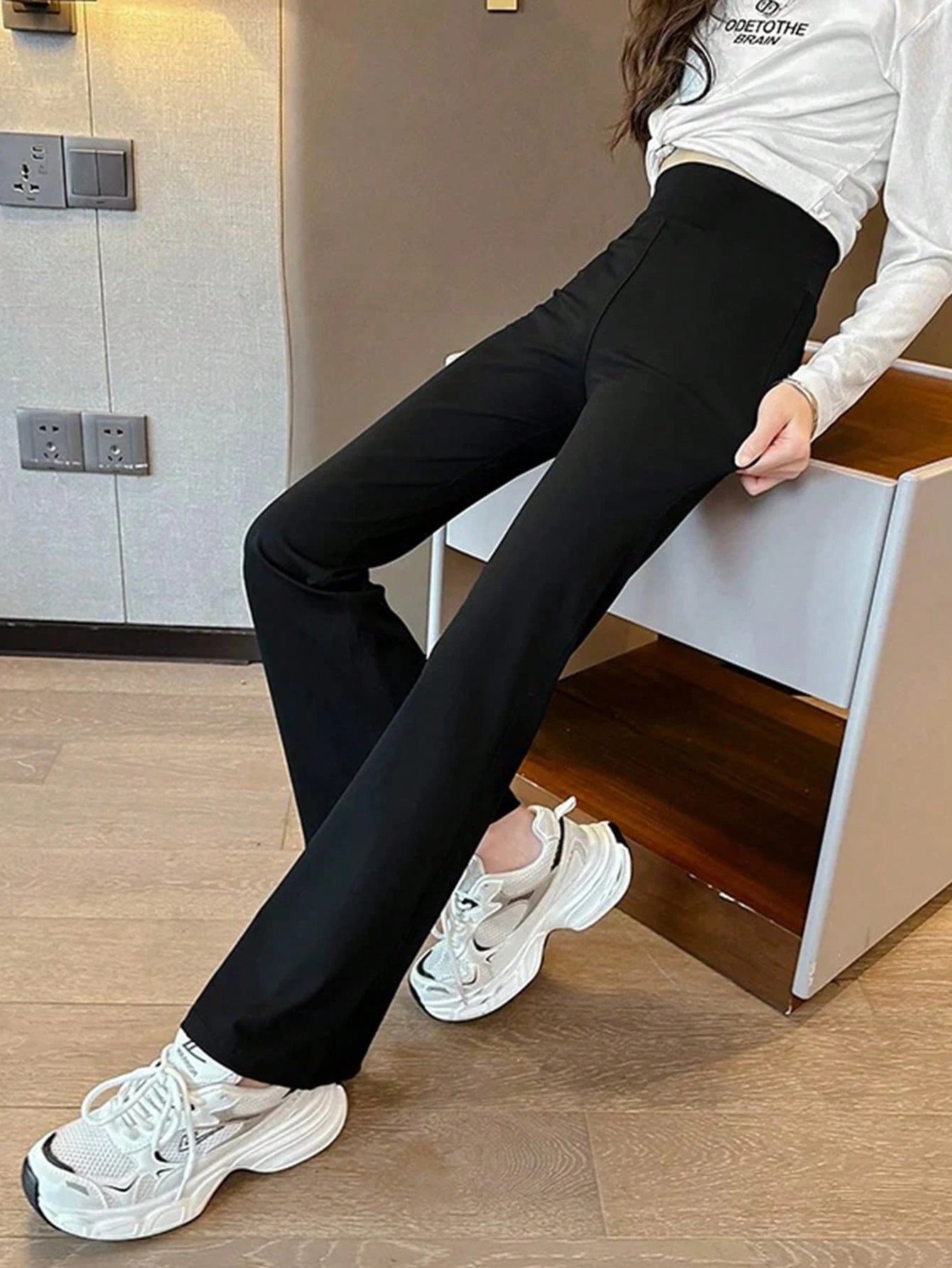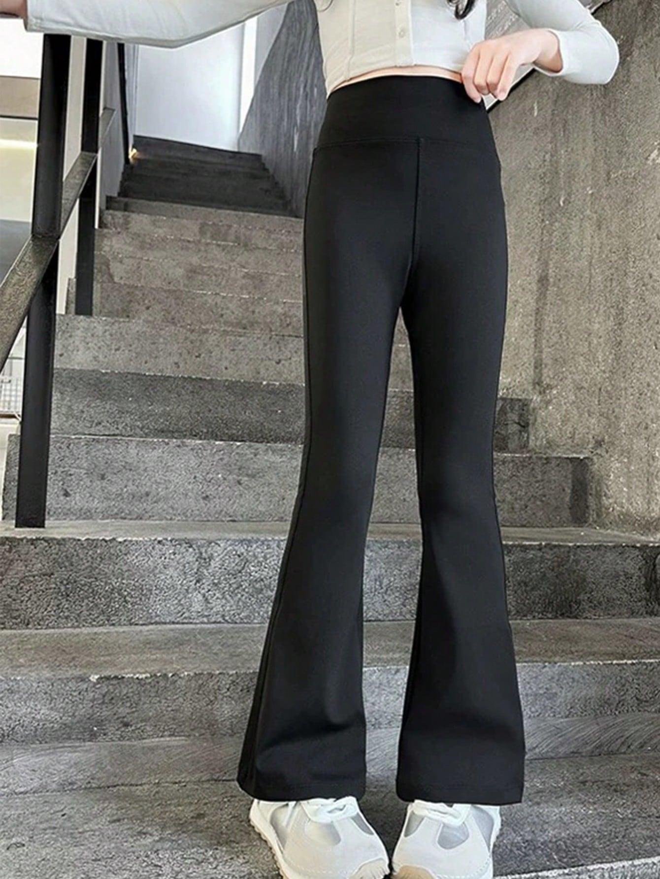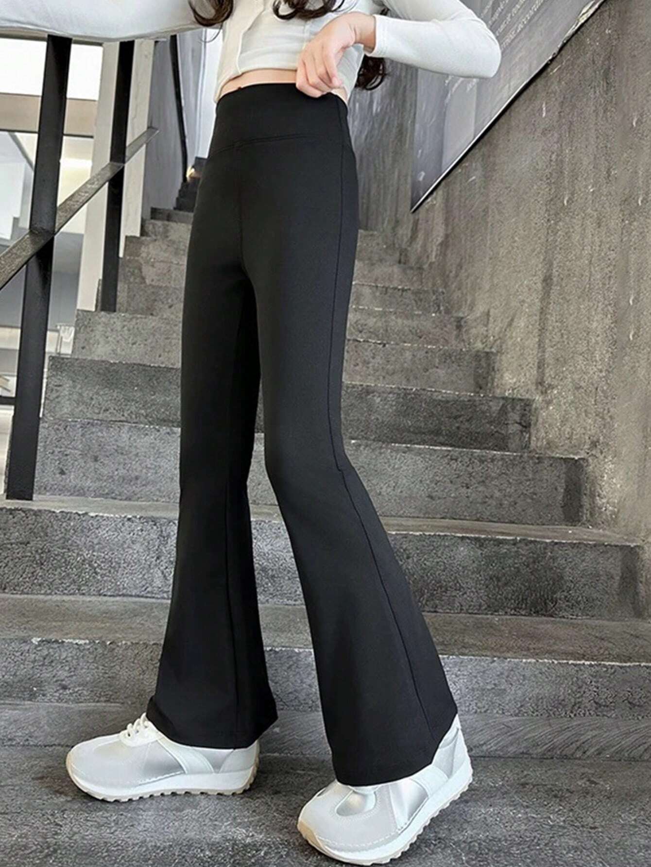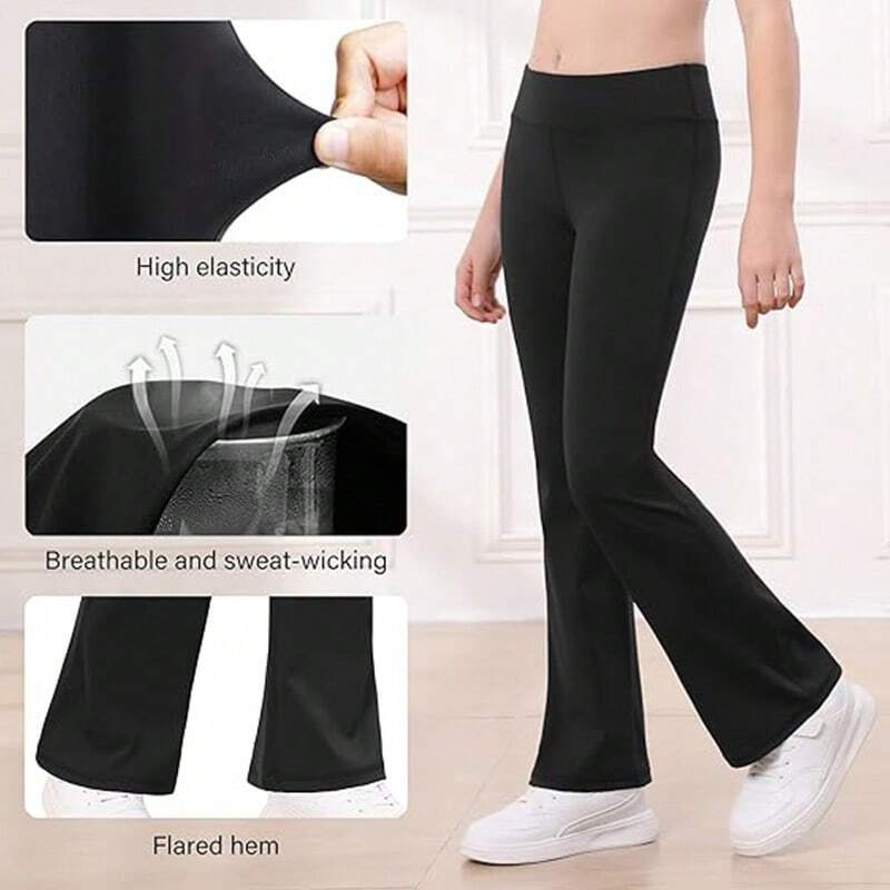Tween Girl Slim Fit Flare Pants, Black, Spring Autumn, Suitable For School Students