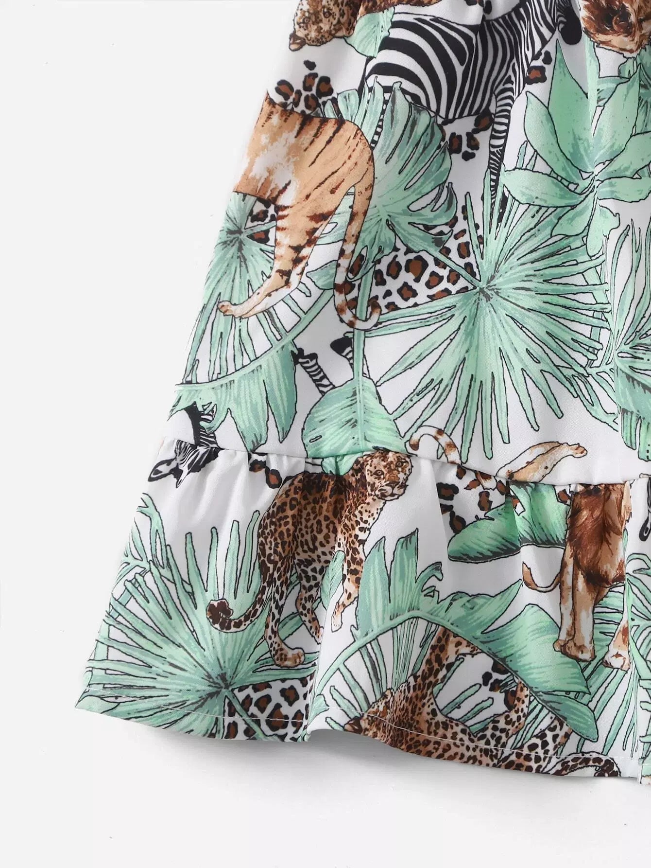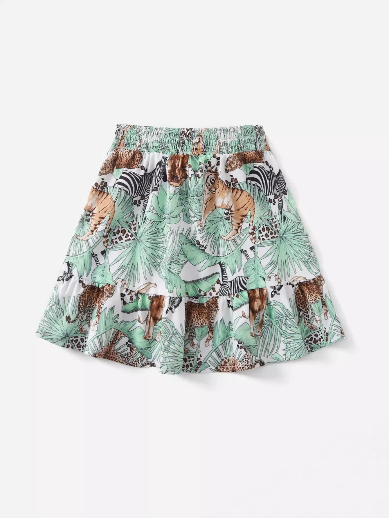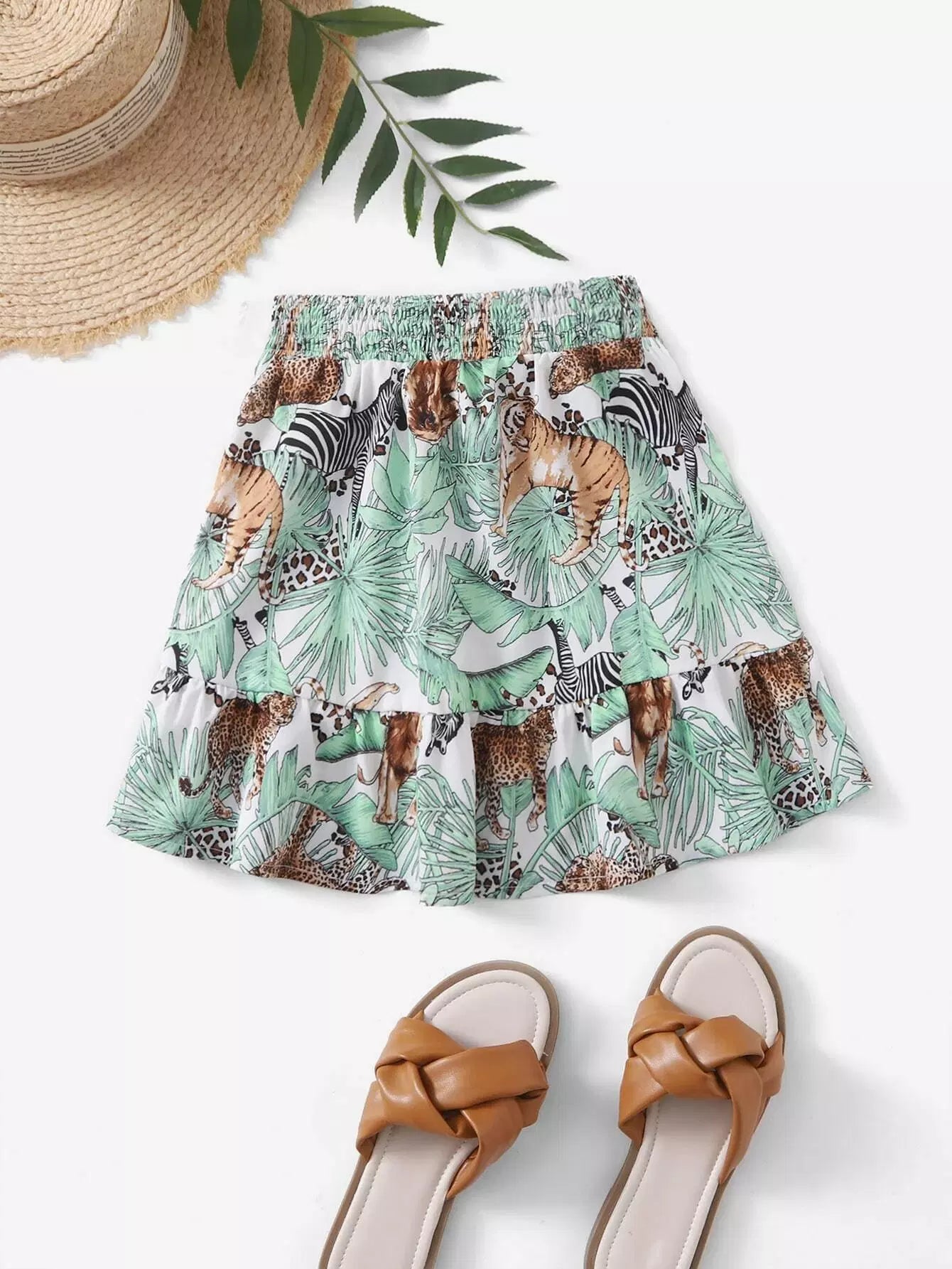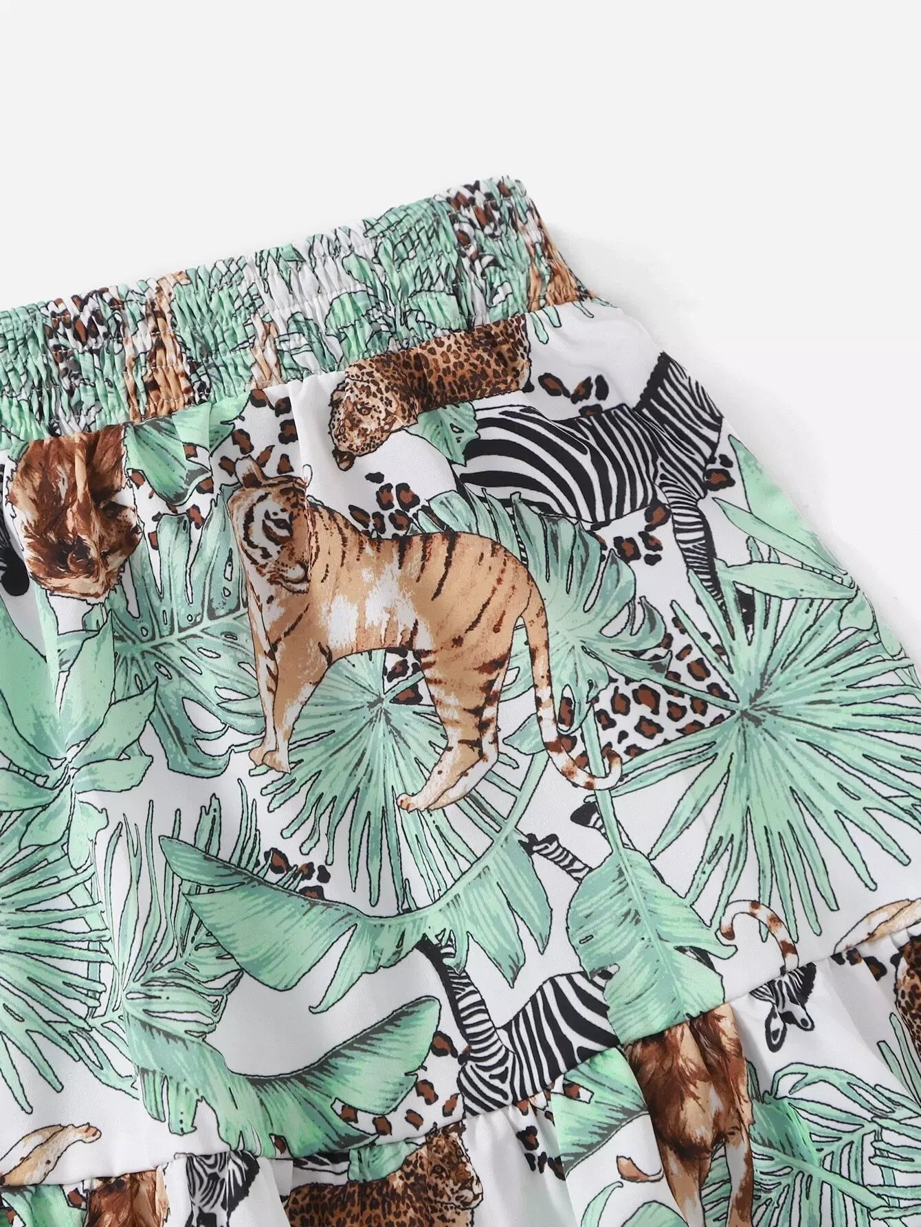 تنورة بنات بطبعة حيوانات وتنورة بطبعة حيوانات وطبعة استوائية بحافة منفوشة