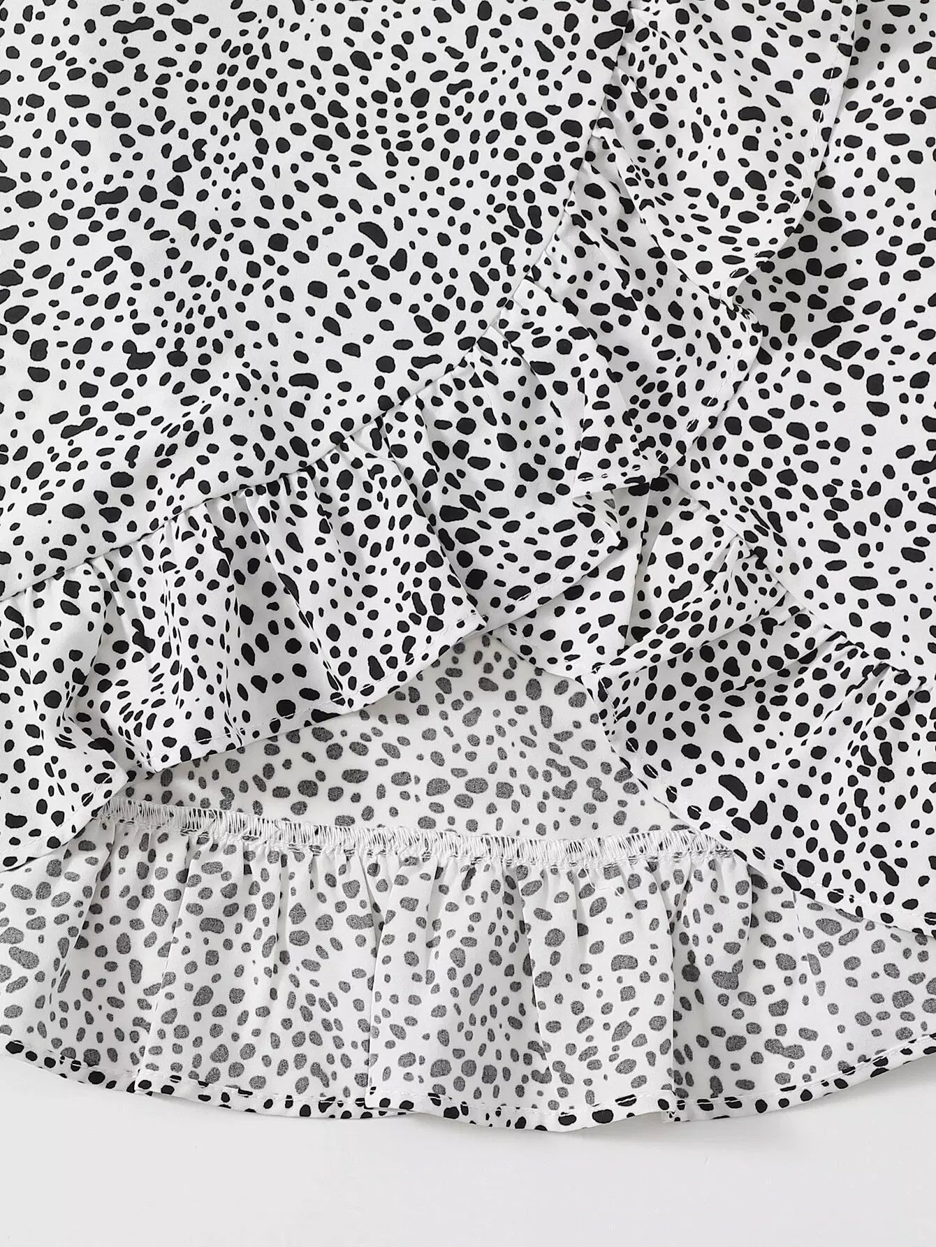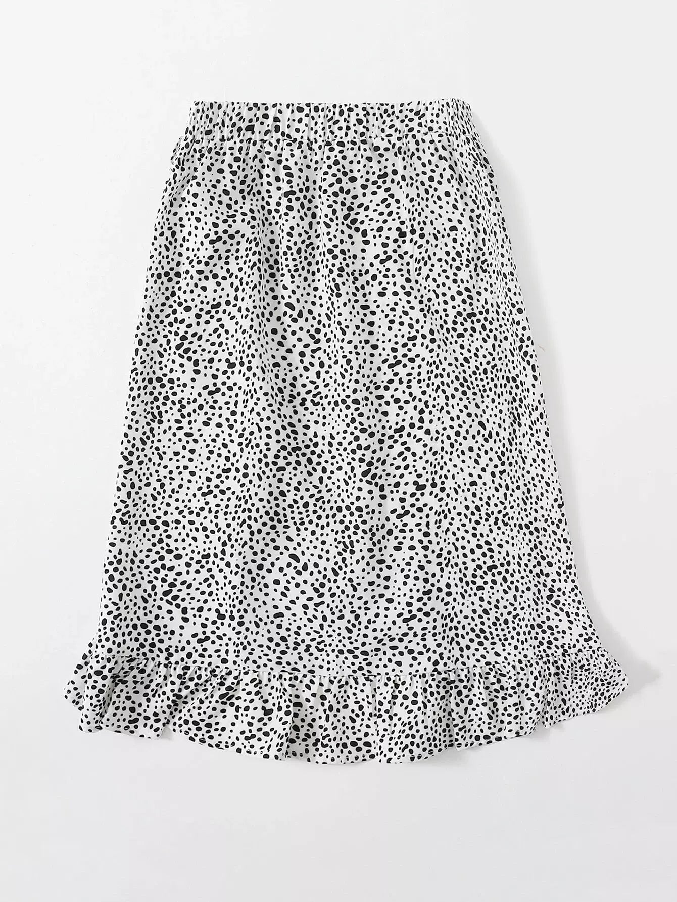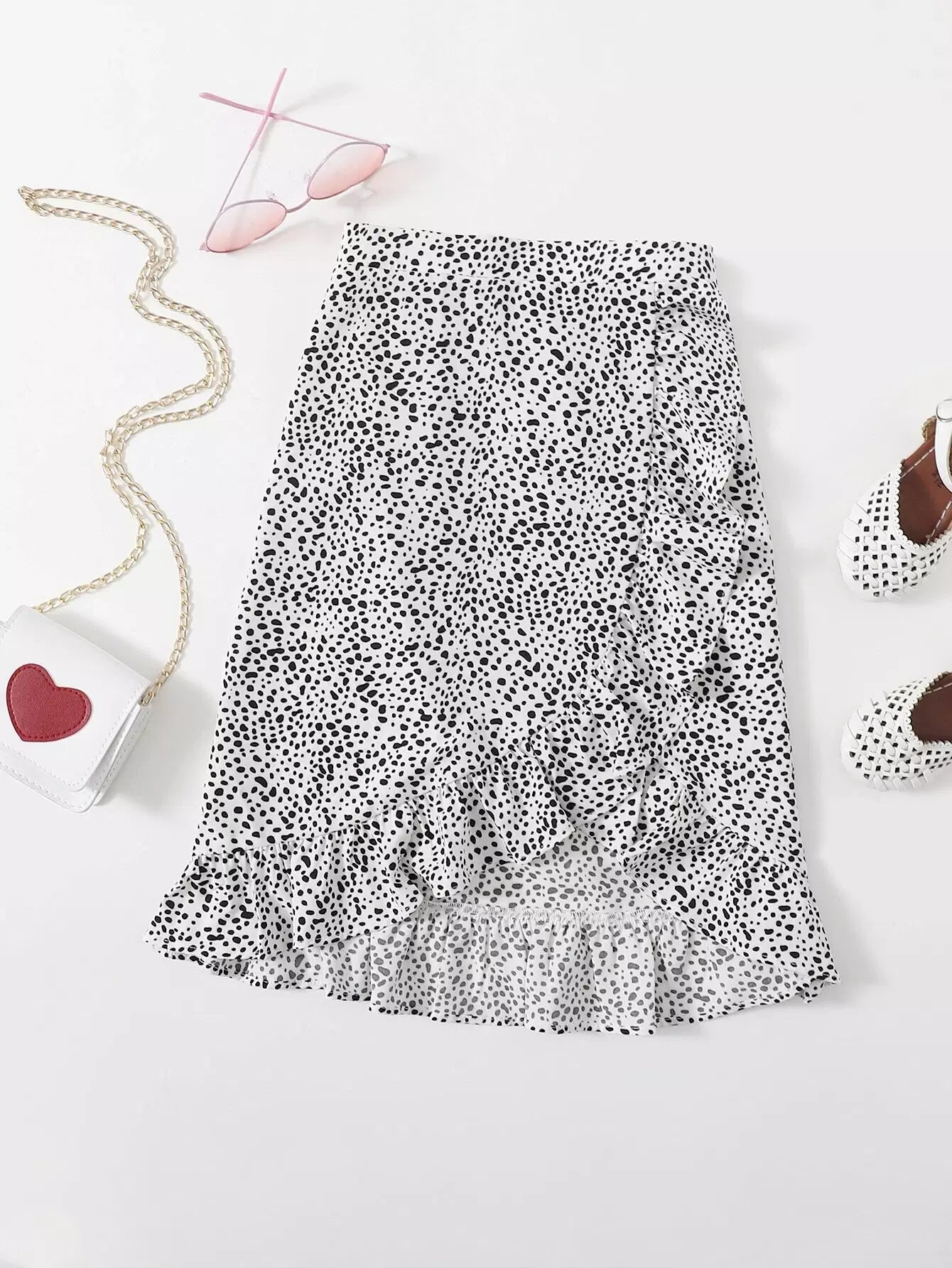 تنورة فتيات بطبعة كشكش غير متناسقة مزينة بالكامل