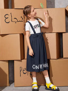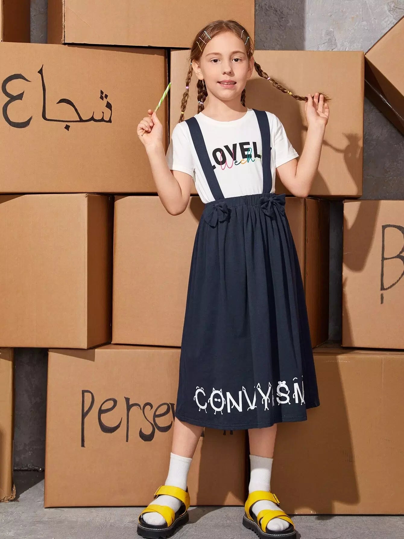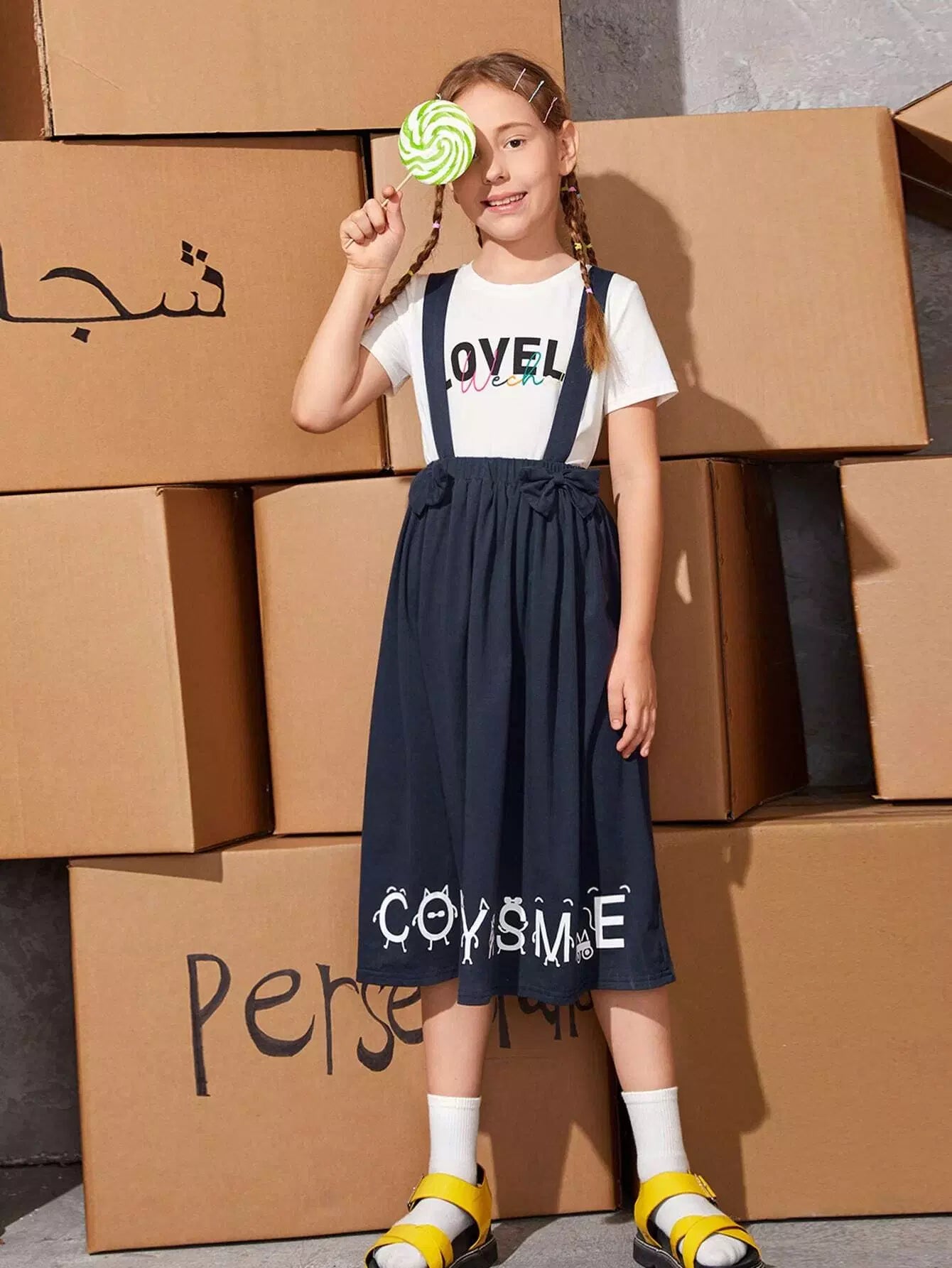 تنورة بناتية برسومات وأحرف وتفاصيل فيونكة
