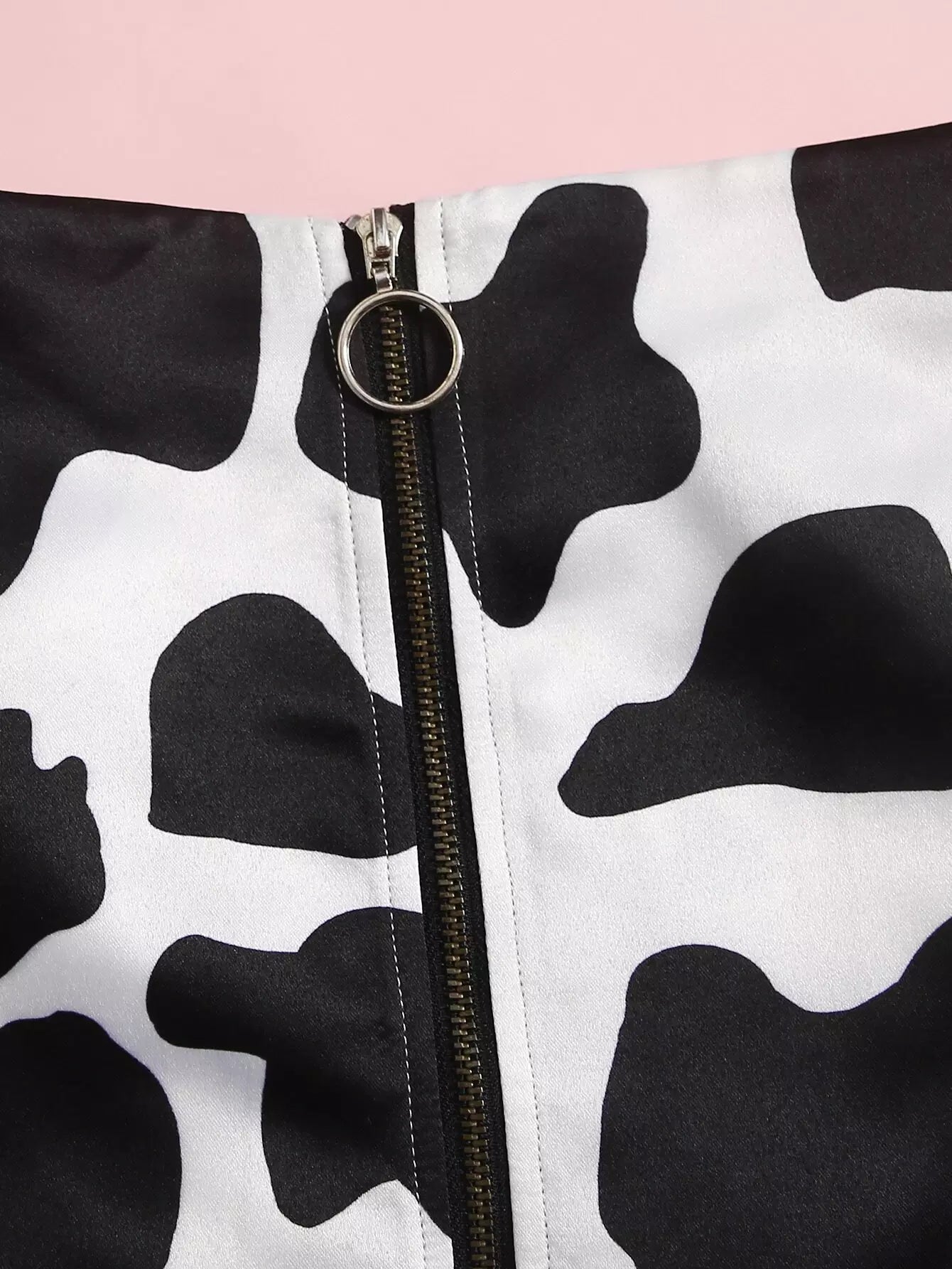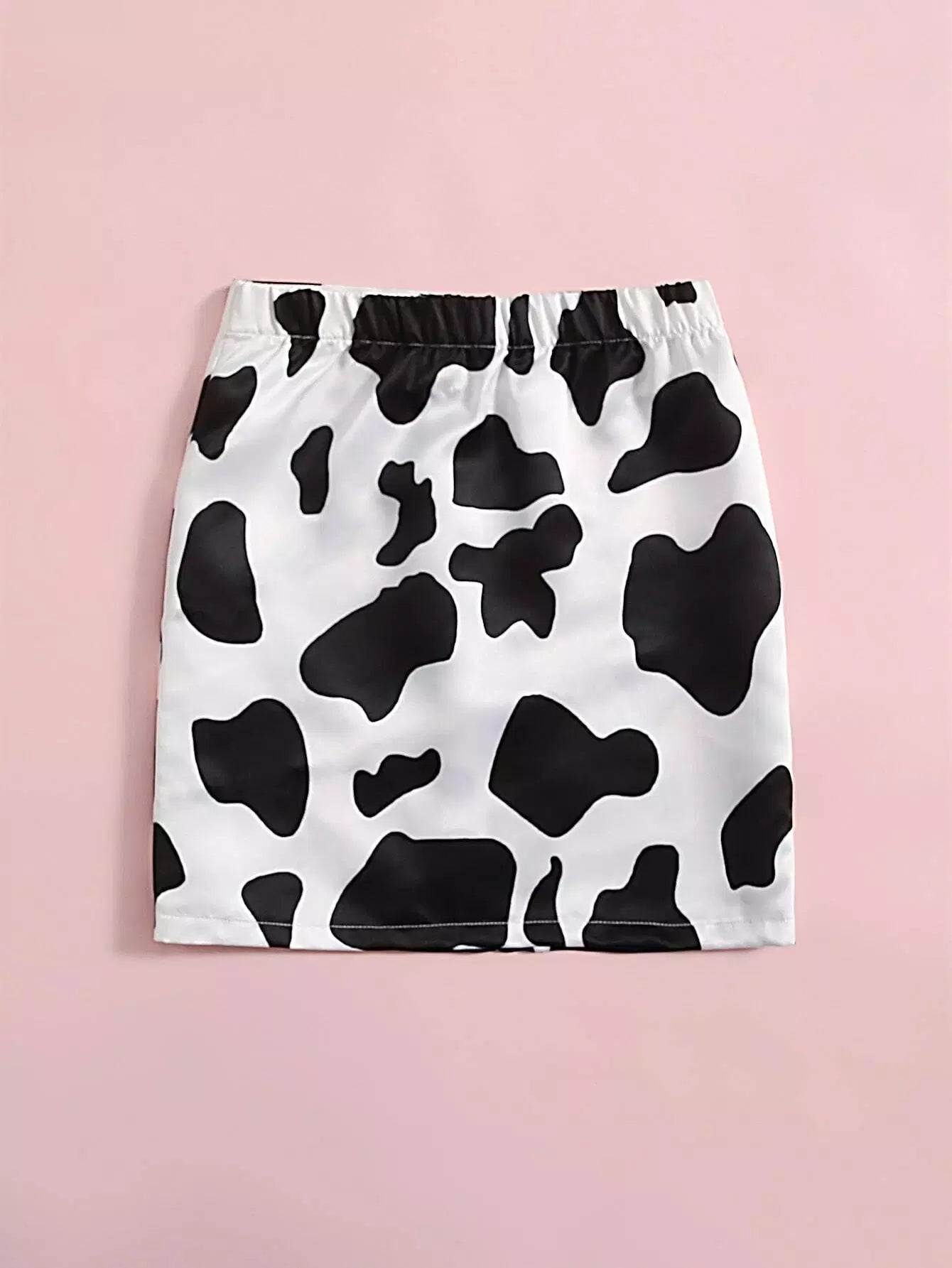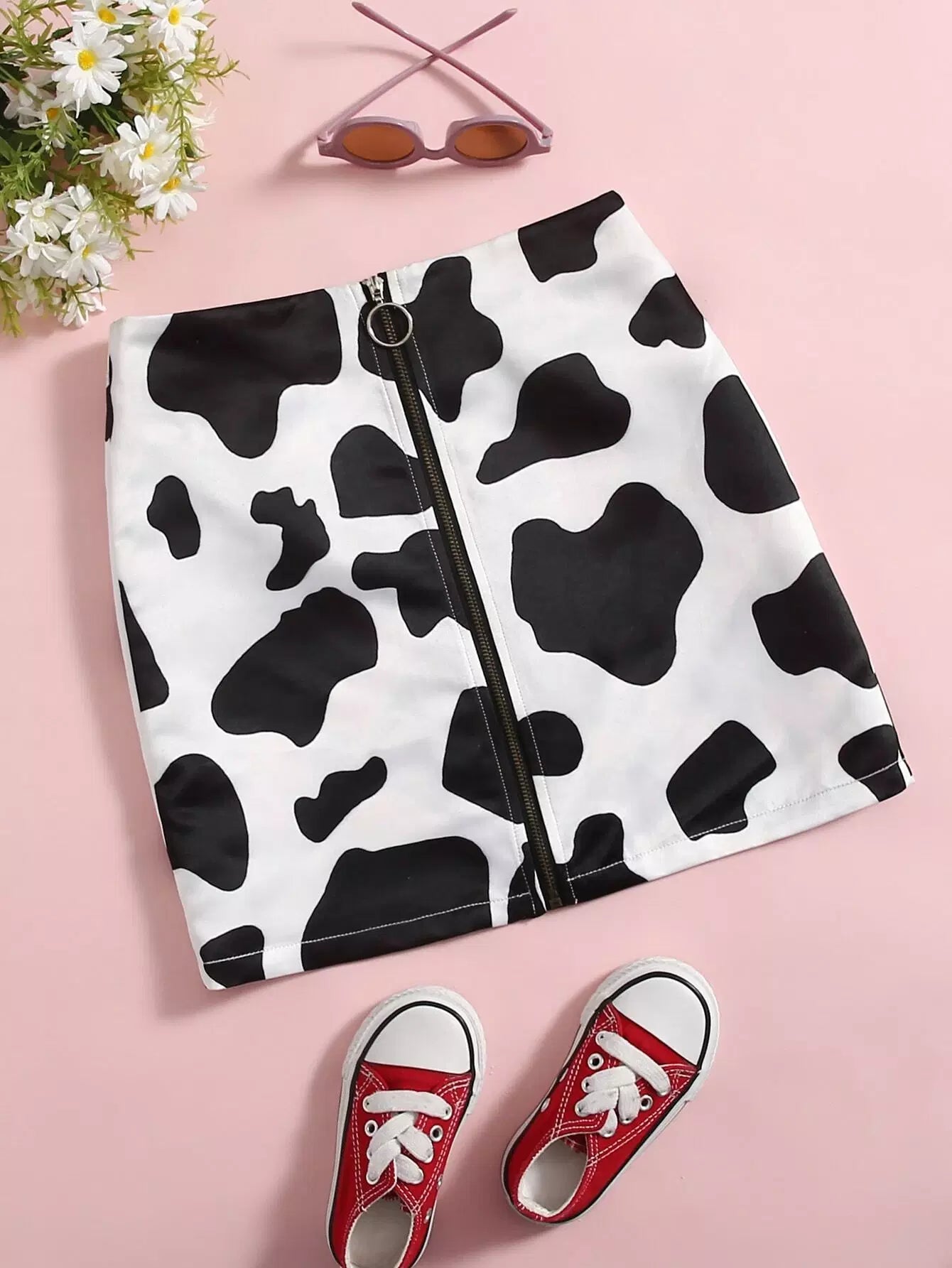 تنورة فتيات مطبوع عليها طبعة بقرة بسحاب