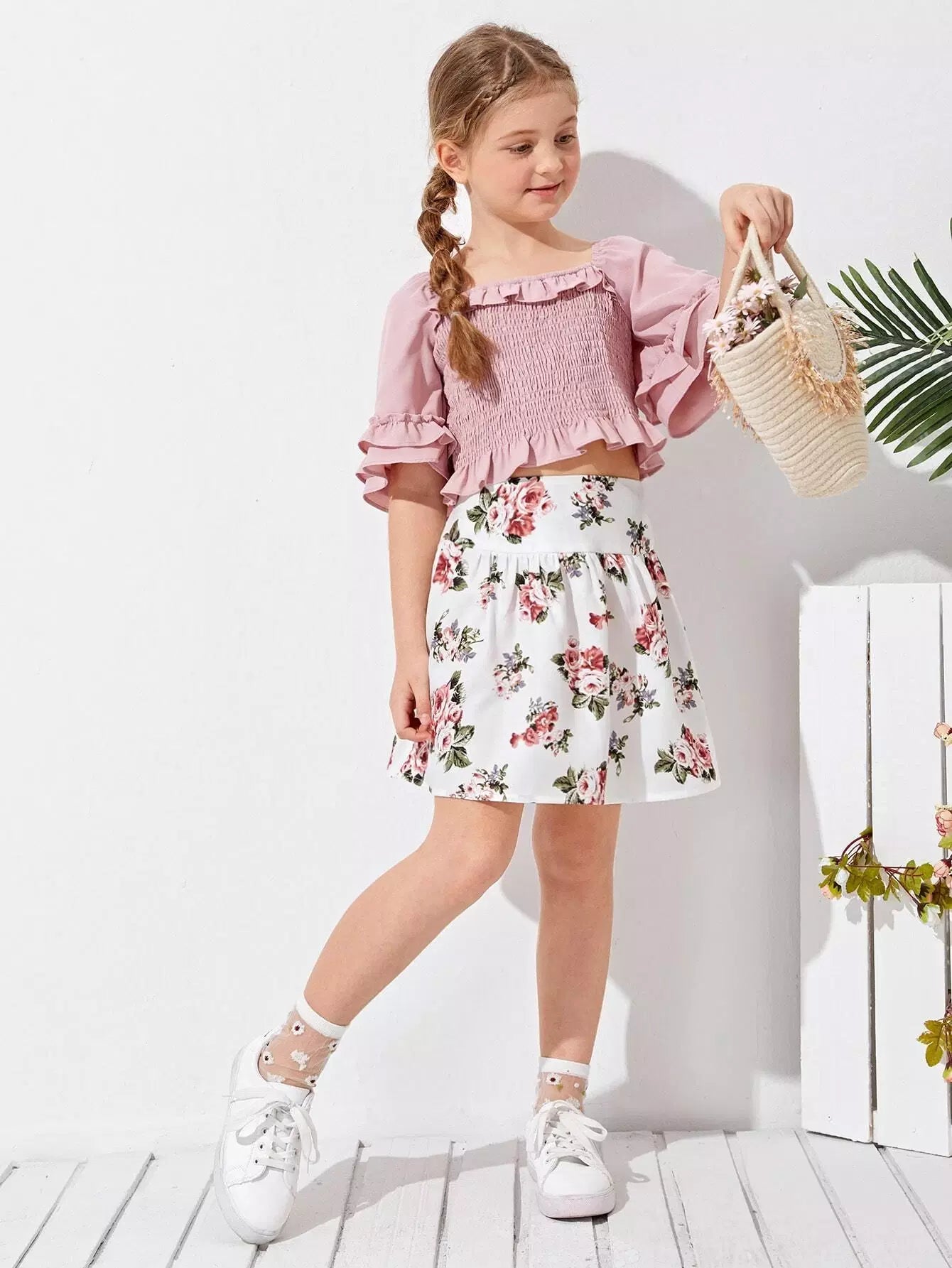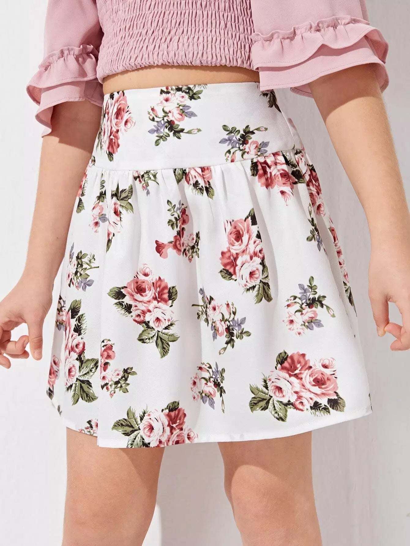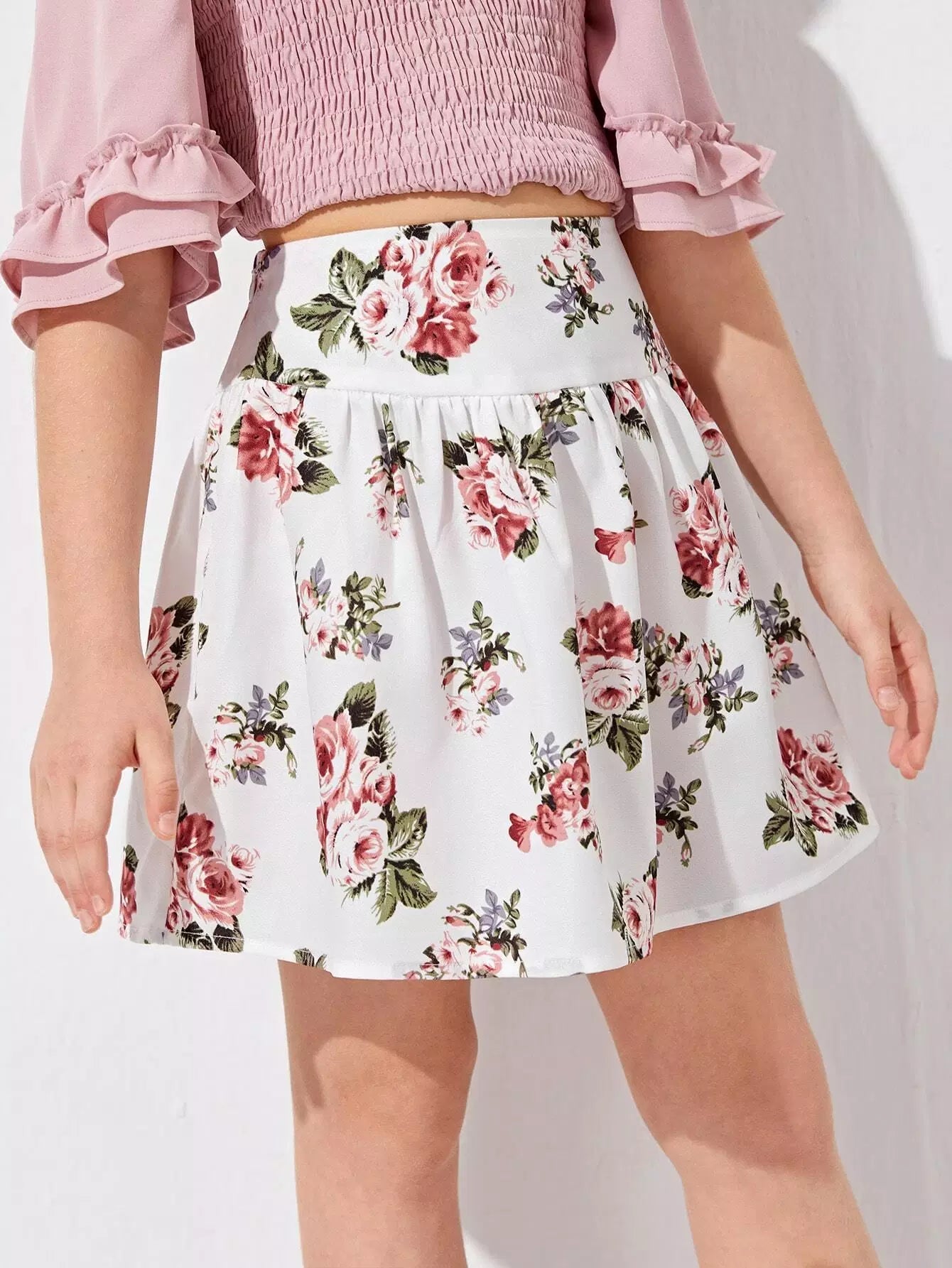 تنورة زهرية واسعة الخصر للبنات