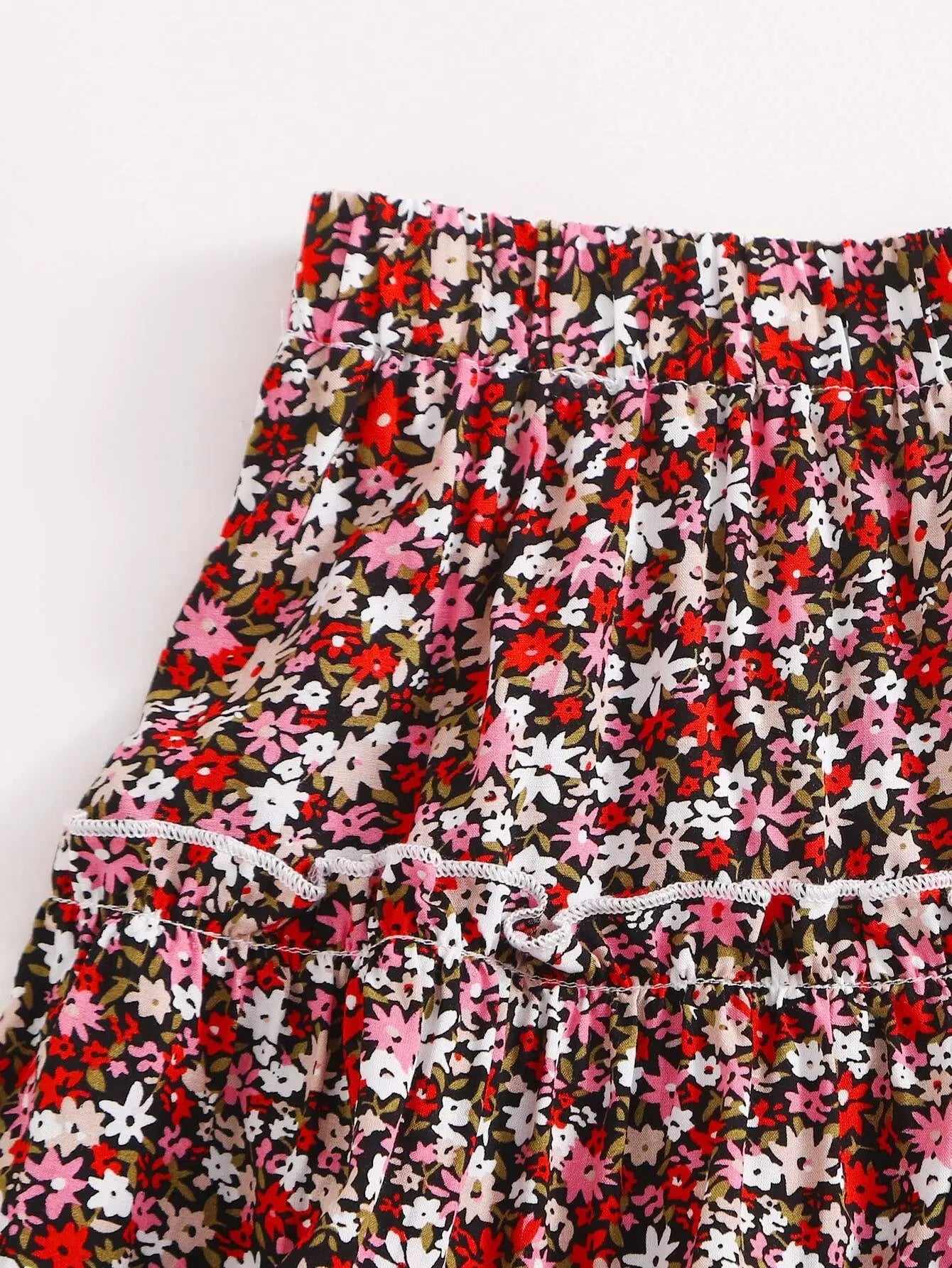 تنورة بناتية مزينة بنقشة الزهور الصغيرة